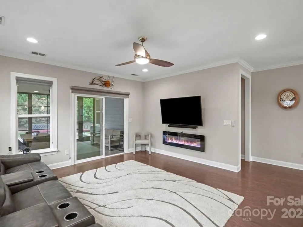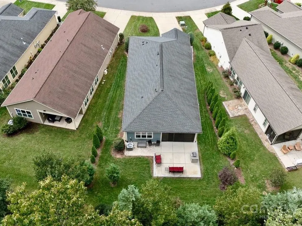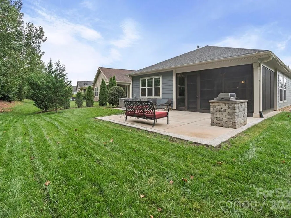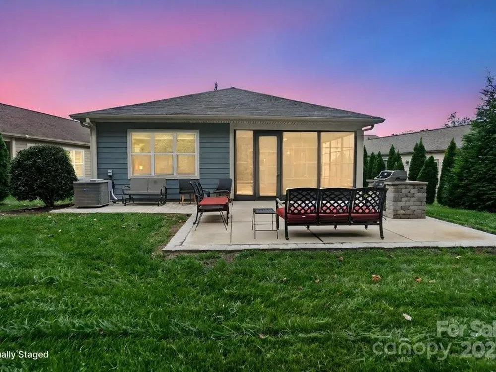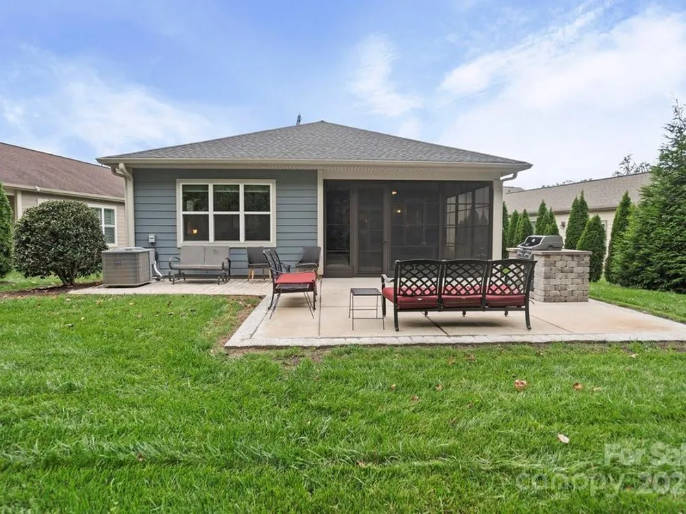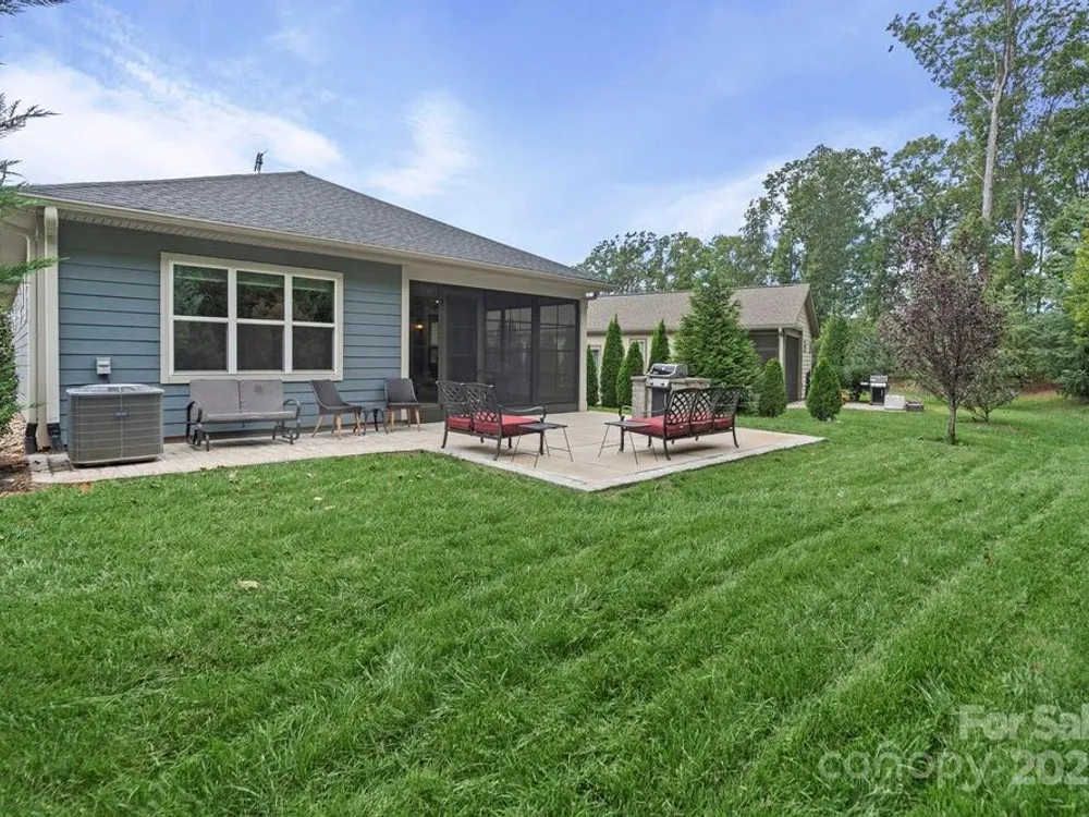 Make yourself comfortable & enjoy the open-concept Harper plan that has an amazing use of function & space. Move in ready, private lot and immaculately maintained, this light and bright split 2BR, 2BA home features a well-appointed kitchen anchoring the main living area. SS appliances, granite countertops, tile backsplash, beautiful light craftsman style cabinetry, under/over cabinet lighting, island breakfast bar, refrigerator and pantry. Large dining area adjacent to the great room which is highlighted with an electric fireplace and sliding glass doors that open to the EZE Breeze/screened lanai (heated/cooled) that flows to an extended paver patio with private wooded natural views. A serene primary suite completes this home also features an electric fireplace and ensuite bath with dual sink vanity, generous walk-in custom closet and tiled shower. Newer carpet, low maintenance wood & tile floors throughout the home. Refrigerator, washing machine/gas dryer (both brand new), window treatments, 3 wall mounted televisions, 2 wall mounted electric fireplaces, gas grill all remain. 1 car extended garage has additional space for a golf cart & storage plus a widened driveway ease of use. Trilogy Membership includes Freedom Boat Club on Lake Norman plus award winning amenities.