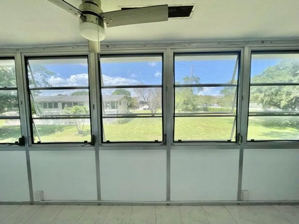 UPDATED 1 bedroom,1 .5 baths condo located on the second floor in a prime location . Tile floor throughout the entire condo.Open floor plan, updated kitchen with granite counter top and stainless steel appliances; plantation shutters and IMPACT WINDOWS. Enclosed patio with a relaxing views of tropical trees & lush landscaping . Come see what this condo has to offer. It is ready for you to make it your Own. The community has a clubhouse, gym, pools, theater, tennis, different classes, and free transportation inside and out. Close to the beach, restaurants, shopping, and more. Water and basic cable are included in the HOA fee..This is a 55+ community