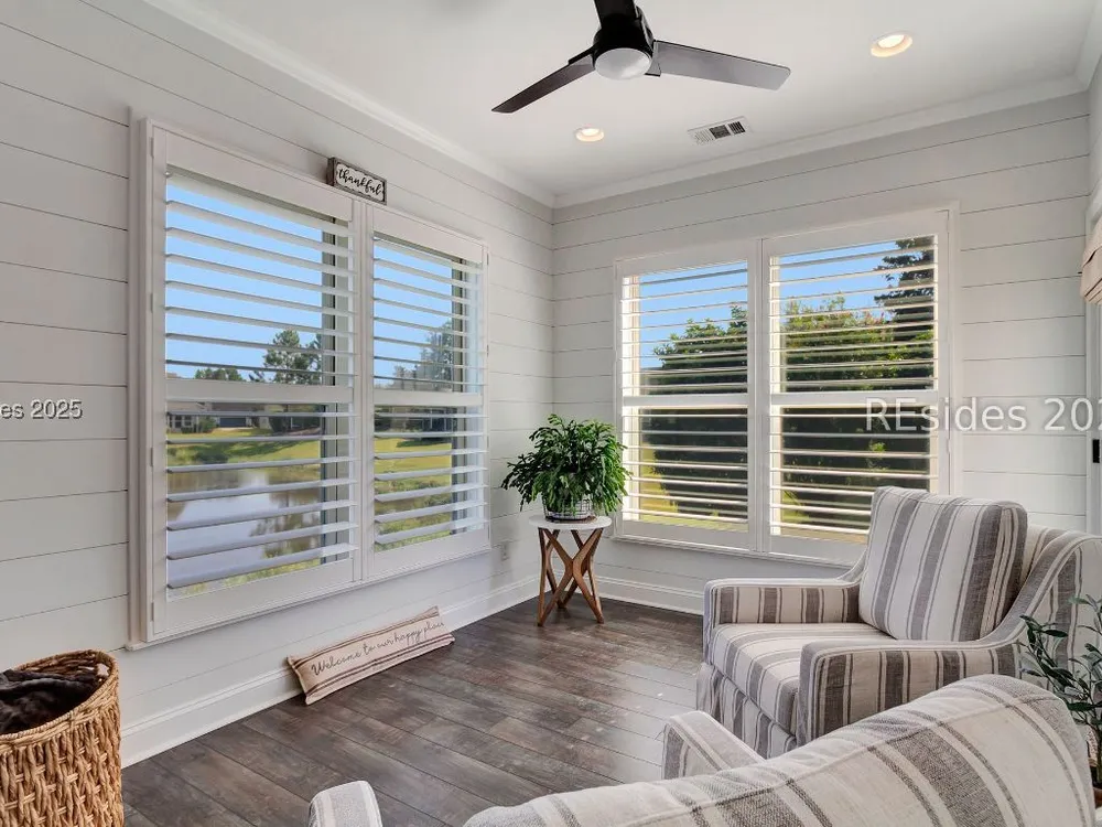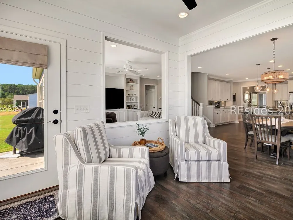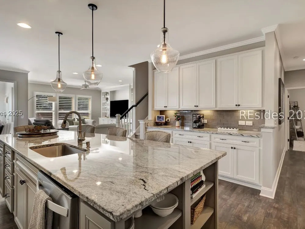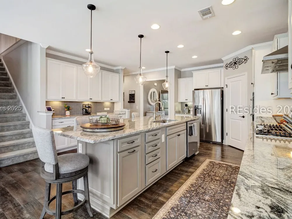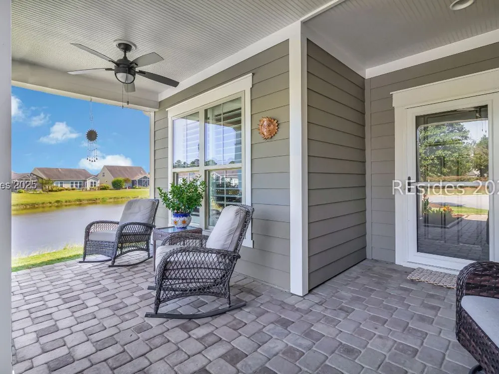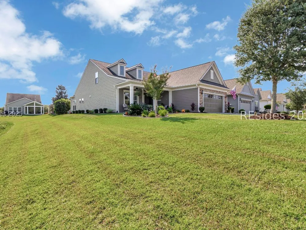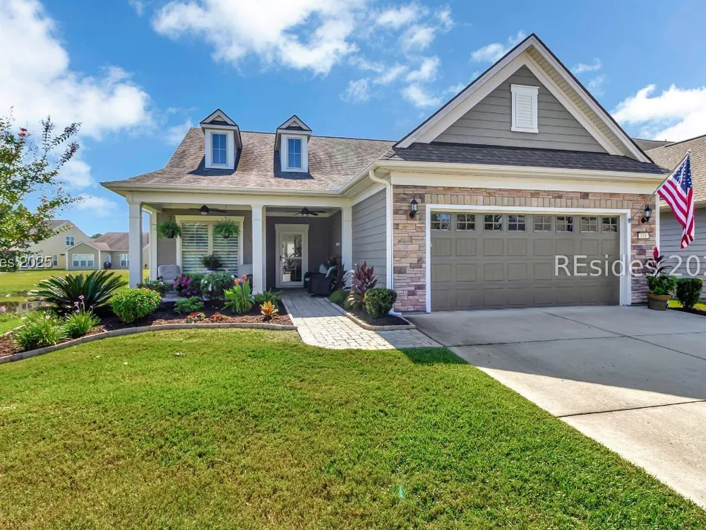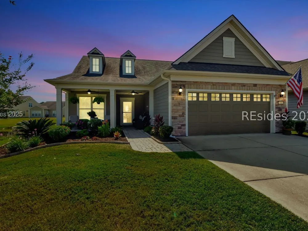 Welcome to 188 Valleybrooke Ct S. - your new home in amenity-rich Sun City. As soon as you enter this striking 3/3 residence, you will know that you have found your Lowcountry oasis. Sought-after Castle Rock plan, you will appreciate the trend-setting upgrades and finishes the owners have put in when building the home. The main level is open and is a perfect floor plan designed for entertaining. The front office works well for a remote workspace, and the kitchen is a gathering spot for family and friends. Designer touches will delight chefs of all levels, from the oversized island to the gas cooktop. In the light-filled great room, the sellers have added a wonderful entertainment area complete with extra storage and plantation shutters throughout. When it is time to relax, you won't find a better spot than the tranquil sunroom. Shiplap walls and captivating views to the vast lagoon will bring a nice end to a long day. The primary suite on the main level has a tray ceiling and a spa-like bathroom w/ an enormous walk-in closet, updated shower, and fixtures. The upper floor is a perfect getaway for guests. A full bed and bath, as well as a living area and flex room ( flex room could be a playroom, nursery, or craft room). You can't beat enjoying your morning coffee on the front porch- total privacy to the front and side along with watching all the nature our lagoons bring. This home has been meticulously cared for and is ready for you to begin your new life.