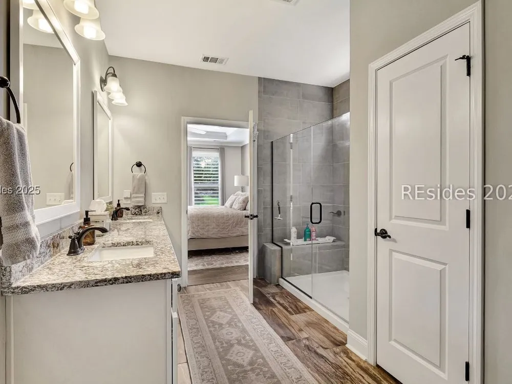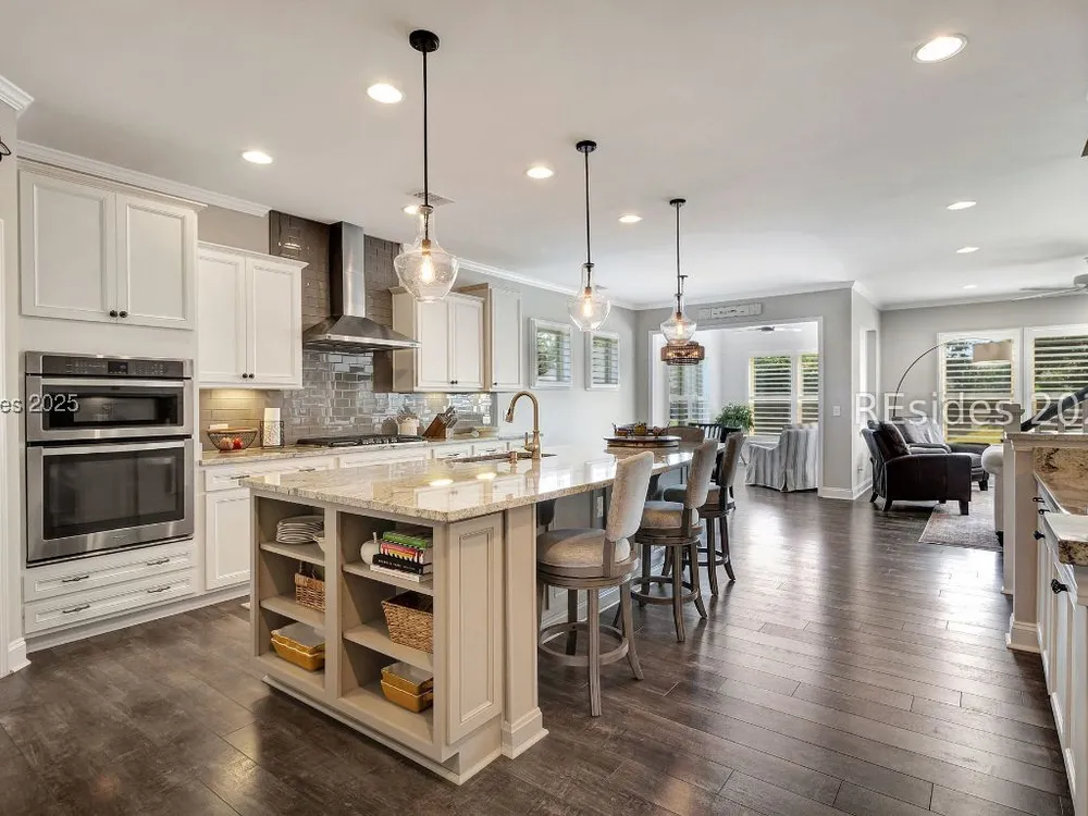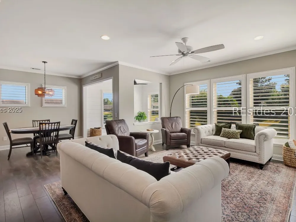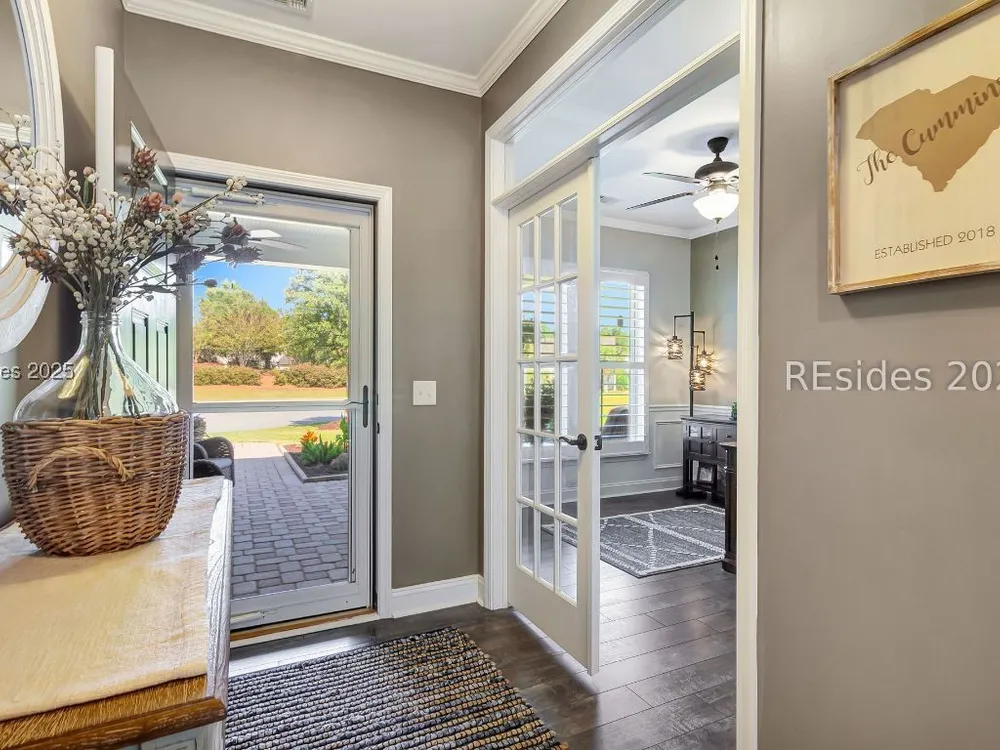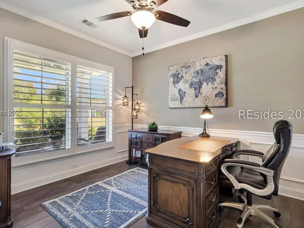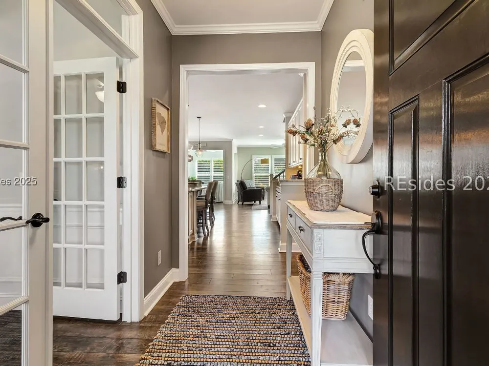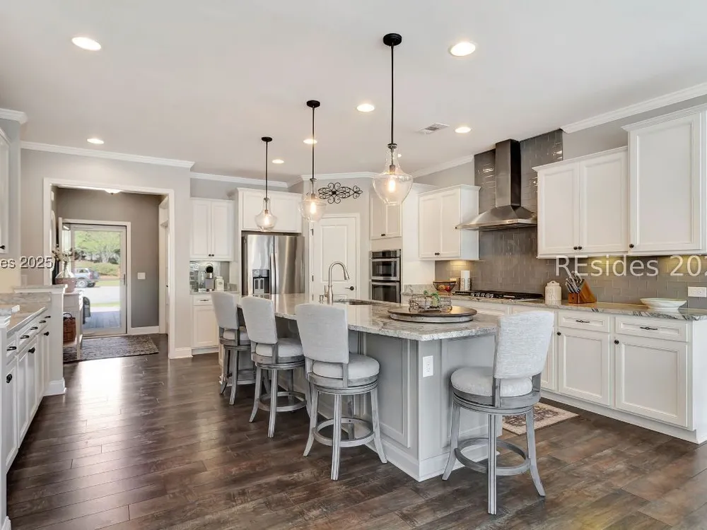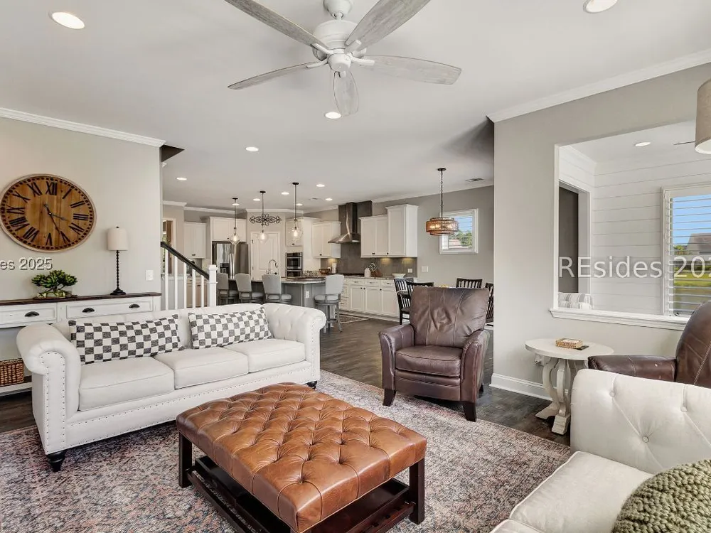 Welcome to 188 Valleybrooke Ct S. - your new home in amenity-rich Sun City. As soon as you enter this striking 3/3 residence, you will know that you have found your Lowcountry oasis. Sought-after Castle Rock plan, you will appreciate the trend-setting upgrades and finishes the owners have put in when building the home. The main level is open and is a perfect floor plan designed for entertaining. The front office works well for a remote workspace, and the kitchen is a gathering spot for family and friends. Designer touches will delight chefs of all levels, from the oversized island to the gas cooktop. In the light-filled great room, the sellers have added a wonderful entertainment area complete with extra storage and plantation shutters throughout. When it is time to relax, you won't find a better spot than the tranquil sunroom. Shiplap walls and captivating views to the vast lagoon will bring a nice end to a long day. The primary suite on the main level has a tray ceiling and a spa-like bathroom w/ an enormous walk-in closet, updated shower, and fixtures. The upper floor is a perfect getaway for guests. A full bed and bath, as well as a living area and flex room ( flex room could be a playroom, nursery, or craft room). You can't beat enjoying your morning coffee on the front porch- total privacy to the front and side along with watching all the nature our lagoons bring. This home has been meticulously cared for and is ready for you to begin your new life.