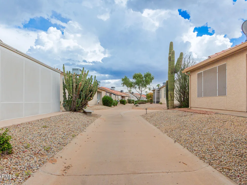 Popular Tahoe floorplan, Gorgeous 2 BR / 2 BA in the sought-after 55+ community of Sunbird Golf Resort! with Stunning Upgrades Throughout. home Features include quartz countertops, stainless steel appliances, breakfast bar, vaulted ceilings, and an enclosed Arizona sunroom. Spacious primary suite with walk-in closet and remodeled bath. Fresh paint, low-maintenance yard, and modern finishes throughout make this home move-in ready. Live the resort lifestyle with golf, heated pools, pickleball, tennis, fitness center, clubhouse dining, and endless social clubs. Ideal for full-time living or a seasonal lock-and-leave getaway! NEWER ROOF W/ WARRANTY (2022) NEWER TRANE AC W/ WARRANTY (2017) NEW ELECTRIC GOLF CART GARAGE OPENER NEW WATER HEATER