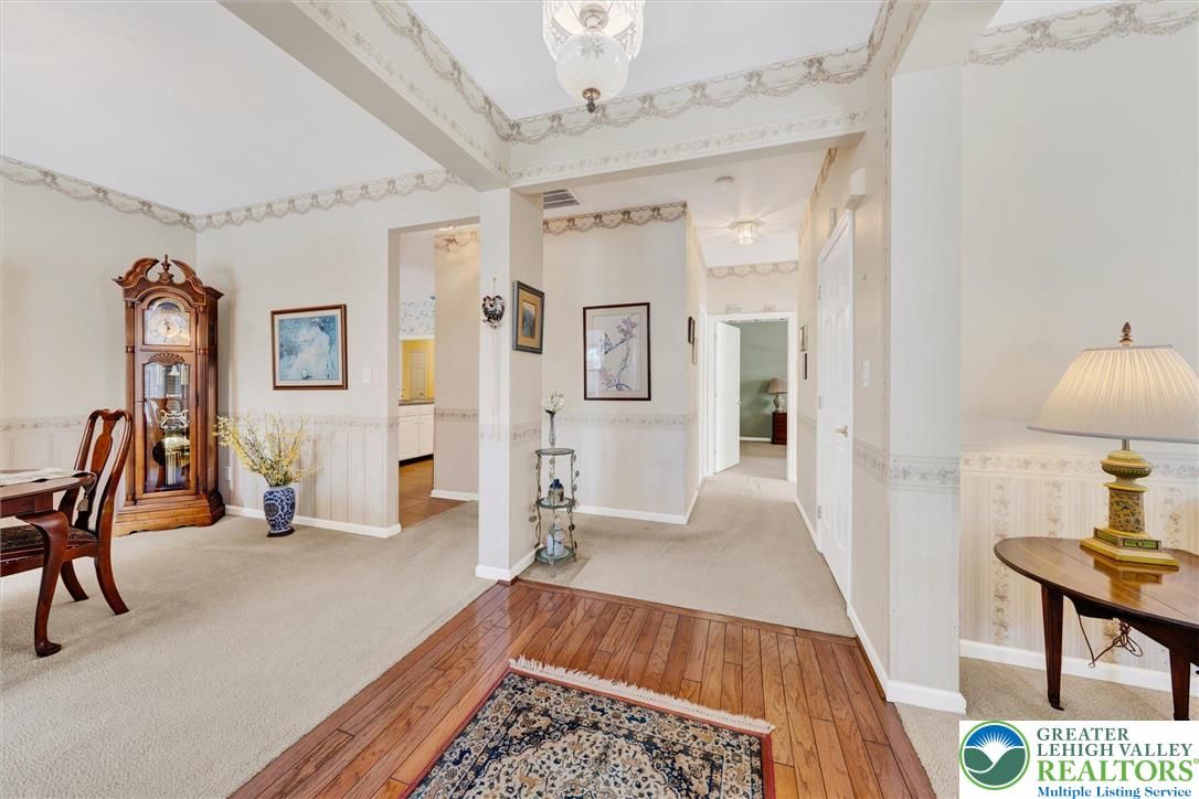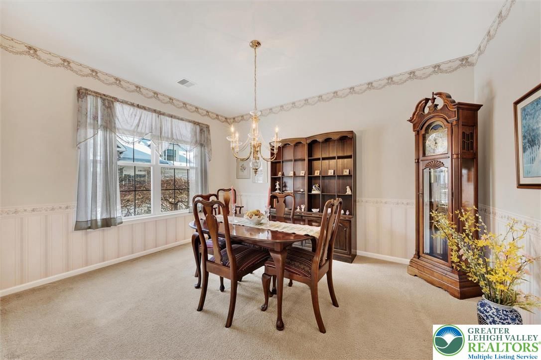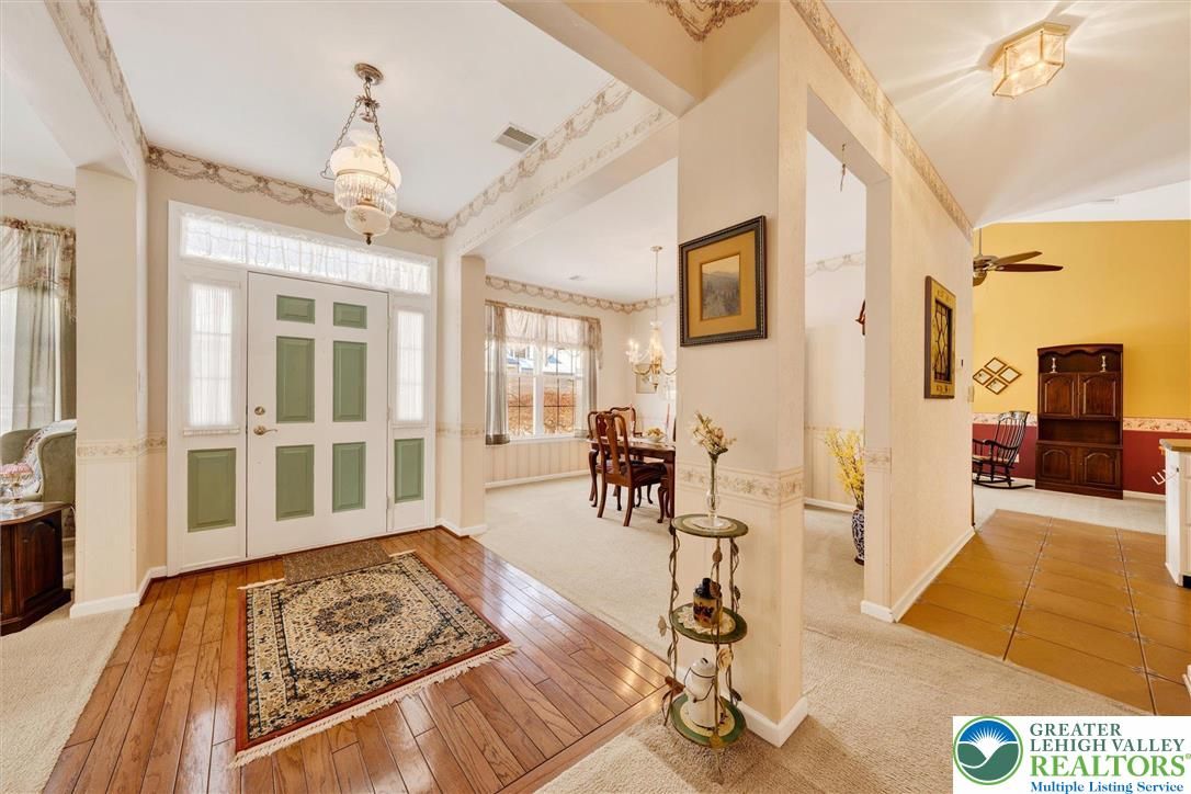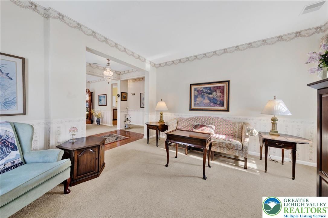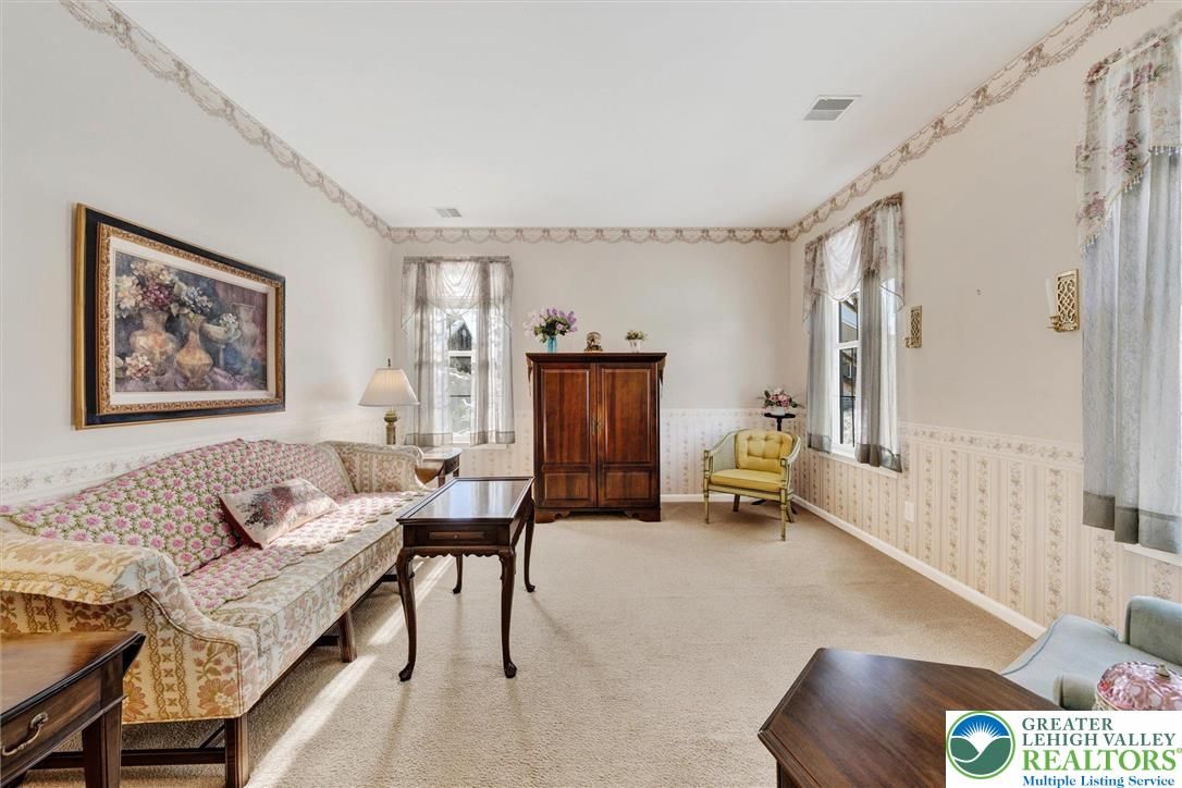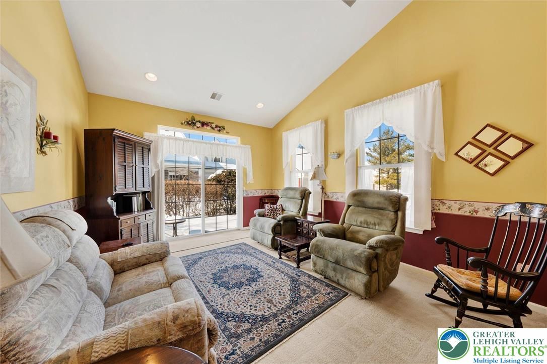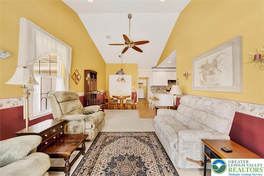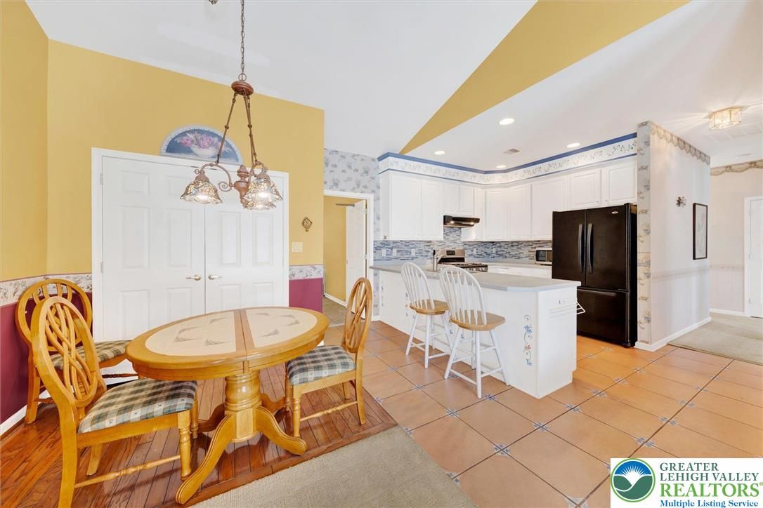 Enjoy the best of easy, relaxed living in this beautifully maintained 2-bedroom, 2-bath condo in Four Seasons at Saucon Valley ( an over-55 community). The open floor plan welcomes you to a spacious great room with vaulted ceilings, a sliding door to a private patio with a remote-controlled awning, and a seamless flow to the bright kitchen with tile flooring, gas cooking, a breakfast bar, and a cheerful eat-in nook. The foyer has hardwood floors. Formal living and dining rooms flank the foyer. Both full bathrooms feature tile showers and tile floors. A large tiled laundry room adds extra storage and convenience, while the two-car garage provides even more convenience. Life here centers around community. Your condo fee includes access to the clubhouse, with its heated swimming pool, pickleball courts, and a full calendar of activities—a wonderful space where neighbors become friends. Perfectly situated near Hellertown’s Main Street cafés and coffee shops, the Saucon Rail Trail, Lost Tavern Brewing, and the Steel Club golf course, you’ll find plenty to do close to home. Just minutes away, enjoy downtown Bethlehem, Wind Creek Casino, and the Promenade Shops at Saucon Valley for top-rated dining and entertainment. Maintenance-free living, modern comfort, and a friendly neighborhood—welcome home to Four Seasons at Saucon Valley. See this home today