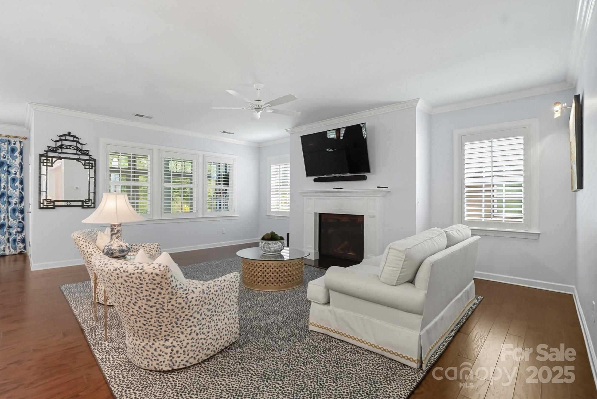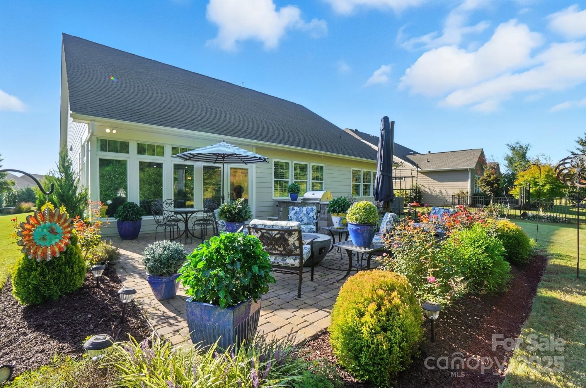 Welcome to this stunning 3 bedroom, 2.5 bath home in sought after Tree Tops, beautifully designed with bold, colorful Southern charm and countless upgrades. From the moment you enter, you'll notice the fine details-crown molding throughout, custom shelving in every closet and pantry, and upgraded designer lighting in every room. The upgraded gourmet kitchen is a chef's delight, featuring a huge island, pull-out shelving, double ovens and gas cooktop. A custom vanity adds elegance to the powder bath, while designer mirrors elevate all bathrooms. Hardwood floors flow through the main living spaces and lead to a four season glass sunroom (heated and cooled) with ceramic tile-perfect for enjoying year round views. Step outside to your private retreat with a paver patio, complete with built in grill and fire pit, ideal for entertaining. The garage is equally impressive with custom shelving and epoxy flooring. Don't miss this thoughtfully upgraded home that blends style, comfort and functionality!