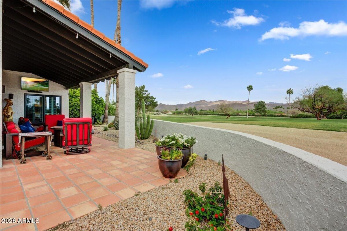Welcome to an extraordinary desert home in the heart of Rio Verde, where golf course living meets some of Arizona's most breathtaking mountain views. Located on the 18th hole of the Quail Course this beautiful 3 bedroom, 2 1/2 bath home offers approximately 2,150 square feet of comfortable Arizona living. This remarkable home overlooks 2 fairways. the East Mazatzal Mountains and the majestic Four Peaks Mountains. The thoughtfully designed floor plan provides ample living and entertaining areas filled with natural light. The open living spaces flow effortlessly toward the outdoor patio, creating the perfect setting to enjoy cool desert evenings, watch golfers finish their round, or take in the vibrant Arizona sunsets painting the mountains. Every East Facing Slider & Window has a view! All New Windows and Sliders in 2019, Custom Iron Door 2024, All new Kitchen Appliances 2023, North HVAC unit 2019, South HVAC unit 2025, Exterior Paint 2024, Interior Paint 2024/2025, Flat Roof Coating 2026, New Tile Roof and Underlayment 2019, Refuse Access Gate installed 2026, Programmable Garage Door Opener 2025, Led Can lighting throughout 2023 and Landscape Lighting 2025. The extended 2 car garage is outstanding! Located within the welcoming golf community of Rio Verde, residents enjoy an exceptional array of amenities designed for an active and social lifestyle. The community features two premier golf courses, a fully equipped fitness center, pickle ball, tennis courts, bocce ball, a resort-style community pool, two restaurants, library and so much more!