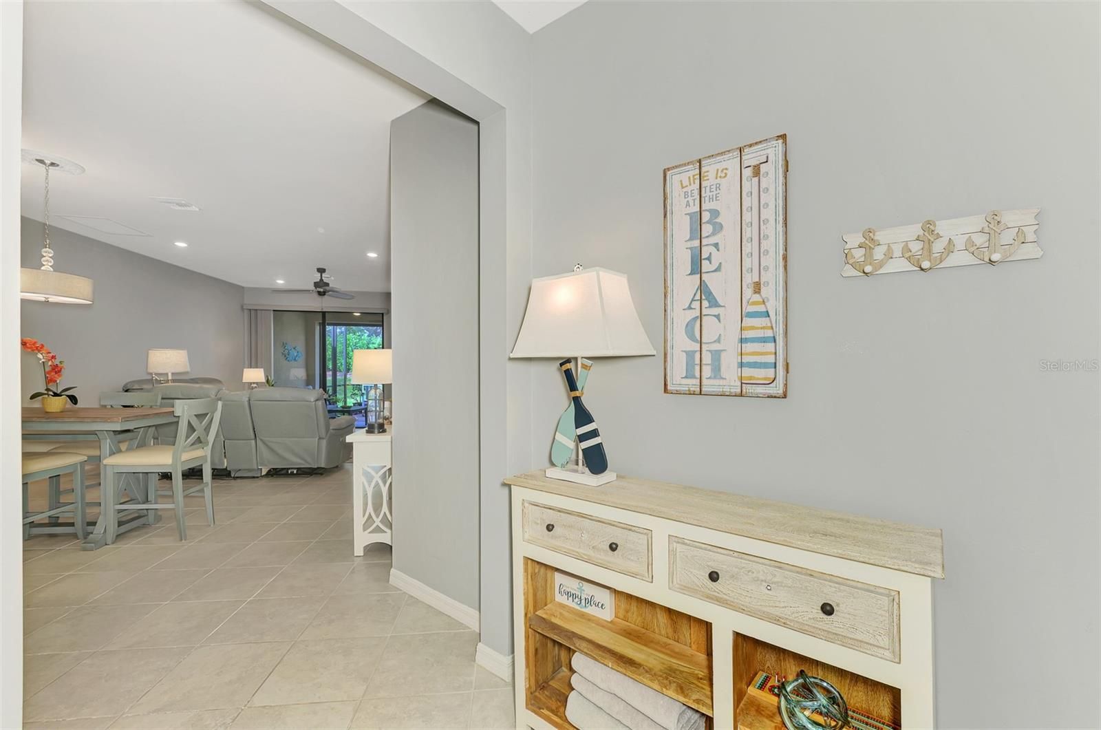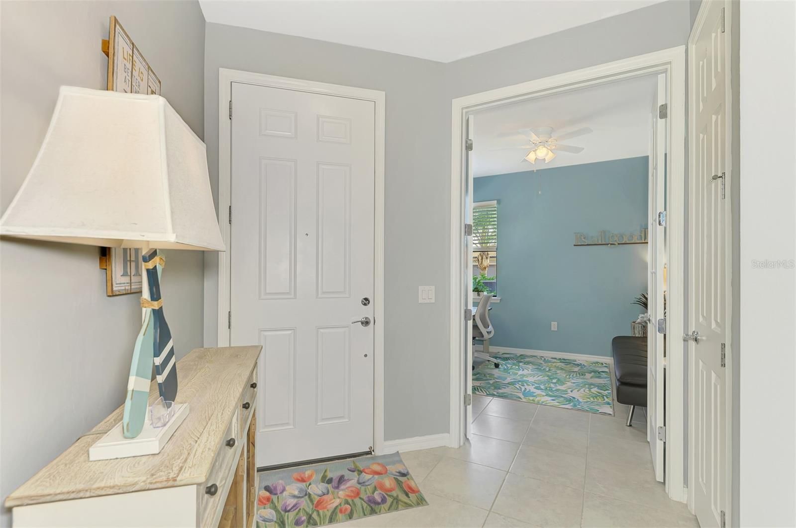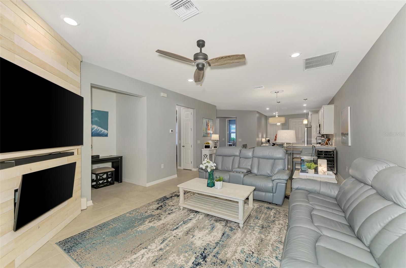 Elegant 2 Bedroom + Office Home with 2 car garage in IslandWalk, Venice, FL. Discover resort-style living in this beautifully maintained 2-bedroom, 2-bath plus office home located in the highly desirable IslandWalk gated community in Venice, Florida. Designed for comfort and functionality, this home features an inviting open-concept layout with tile flooring throughout the main living areas and office. The modern kitchen boasts stainless steel appliances, light countertops, and light cabinetry with a kitchen reverse-osmosis and a whole house water softener system. The spacious primary bedroom suite offers an L-shaped walk-in closet and a luxurious ensuite bathroom with dual vanities and a walk-in shower with natural light. The guest bath has a shower/tub combo. A dedicated office/den provides flexibility for remote work, hobbies, or close the French doors for a quiet reading room with lots of light. Step outside to the extended screened lanai, ideal for relaxing or hosting gatherings. Storm Smart screen is located between the covered patio and the vaulted screened area. The 2 car garage has shelving for extra storage and for beach chairs. IslandWalk is one of Venice’s premier gated, maintenance-free communities, known for its beautiful landscaping, lakes, and world-class amenities. Enjoy two resort-style clubhouses with a multitude of social and fitness activities, Heated lagoon and lap pools, Pickleball courts, tennis, and bocce ball court, state-of-the-art fitness center, Walking and biking trails winding through scenic waterways, Full-time activities director and a calendar of events year-round. Close to Wellen Park & Gulf Beaches. This home offers quick access to shopping, dining, and entertainment at Downtown Wellen Park, plus easy proximity to CoolToday Park, spring training home of the Atlanta Braves. Just a short drive away are Venice’s pristine Gulf beaches, including Venice Beach, Manasota Key, and Caspersen Beach, where you can enjoy sunset strolls, shelling, and fishing. Experience the best of coastal Florida living - where luxury, convenience, and community come together.