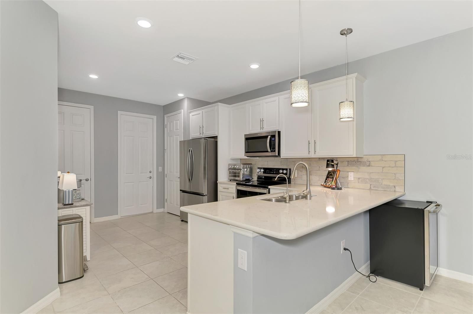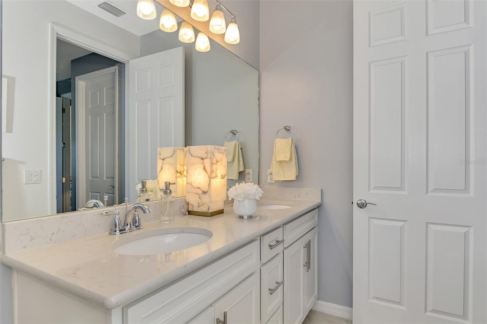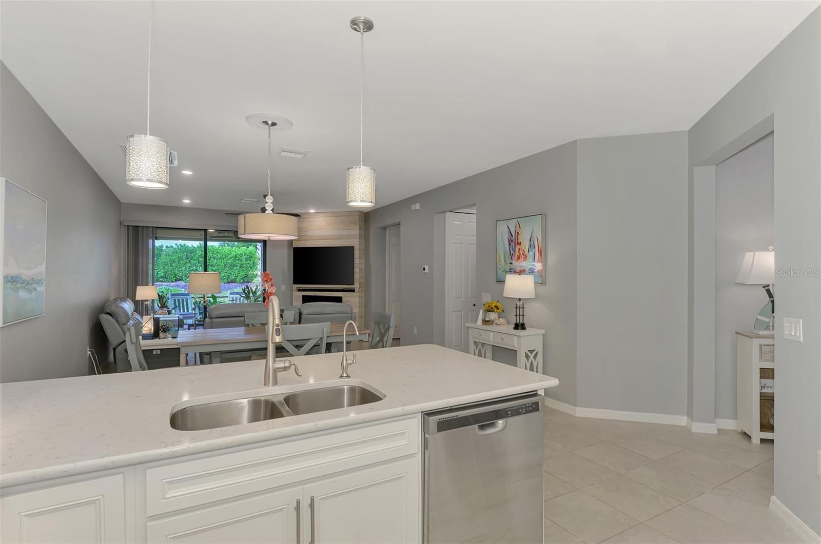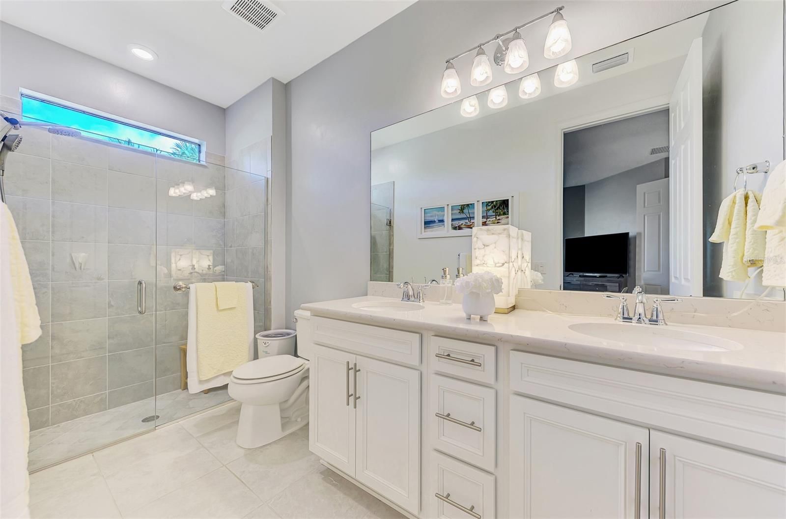 Elegant 2 Bedroom + Office Home with 2 car garage in IslandWalk, Venice, FL. Discover resort-style living in this beautifully maintained 2-bedroom, 2-bath plus office home located in the highly desirable IslandWalk gated community in Venice, Florida. Designed for comfort and functionality, this home features an inviting open-concept layout with tile flooring throughout the main living areas and office. The modern kitchen boasts stainless steel appliances, light countertops, and light cabinetry with a kitchen reverse-osmosis and a whole house water softener system. The spacious primary bedroom suite offers an L-shaped walk-in closet and a luxurious ensuite bathroom with dual vanities and a walk-in shower with natural light. The guest bath has a shower/tub combo. A dedicated office/den provides flexibility for remote work, hobbies, or close the French doors for a quiet reading room with lots of light. Step outside to the extended screened lanai, ideal for relaxing or hosting gatherings. Storm Smart screen is located between the covered patio and the vaulted screened area. The 2 car garage has shelving for extra storage and for beach chairs. IslandWalk is one of Venice’s premier gated, maintenance-free communities, known for its beautiful landscaping, lakes, and world-class amenities. Enjoy two resort-style clubhouses with a multitude of social and fitness activities, Heated lagoon and lap pools, Pickleball courts, tennis, and bocce ball court, state-of-the-art fitness center, Walking and biking trails winding through scenic waterways, Full-time activities director and a calendar of events year-round. Close to Wellen Park & Gulf Beaches. This home offers quick access to shopping, dining, and entertainment at Downtown Wellen Park, plus easy proximity to CoolToday Park, spring training home of the Atlanta Braves. Just a short drive away are Venice’s pristine Gulf beaches, including Venice Beach, Manasota Key, and Caspersen Beach, where you can enjoy sunset strolls, shelling, and fishing. Experience the best of coastal Florida living - where luxury, convenience, and community come together.
