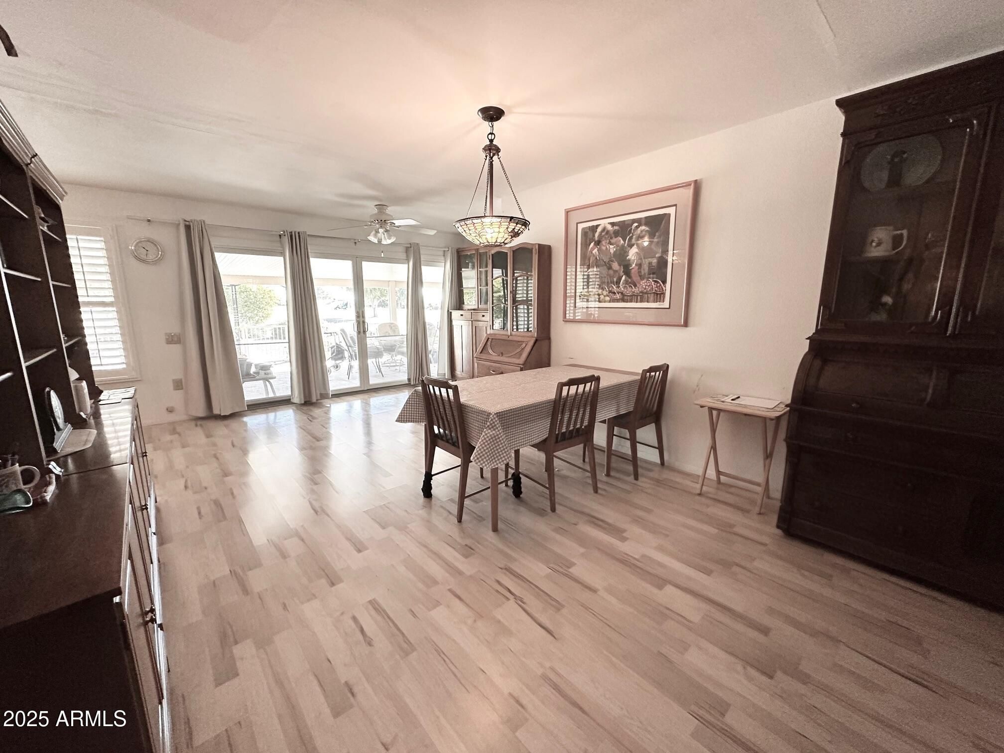 Spacious 2 bd, 2 bath home with extra 3rd bedroom or hobby room in laundry with door and closet, situated on the Pebblebrook Golf Course. Laminate flooring and tile throughout. Newer windows & sliding door, plantation shutters, roof replaced 2023. Both bedrooms have walk-in closets. Enjoy amazing golf course and mountain views as you relax on the covered rear patio of this amazing home. 2 car garage with cabinets and overhead storage. Newer stove, low-profile microwave. Inside laundry with front loading washer/dryer. Nicely landscaped, low maintenance and lovely curb appeal in the desirable low tax area of Sun City West. Close to SCW amenities, no extra HOA fees. Don't miss this home!