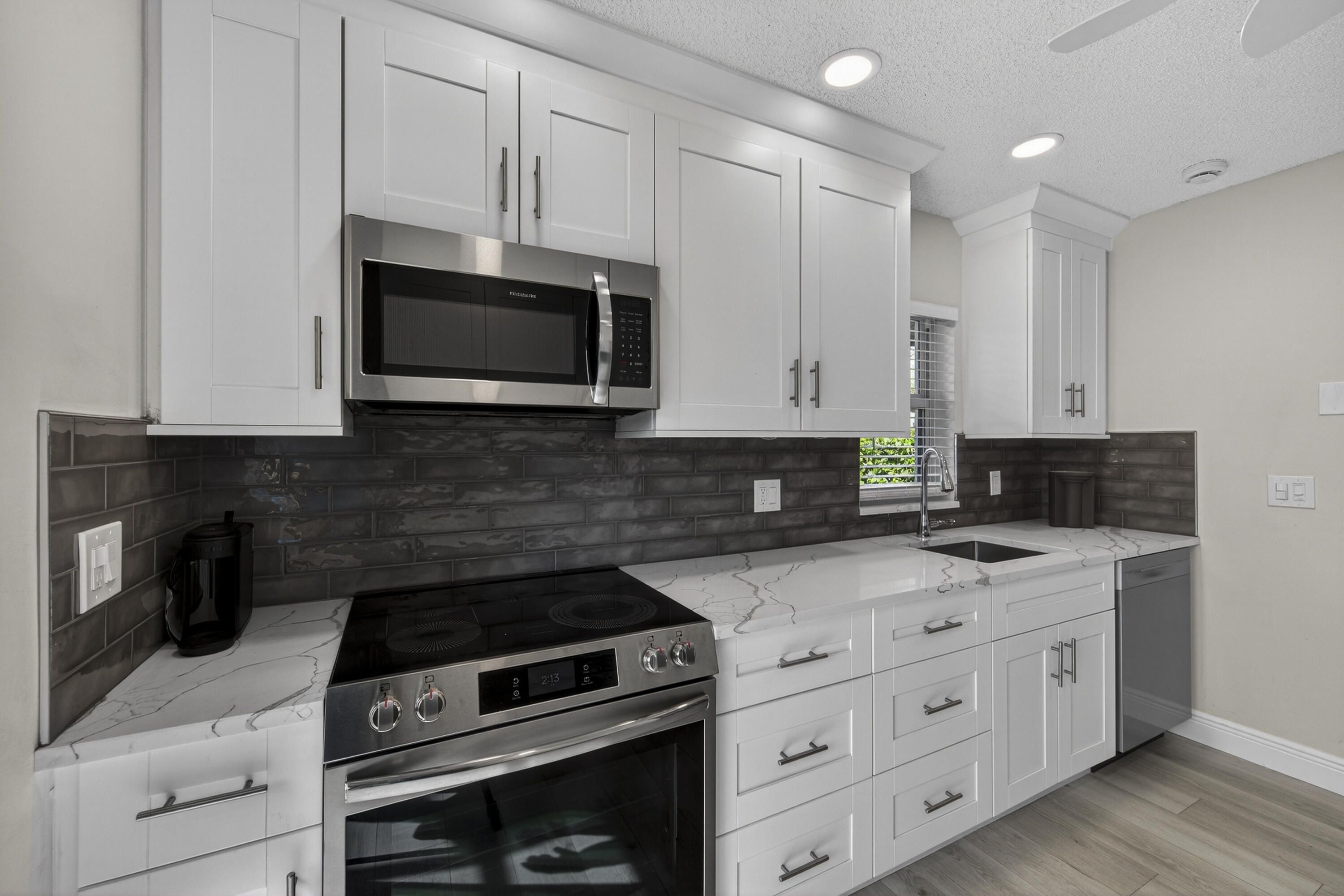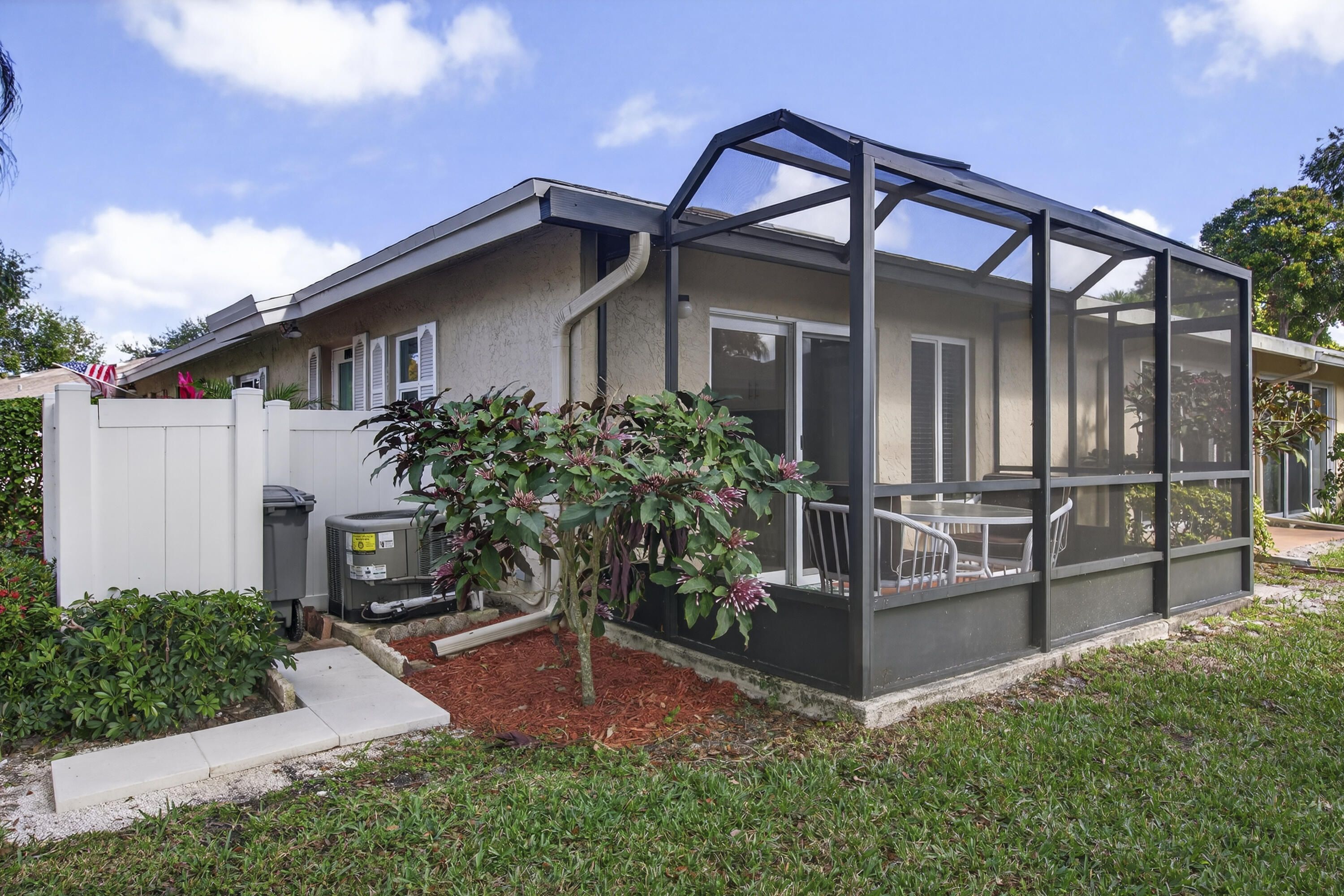 Carefree living awaits in this beautifully remodeled corner unit! Highlights include impact windows & doors, a new electric panel, a 2022 roof, newer AC & water heater, a kitchen with plenty of storage, brand-new stainless steel appliances, quartz countertops & sleek cabinetry. Modern laminate flooring, custom blinds, & energy-efficient LED lighting complete the look. Enjoy the enclosed, air-conditioned patio for added living space, plus a large screened-in patio perfect for breezy Florida evenings. With generous closets & ample storage, this home has it all. Located in an active 55+ gated community, you'll love the resort-style amenities—tennis, pickleball, pools, walking trails, a clubhouse with a fitness center, spa, library, & more—all with one of the area's most affordable HOA fees covering gated security, building insurance, roof maintenance, water, trash removal, lawn care, fiber optic cable, and internet. Ideal location not far from beaches & close to shopping, dining, theater & golf.