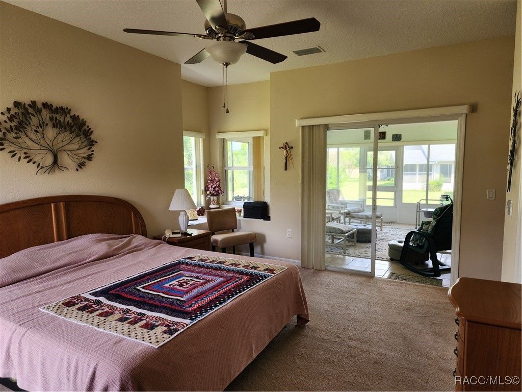 Welcome home to Brentwood in the majestic rolling hills of Citrus Hills. This beautiful care-free villa seats 125.08 feet above sea level, it boasts 3 bedrooms, 2 bathrooms, and a 2-car garage. It is situated on a quiet cul-de-sac. The community swimming pool, gym and Jacuzzi are five minutes walking distance, and the 9-hole public golf field is seven minutes walking distance. Open-floor concept, home is move-in ready. Another notable feature is that the lanai has been extended, is air conditioned which serves as temporary sleeping quarters for visitors and has glass windows, not plastic. It includes a walk-in closet in the primary bedroom and direct access to the lanai from this room. You will enjoy maintenance-free living as lawn care, landscaping, exterior painting every 7 years, and shingle replacement every 20 years (roof done in 2021) are all included. This will leave you with plenty of time to enjoy the dream life. Additionally, you will have a social membership in the Citrus Hills Golf and Country Club, allowing you to embrace the lifestyle. This membership includes access to three state-of-the-art fitness centers, racquetball courts, outdoor pools (one is of Olympic-size), an indoor lap pool, hot tubs, a steam room, a sauna, a spa, a theater, billiards (pool) tables, Pickleball, bocce ball courts, a dog run for your pets as well as various restaurants and a Tiki bar. Golf and tennis memberships are also available. Furthermore, the Brentwood community will soon have a 24/7 manned gated entry, another outdoor swimming pool, Pickleball courts and a grill restaurant through the newly constructed Davis Reserve (55+ community where only one resident has to be at least 55, the others can be any age and live in Davis Reserve for as long as they choose). The home is fully furnished; the furniture is negotiable.