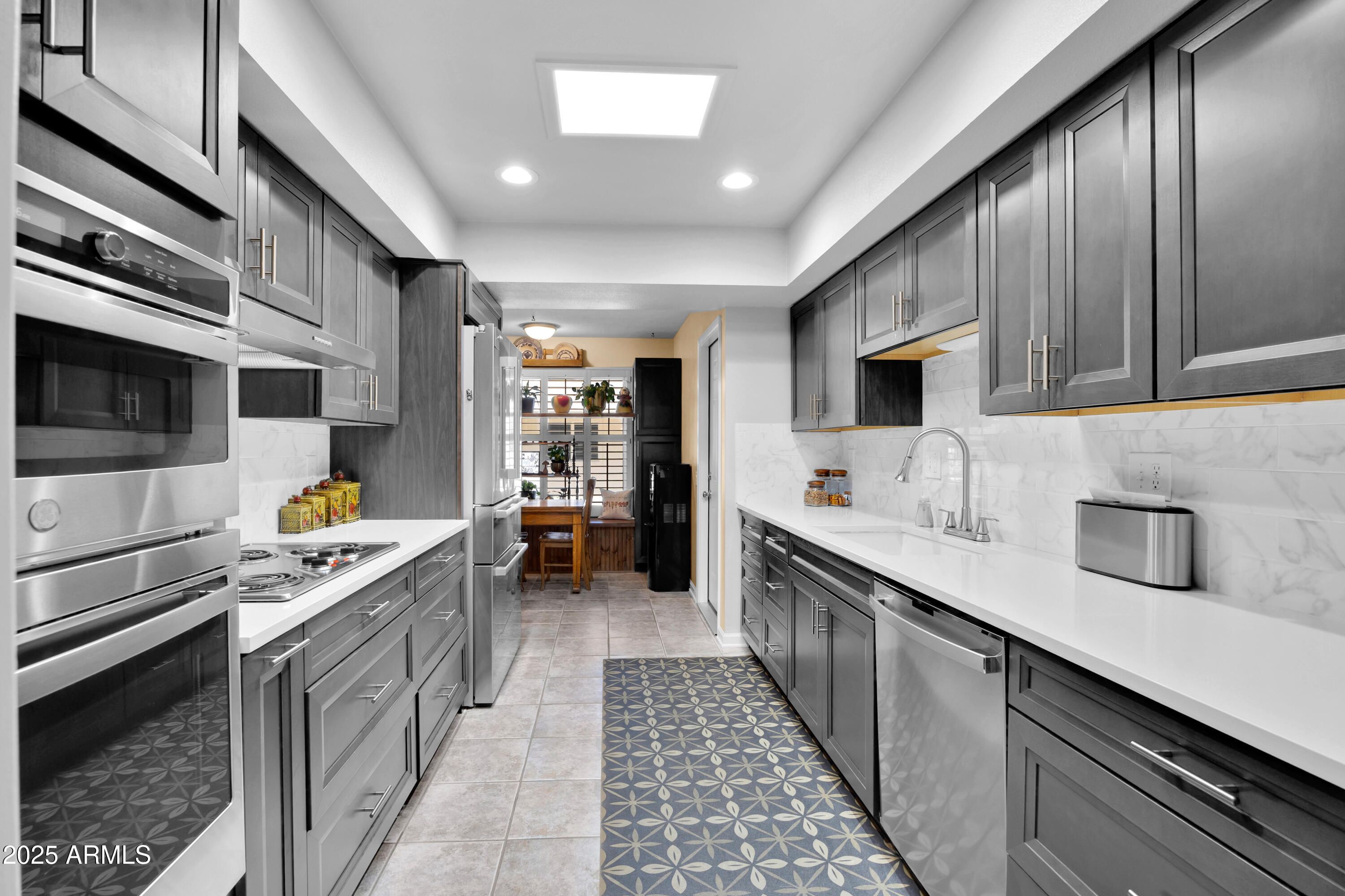FABULOUS, UPDATED 2BR/1.75BTH W/ 2 CAR GARAGE! INVITING PRIVATE COURTYARD ENTRANCE W/ PAVERS, PLUS, SCREENED IN SITTING AREA WELCOME YOU INTO THIS AMAZING HM! ROOF-'22. HVAC-'20. EAT-IN KITCHEN REMODELED IN '22 (MAPLE CABINETS, QUARTZ COUNTERTOPS, GE APPLIANCES, & TILED BACKSPLASH). NEW COOKTOP WAS JUST INSTALLED IN '25. WONDERFUL LAYOUT INCLUDES DINING, LIVING, & AZ RM. AZ RM HAS OFFICE AREA TOO. SPACIOUS BRS W/ WALK-IN CLOSETS. BOTH VANITIES REPLACED & SHOWER IN PRIMARY SUITE-'22. PLANTATION SHUTTERS-'22. CEILING FANS, DUAL PANE WINDOWS, SUNSCREENS, 6 PANEL INT. DRS., GARAGE DR-'22. GARAGE W/ ATT. CABINETS. SOUTHERN EXPOSURE BACK PATIO W/ PAVERS & PERGOLA OVERLOOKS GREENBELT. THIS ONE HAS IT ALL! QUALITY UPDATES GALORE! EXCELLENT LOCATION TOO!