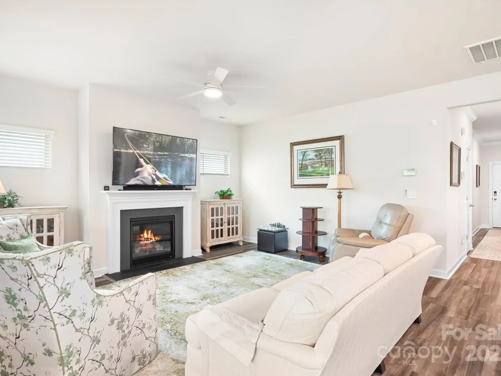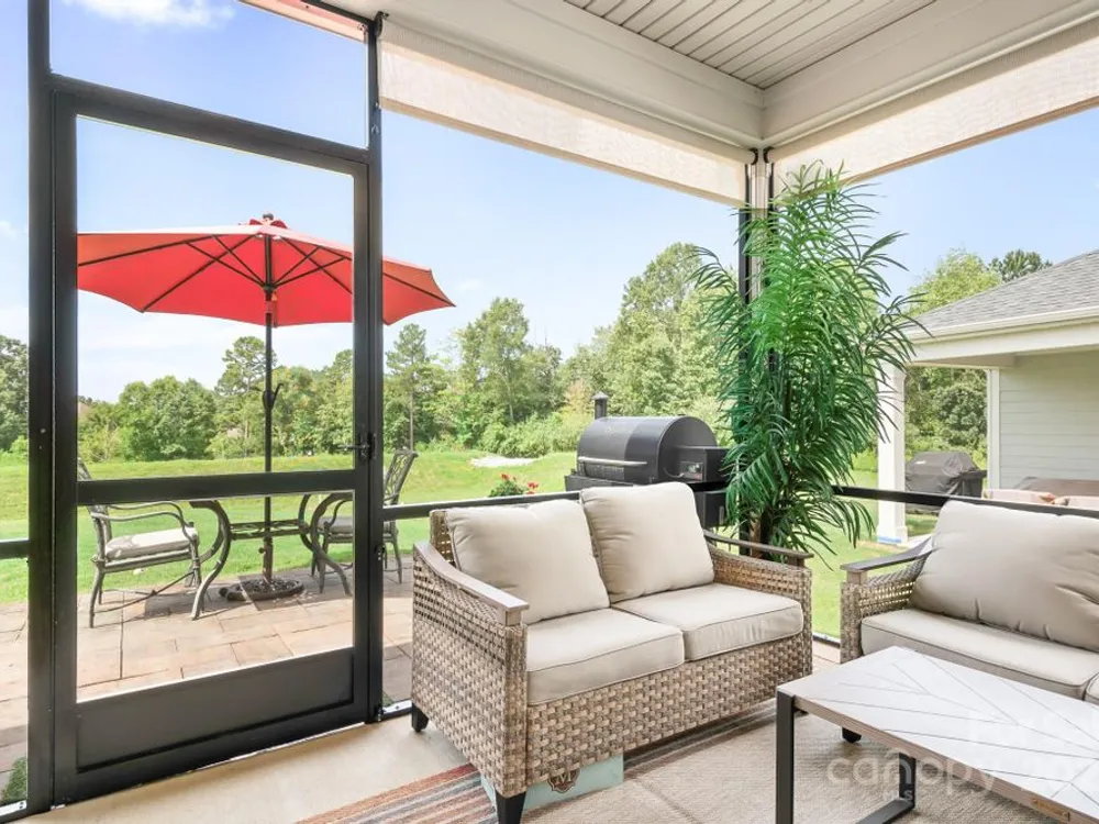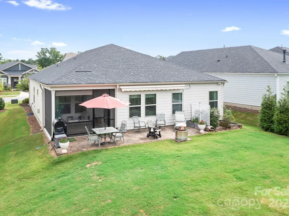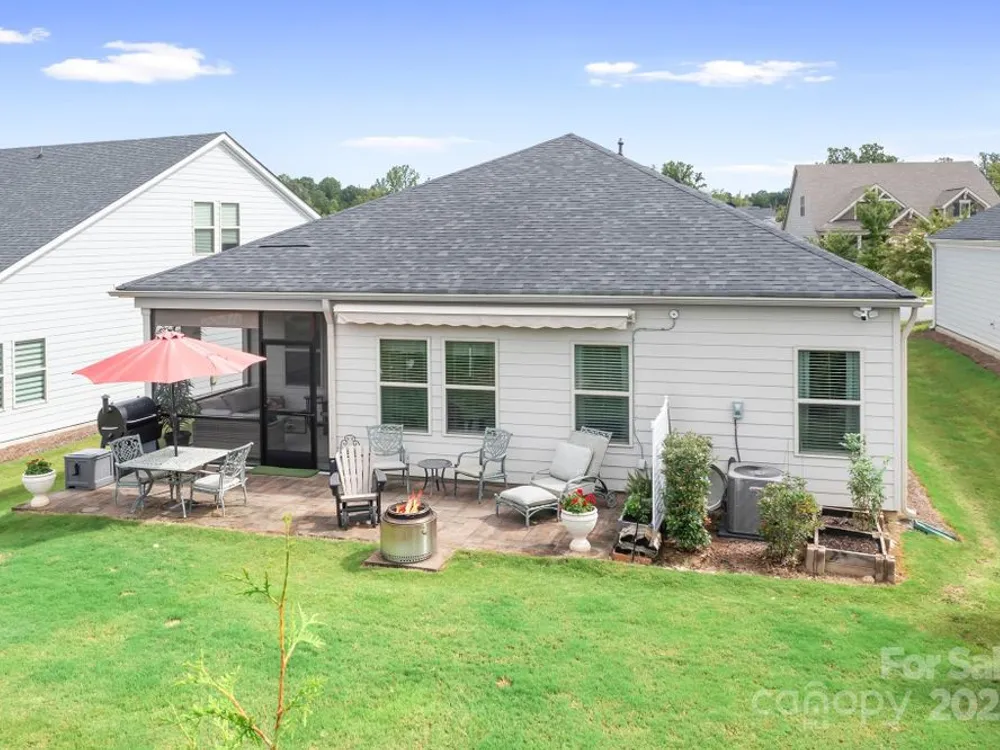 Price Improvement! Don't miss out on this opportunity! Gorgeous Like New, 3 bedroom 2 full bath, one level home in Canopy Creek! Premium Lot! Numerous upgrades and & improvements! Screened in back porch, invisible fence w/dog collar, paver patio, motorized awning w/remote control, added privacy trees, EV charger and more. Open living area, family room with gas logs fireplace. Beautiful Primary Suite, dual sinks, walk-in closet, tile surround shower. Updated lighting, added ceiling fans. Lot backs to Common open space, no homes behind it. You'll see a variety of wildlife that comes to visit on a daily basis. Exceptional home, beautiful finishes and easy living. Lawn care is included in HOA fee along with weekly trash pick-up. Community has a gorgeous pool, walking trails, sidewalks and lovely common area landscape throughout. An exceptional property in a highly sought after neighborhood. Minutes to Verdict Ridge CC, Hwy 16 and Rt 73, 35 minutes to the Airport and Charlotte center city. Make this beautiful home yours today!