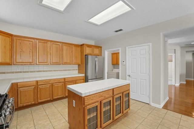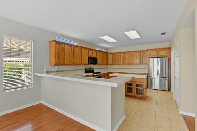 The one that you have been waiting for is here!! Rarely available 2Bed 2Bath plus Office/Den area that could even be a third bedroom. This Orchard Crest open-concept layout features a bright kitchen with loads of counter space and a entertainers Island, new stainless refrigerator and gas oven/range. The seamless flow from the dining area and living room leads to a sun drenched backyard patio with a covered Pergola. Enjoy California outdoor living at its finest with your comfortable over-sized low maintenance yard. Additional highlights include an oversized 2 1/2 car garage and new HVAC system. Washer and dryer are also included. Enjoy all that the Sun City 55+ Community has to offer; well managed with tons of amenities, golf, tennis, walking trails, club house, group activities and more. Come start your new lifestyle today..