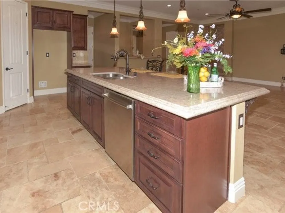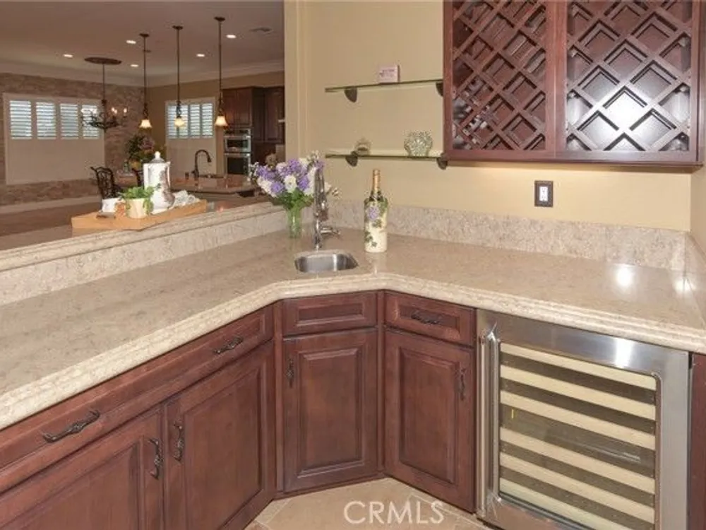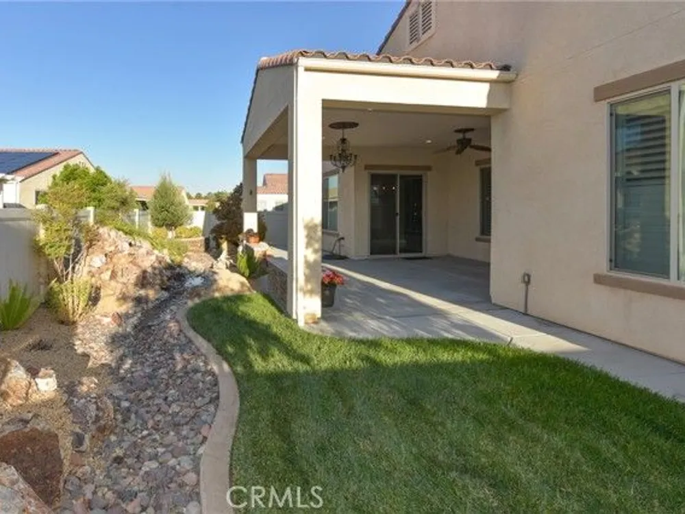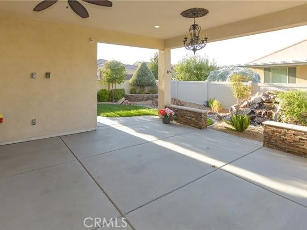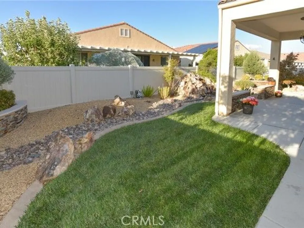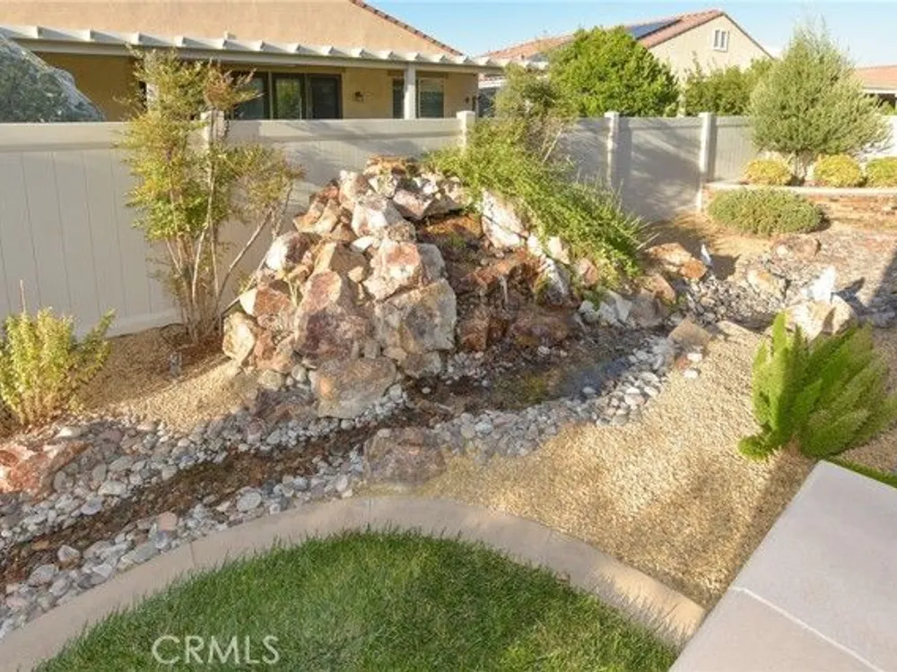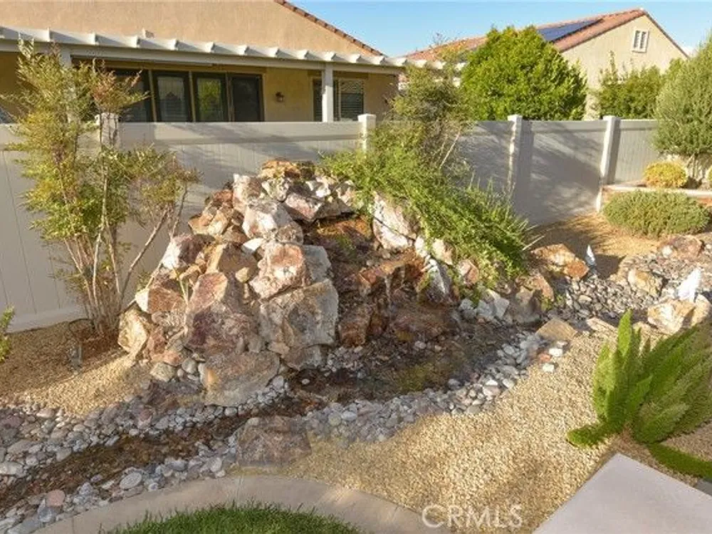 Where Elegance Meets Intention in Sun City Step into a home where every detail has been intentionally elevated and crafted for both refined living and energy-smart comfort. Located in the prestigious Del Webb Sun City community of Apple Valley, this residence offers a rare blend of timeless design, thoughtful upgrades, and exceptional construction. Inside, you’ll find soaring 10-foot ceilings, 8-foot doors, rich travertine flooring, and elegant crown molding and baseboards throughout. Triple-stacked quartz countertops make a stunning statement in the kitchen, where a sleek backsplash with hidden outlets adds seamless style. A built in wet bar and coffee station, add both charm and convenience, making entertaining, and morning rituals, a breeze. Two stacked rock accent walls, one in the dining area and another at the hallway’s end, bring depth, texture, and designer detail. The spacious primary suite features a cedar-lined closet and a hidden drop-down ironing board, blending luxury with convenience. The low-threshold shower and patio doors, offer effortless accessibility, beautifully integrated for anyone using a walker or wheelchair. Beyond aesthetics, this home was designed for long-term comfort. A full energy efficiency package includes upgraded HVAC, a high-efficiency tankless water heater, enhanced wall and ceiling insulation, and a fully insulated garage, expanded by 10 feet and finished with built-in cabinets for smart storage. The back patio has also been extended an additional 10 feet, creating an ideal space for entertaining or quiet morning coffee. Ceiling fans and upgraded lighting fixtures are thoughtfully placed throughout, while security cameras offer peace of mind. And just beyond the doors, your private backyard sanctuary awaits, with a soothing waterfall feature that melts the stress of the day away. Every inch of this home reflects care, craftsmanship, and comfort. For those who appreciate beauty, intention, and enduring elegance, this is a must-see.