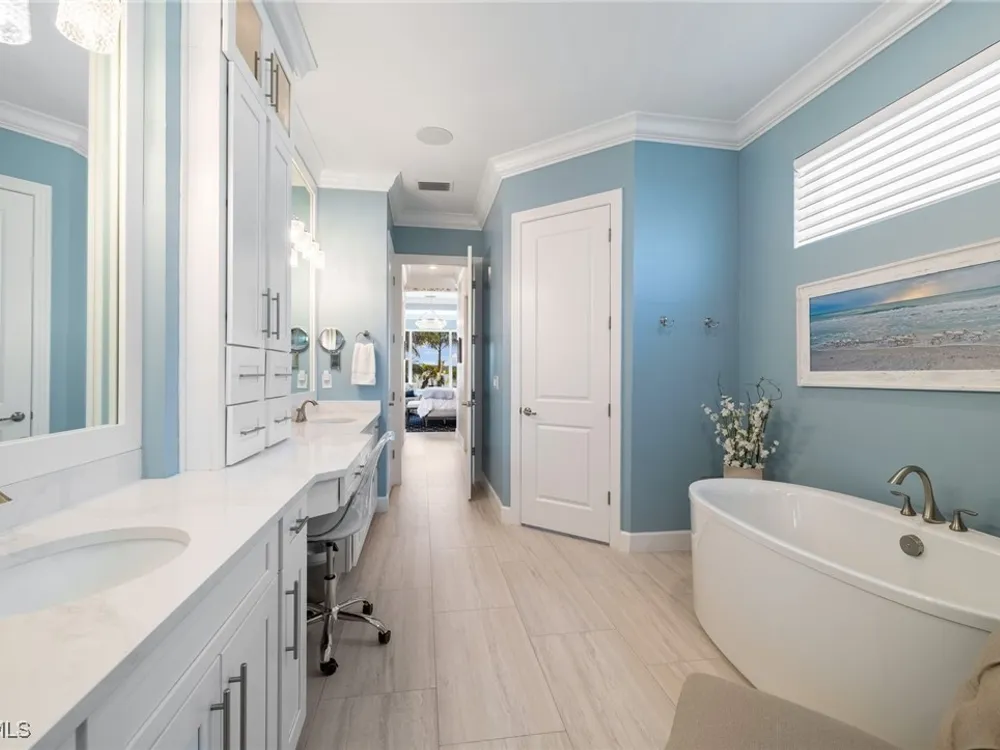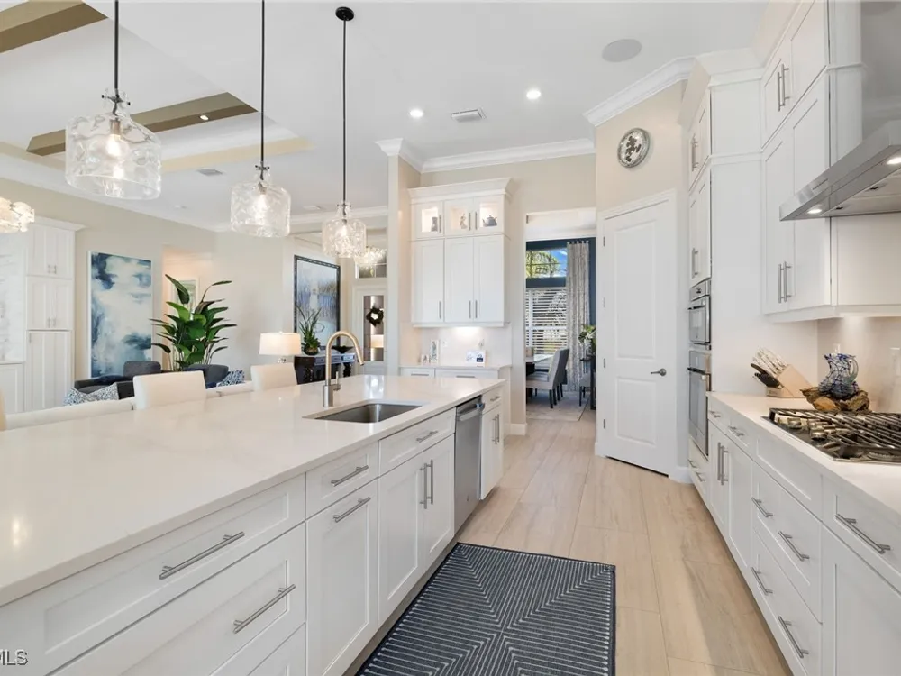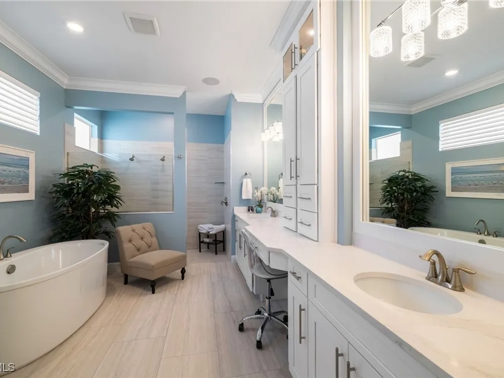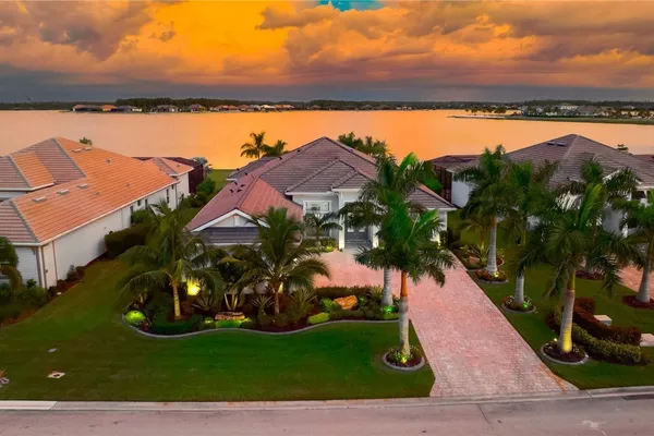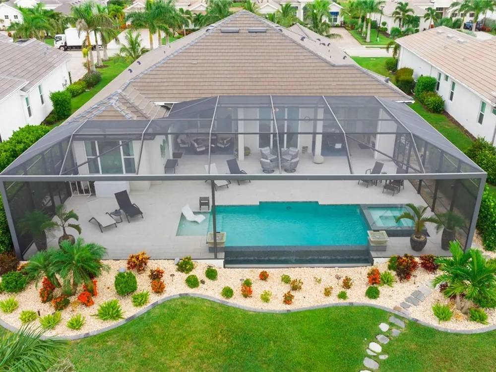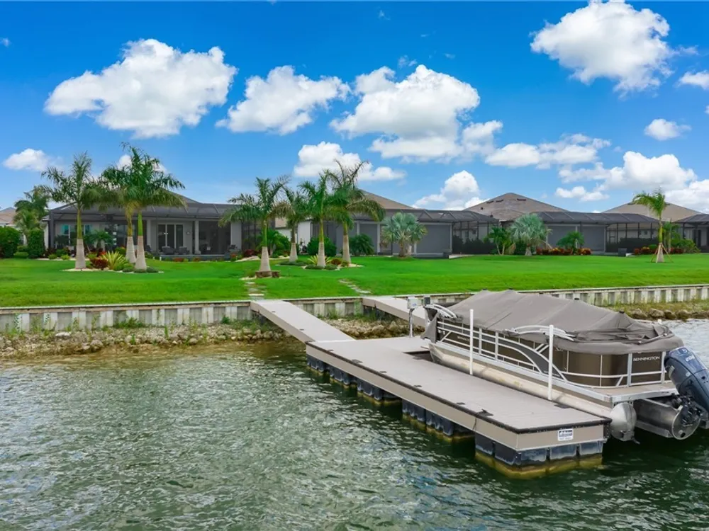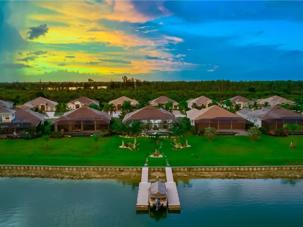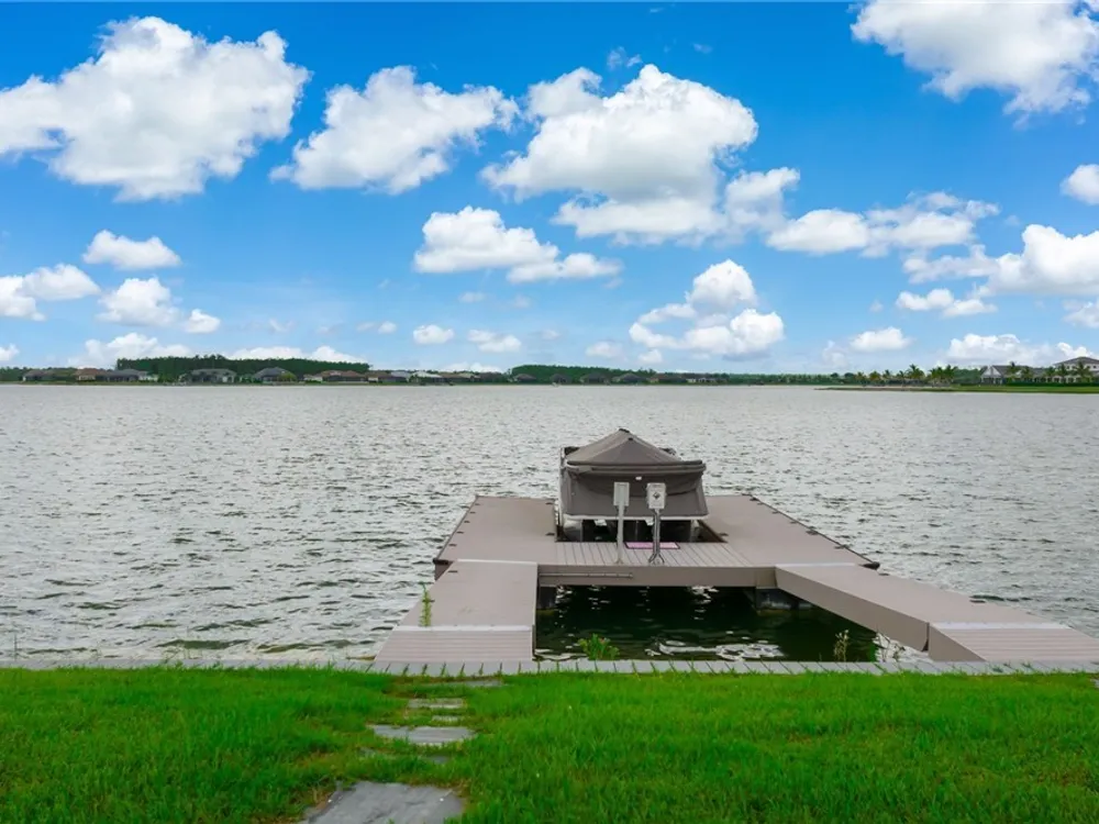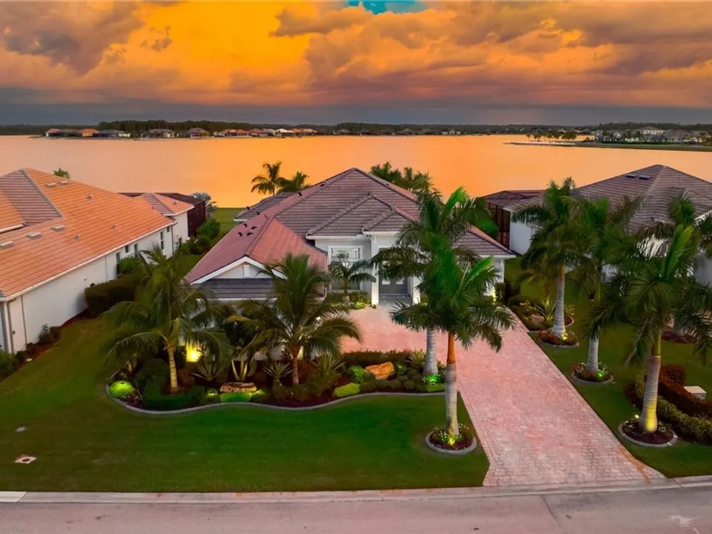 Proudly presenting the Envy of the Lake, 18893 WildBlue Blvd. Constructed by WCI and crafted by meticulous owners, this 1-of-1 Baneberry model has been totally customized, and must be seen to be experienced. All four bedrooms are en-suites with their own full bathrooms attached, with one doubling as a guest bathroom and another as a pool bath. The sprawling 3,178sqft of open-concept living space is completed with porcelain plank tile flooring, with every inch of the home offering tasteful and luxurious upgrades. The great room is the heart of the home, with a formal dining area, breakfast nook, living room, and gourmet kitchen all aligned with sweeping views of the 435-acre boatable WildBlue Lake. The master suite is separate from the rest of the bedrooms, offering plenty of space and privacy. Notable upgrades include a custom living room entertainment center, coffered ceilings in the living and dining rooms, wood entry ceiling, crown molding throughout, surround sound inside and outside, soft-close cabinetry with additional uppers in the kitchen, Calcatta gold quartz countertops, upgraded custom paint, designer light fixtures and window treatments, and tons of added touches you'll notice in every single room. Outside offers an infinity-edge pool with waterfalls and a spillover spa, a 60ft-wide porcelain tile pool deck with a picture window screen cage, fully equipped outdoor kitchen, wood lanai ceiling, dock with a boat lift and lighting, an air conditioned three car garage, and spectacular landscape lighting all the way around the home. For peace of mind and ease of use, the home is also equipped with impact windows and doors, automatic rolldown hurricane screens on the lanai, and an automatic whole home generator. Walking distance away, WildBlue's amenity peninsula provides panoramic views of WildBlue Lake and features a resort-style pool, separate lap pool, sandy lakeside beach, fitness center with studios, locker rooms with saunas, spa, a full-service restaurant and bar, poolside bar and grill, tennis and pickleball courts, a pro shop, basketball, boat ramps to over 800 acres of freshwater lakes, boat slip rentals, kayak storage, and more. Schedule your private showing today and make this piece of paradise your home!
