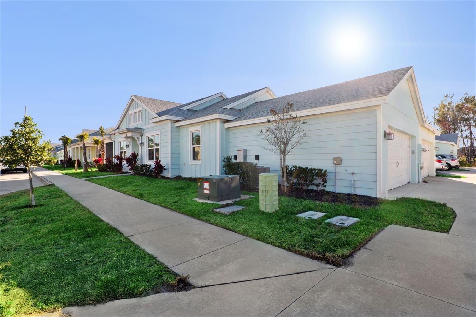 Feel Secure in Paradise! This home offers a truly worry-free coastal lifestyle with big dollar upgrades designed for comfort, efficiency, and peace of mind. Whole-house impact/hurricane-rated windows—including the patio glass—an upgraded impact/hurricane-rated insulated garage door, and enhanced energy-efficient insulation in the block walls ensure both a sense of protection and year-round comfort. Step inside this split-plan Aloha model, the largest of the cottage designs, and you’ll immediately appreciate its refined, Tommy Bahama–inspired finishes. Eight-foot interior doors elevate the space with an understated elegance, while the kitchen reflects thoughtful investment—beautiful 42" wood cabinets wrapped in crown moulding and light rail moulding with pull-out shelves and trash receptacle, soft close doors and drawers plus gorgrous quartz countertops, and upgraded appliances including the refrigerator and range. Paddle fans and striking woven bamboo light fixtures complete the look, blending coastal ease with timeless style. Designed with entertaining in mind, the open great room flows seamlessly onto the patio, creating an inviting space for gatherings large or small. The laundry room—complete with washer and dryer—is thoughtfully tucked away from the primary bedroom and main living areas, ensuring quiet and convenience. Additional upgrades include a smart Wi-Fi thermostat, Wi-Fi–enabled garage door opener with security camera, a durable polyaspartic garage floor coating, patio sunshades, upgraded kitchen faucet, and an upgraded primary closet door. Speaking of closets...there is an abundance of closet space and an additional upper shelf has been thoughtfully added to the closets to take full advantage of the 8 ft. door opening. The primary bath is a spa-like dream and boasts frameless shower doors as well as floor to ceiling wall tile in shower. Lightly lived in and meticulously maintained, the home remains under builder’s warranty, offering added confidence. Bedrooms are generously sized, and the study features French doors—ideal for a home office, fitness space, retreat or even a 3rd bedroom. The location is equally appealing, with a sidewalk leading directly to Salt Shaker Square, a favorite neighborhood gathering spot. From there, hop on your golf cart to Publix or cruise over to the town square to enjoy the community’s many well-known amenities such as the Fins Up Fitness, Last Mango Theater, the bandshell featuring frequent live entertainment, full service restaurant and bar, sports courts for tennis/pickleball and a tropical resort-style pool that will make your friends envious—and when you’re ready for the ocean, simply take the included shuttle to your private beach club! Life moves quickly. This is your chance to live it well—relaxed, secure, and inspired every day.