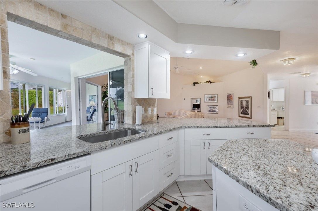 With almost 2,300 sq/ft under air, this attractive 3BR/2BA home is one of the largest properties in Riviera Golf Estates! Recent updates include a BRAND NEW SHINGLE ROOF, new plumbing, and a new water heater. The home was built in 1993 and is being sold TURNKEY! The kitchen has been updated with granite countertops, tile backsplash, custom island, newer cabinets, and easy close drawers. The open floor plan and vaulted ceilings add to the home’s spacious feel. The garage is oversized and includes a work bench. There is a well to reduce lawn irrigation costs. The back patio is ideal for grilling while watching the beautiful SW Florida sunsets. The spacious Florida Room is large with plenty of windows to slide open, providing a pleasant breeze on a nice day. Riviera Golf Estates is a quiet and friendly 55+ community located just a short drive from 5th Ave. A world class pickleball center is close by. Riviera’s amenities include a newer heated saltwater pool with lap lanes, exercise room, tennis, pickleball, shuffleboard, bocce courts, billiards room, and a large clubhouse with an active social calendar. The HOA fee is one of the lowest in East Naples: just $144/mo. (includes your basic internet). Riviera Golf Estates continues to be one of the best buys in Naples. Isn't it time you owned your own piece of paradise, and at a very affordable price?
