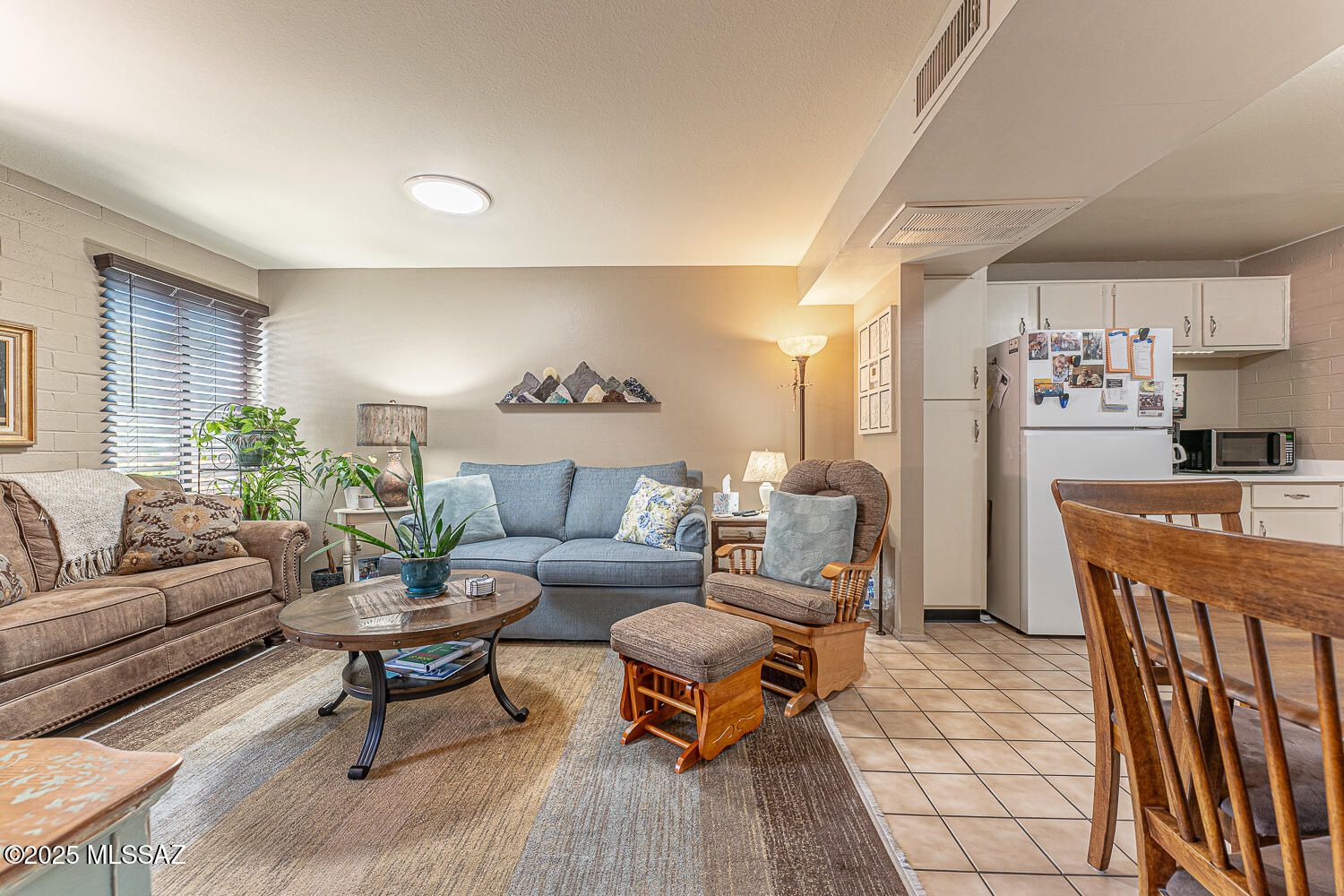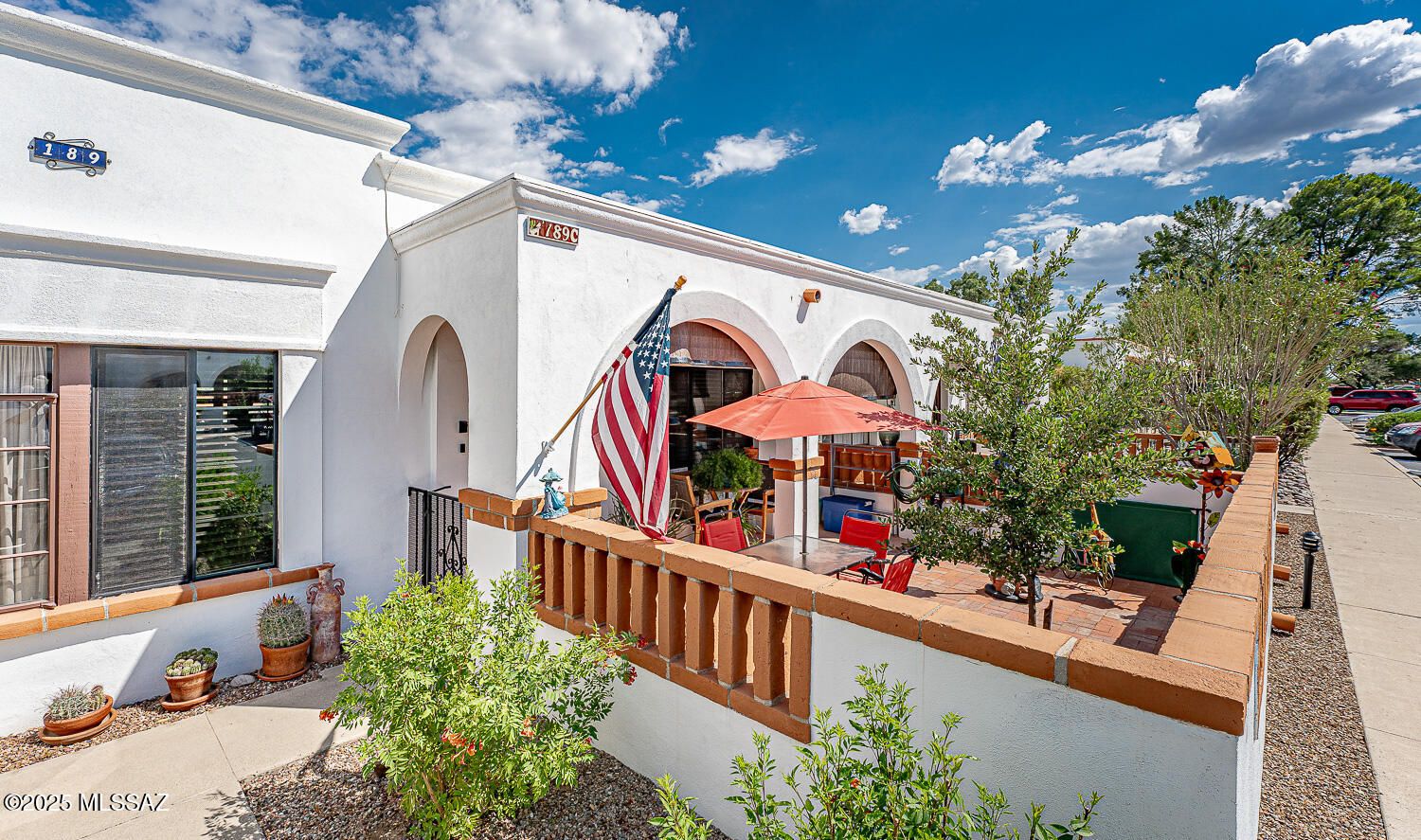 BEAUTIFUL FURNISHED VILLA! You can move right in! Newer HVAC and roof recoat. Welcoming front courtyard with gorgeous live oak tree and drop down blinds on the arches. Step through the newer front door with blinds between the glass Tile floors throughout, and newer windows. Bright and spacious living rm that features a solar tube. Warm and functional kitchen features new stove and pantry for extra storage. Updated electrical panel! Step out back to your lovely patio with mountain views. The large storage room has water plumbed in and electrical outlet. Super close proximity to community pool and just across from laundry facility. HOA fees cover so much for piece of mind. Don't miss!