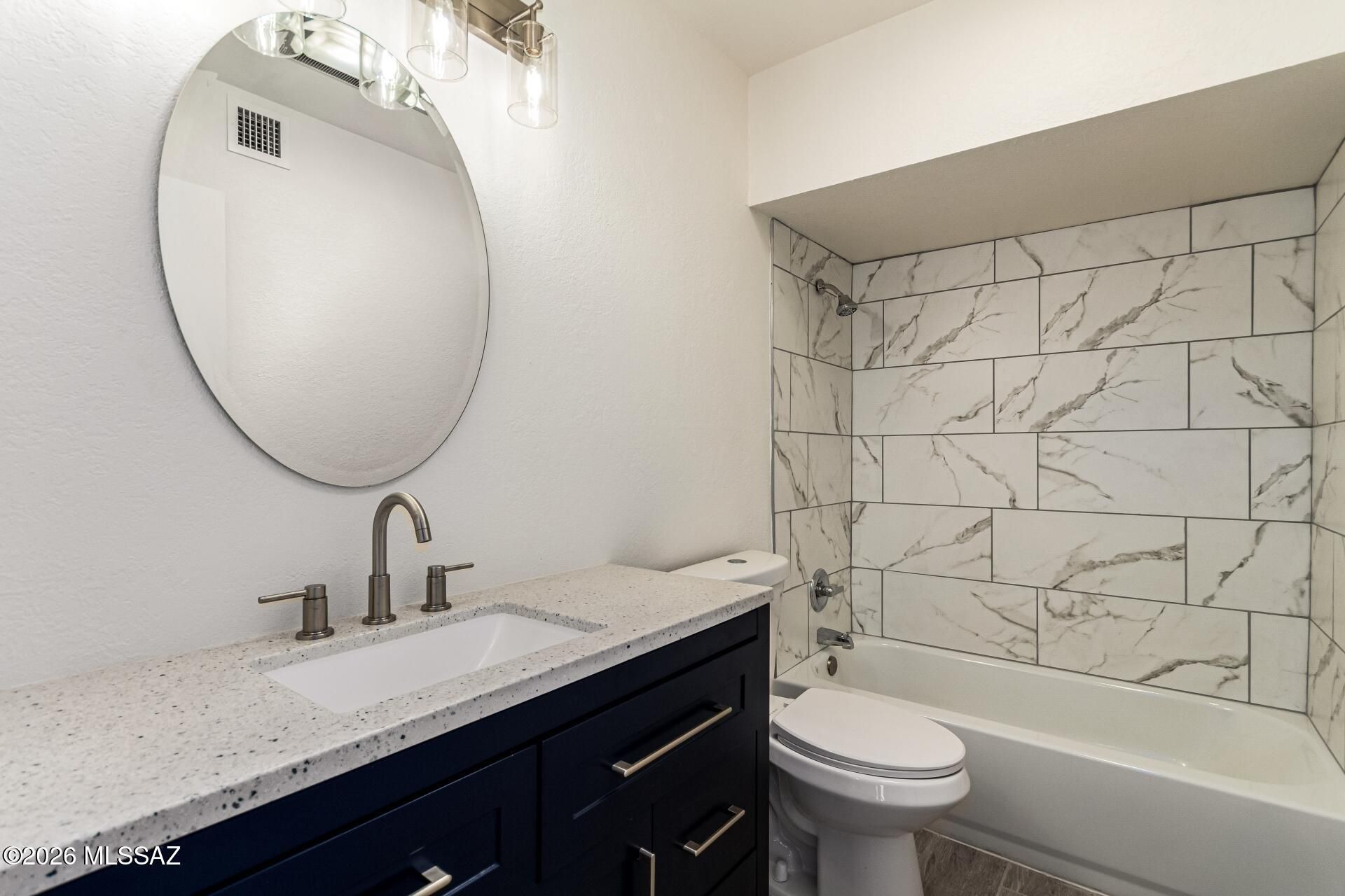Beautifully updated 2 bed, 2 bath home offering 1,360 sq ft of bright, open-concept living. Functional floor plan with seamless flow, featuring NEW tile flooring, fresh interior paint, new lighting, and ceiling fans throughout. Spacious kitchen with NEW cabinetry and quartz countertops. Comfortable bedrooms with generous closets, including a primary suite with private bath. Bathrooms updated with tile. Includes laundry closet and mud room for added convenience. Enjoy a private, fully fenced backyard with low-maintenance desert landscaping and covered patio--perfect for relaxing or entertaining. Great curb appeal with fresh exterior paint, resealed roof, serviced HVAC, and well-maintained systems. Agent/Owner.