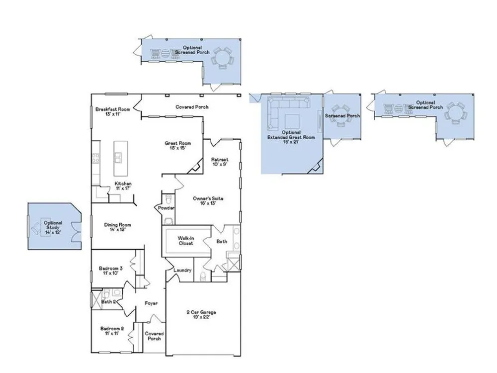 This deep homesite, single-story Dover floorplan design combines elegance and comfort. At its heart is a first-floor Great Room flowing into a gourmet kitchen and a breakfast room with a door to the covered patio. A formal dining room is ideal for memorable meals. In a corner is the lavish owner’s suite with a versatile retreat and adjoining bathroom, while at the opposite end of the home are two comfortable bedrooms.This home also features attic storage over the garage and a calming fireplace. Plus, our signature Everything's Included program means you will get a gourmet kitchen with double ovens and cooktop, quartz or granite kitchen countertops, subway tile backsplash, ceramic tile, luxury vinyl plank flooring throughout the home, and a gas fireplace (per plan). Roselyn is a master-planned community offering exclusive ranch homes designed for active adults.