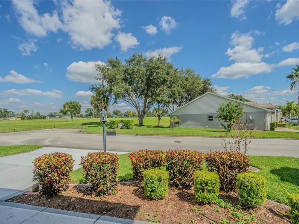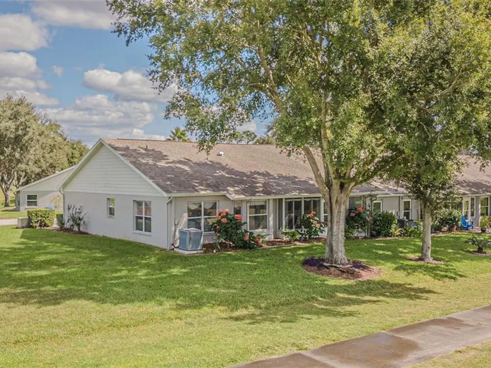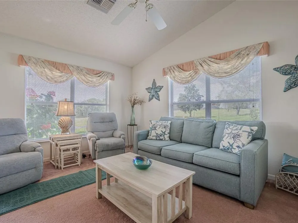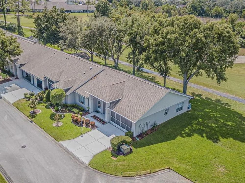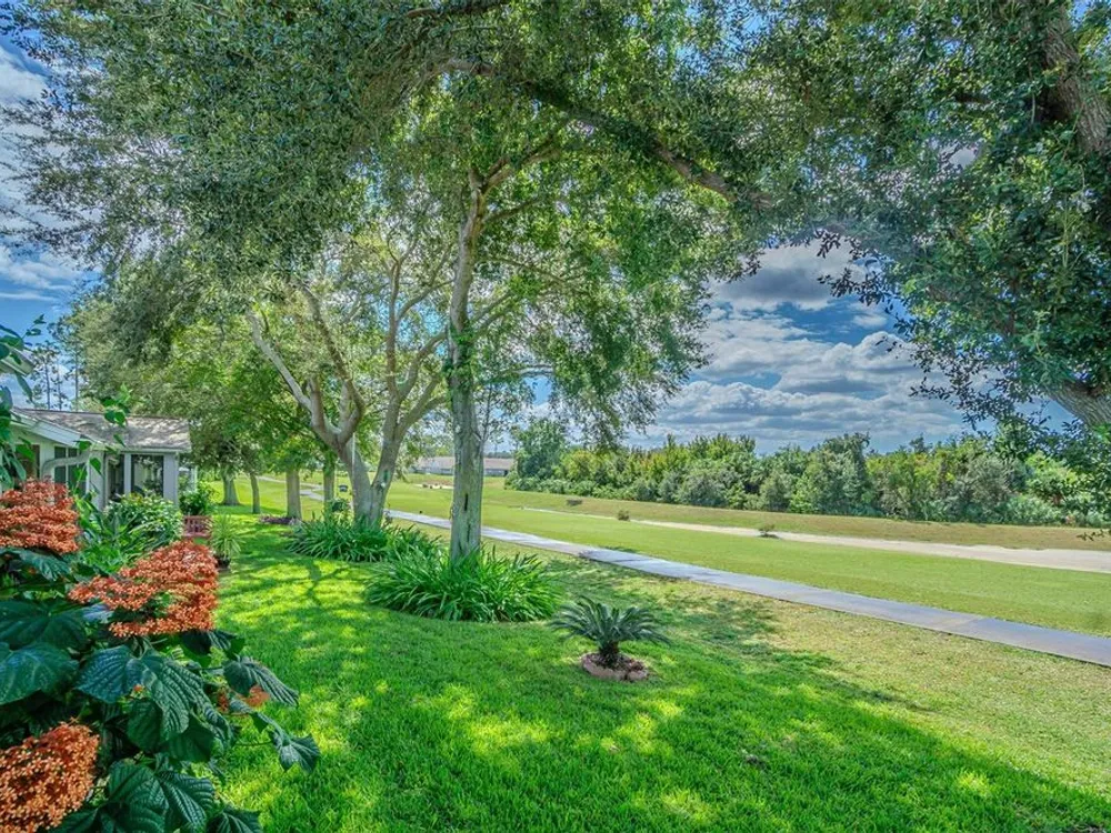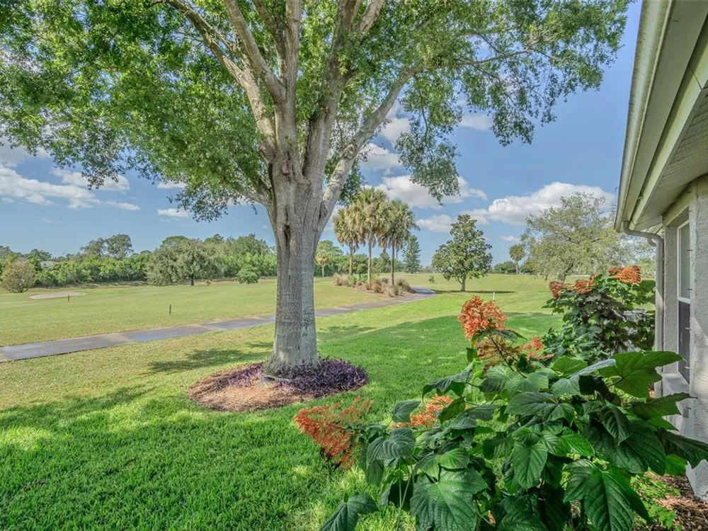 Beautiful Golf Course Villa in Heritage Pines – Fully Furnished & Move-In Ready! Immaculate end-unit villa located on the 6th hole of the Heritage Pines Golf Course. This spacious home offers a 2-car garage plus convenient cul-de-sac guest parking. Sold completely furnished and in exceptional condition, it’s one of the larger floor plans available. Enjoy an open, dine-in kitchen adjoining a comfortable family room—both with stunning golf course views. The dining area easily accommodates an 8-person table and flows seamlessly into the living room for easy entertaining. The primary suite overlooks the golf course and features a large walk-in closet and private bath with a walk-in shower. The guest bedroom offers plenty of space for two twin beds or a queen/king setup, with a second full bath nearby. The laundry room is well-equipped with Maytag appliances, a utility sink, and upper cabinetry. Ceiling fans are found throughout—in both bedrooms, the den, and the living room. The screened lanai opens wide to the main living area through double sliding glass doors, offering a perfect place to relax and enjoy the view. The HOA covers lawn maintenance, cable, internet, and pest control—ideal for a low-maintenance “lock-and-leave” lifestyle. Heritage Pines is a premier 55+ gated community with 24-hour security, an active country club, heated pool, tennis and pickleball courts, and an on-site restaurant offering weekly features and events. Furniture inventory, survey, and all home-related documents are available for review. Bonus- this 6th hole is the only one where you can see golfers tee of and putt!