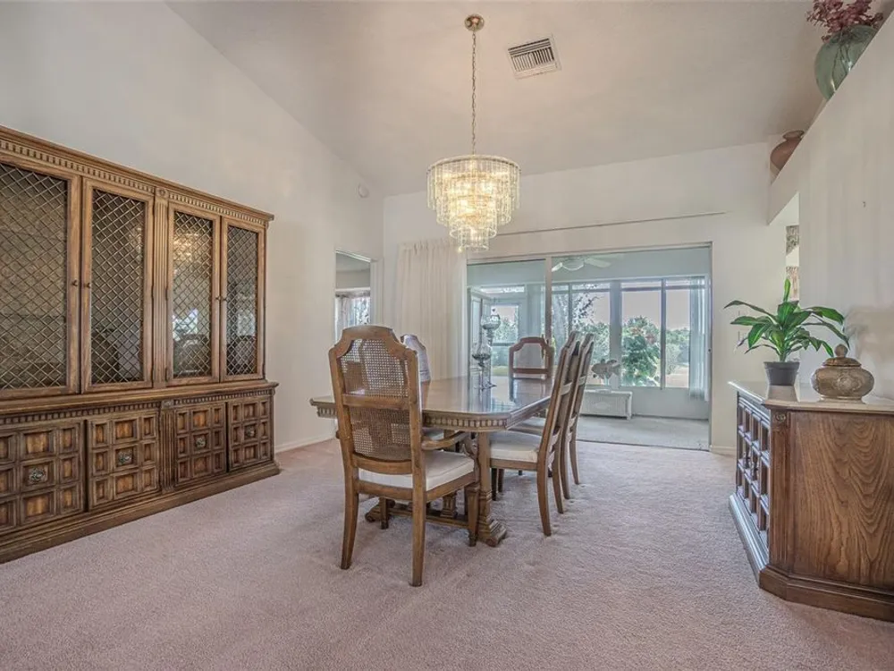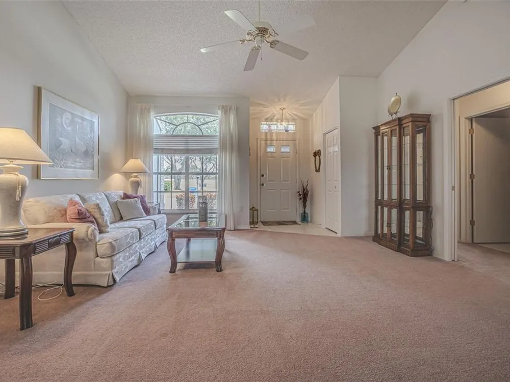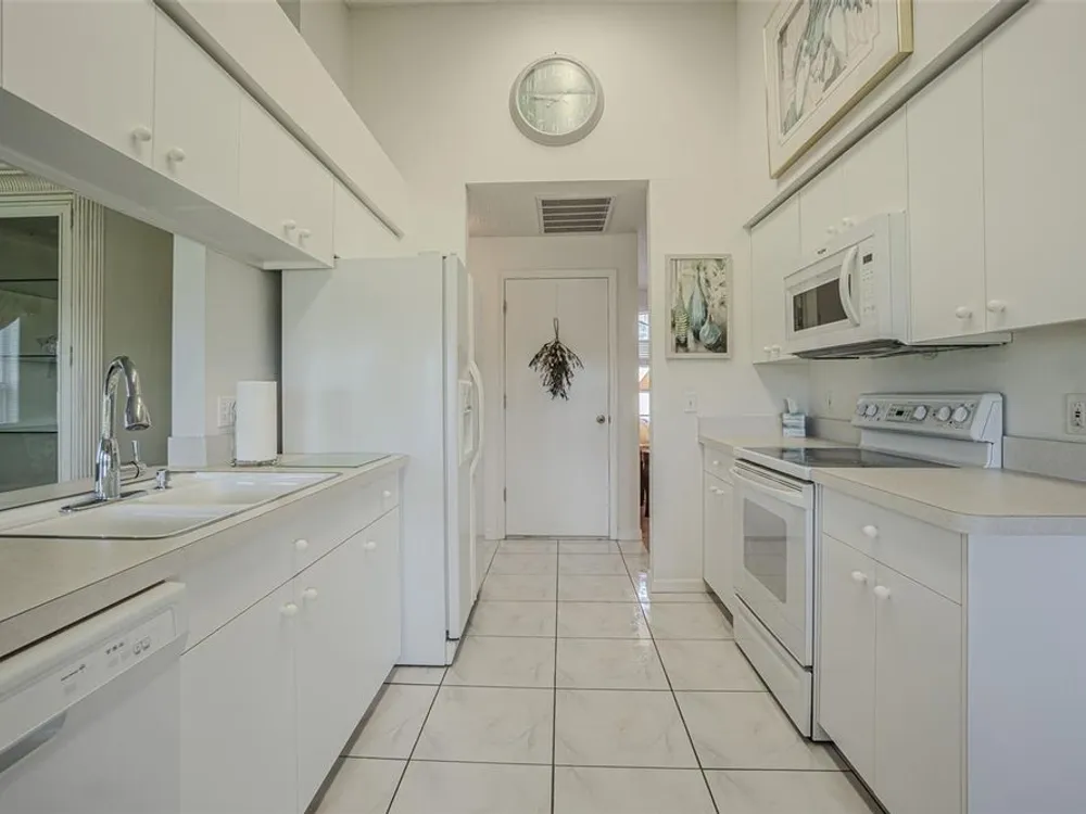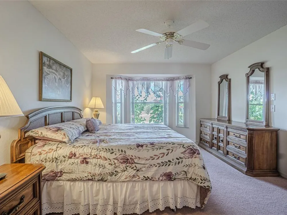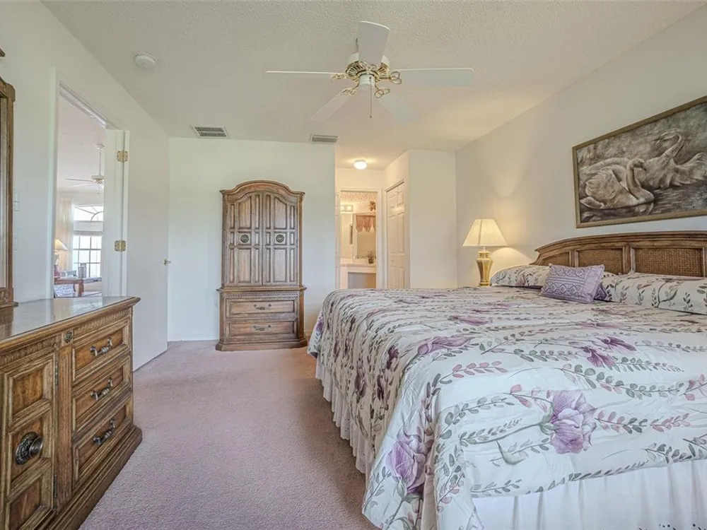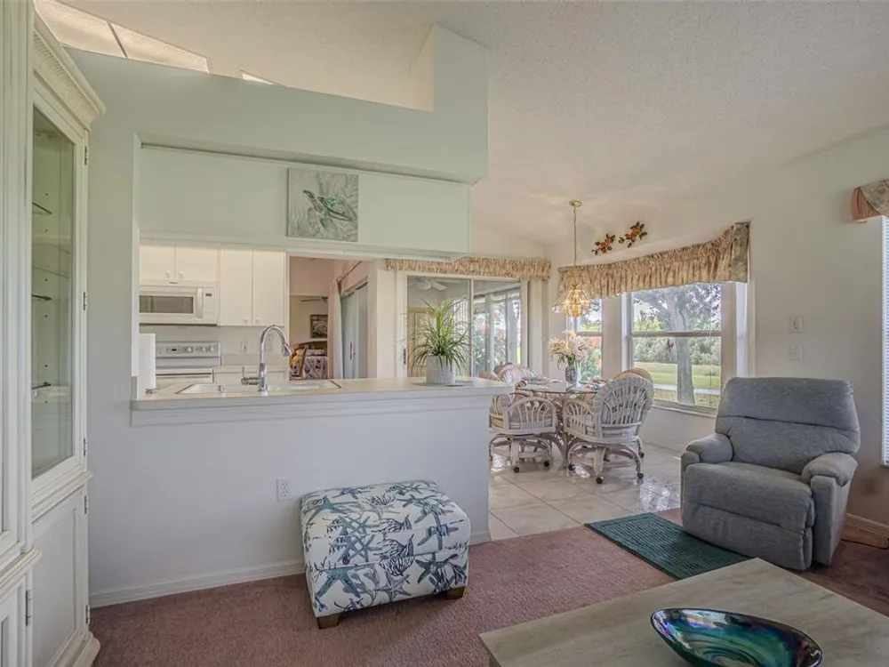 Beautiful Golf Course Villa in Heritage Pines – Fully Furnished & Move-In Ready! Immaculate end-unit villa located on the 6th hole of the Heritage Pines Golf Course. This spacious home offers a 2-car garage plus convenient cul-de-sac guest parking. Sold completely furnished and in exceptional condition, it’s one of the larger floor plans available. Enjoy an open, dine-in kitchen adjoining a comfortable family room—both with stunning golf course views. The dining area easily accommodates an 8-person table and flows seamlessly into the living room for easy entertaining. The primary suite overlooks the golf course and features a large walk-in closet and private bath with a walk-in shower. The guest bedroom offers plenty of space for two twin beds or a queen/king setup, with a second full bath nearby. The laundry room is well-equipped with Maytag appliances, a utility sink, and upper cabinetry. Ceiling fans are found throughout—in both bedrooms, the den, and the living room. The screened lanai opens wide to the main living area through double sliding glass doors, offering a perfect place to relax and enjoy the view. The HOA covers lawn maintenance, cable, internet, and pest control—ideal for a low-maintenance “lock-and-leave” lifestyle. Heritage Pines is a premier 55+ gated community with 24-hour security, an active country club, heated pool, tennis and pickleball courts, and an on-site restaurant offering weekly features and events. Furniture inventory, survey, and all home-related documents are available for review. Bonus- this 6th hole is the only one where you can see golfers tee of and putt!
