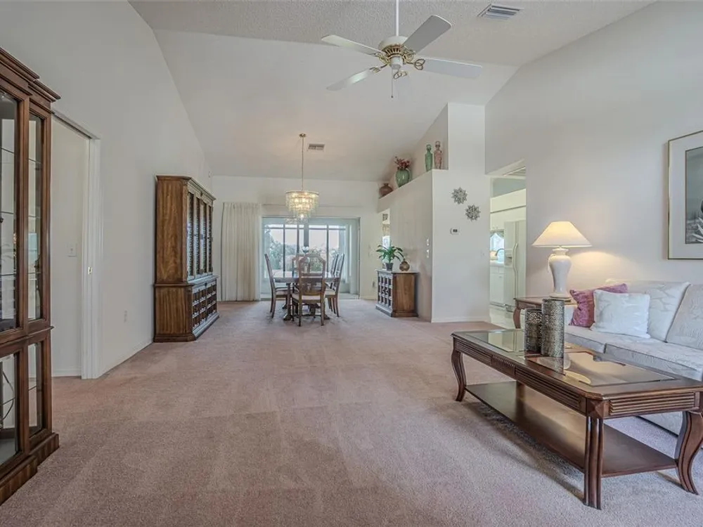 - Ceiling Fan(s), Eat-in Kitchen, Kitchen/Family Room Combo, Living/Dining Room, Open Floorplan, Main Level Primary, Vaulted Ceiling(s), Walk-In Closet(s), Window Treatments