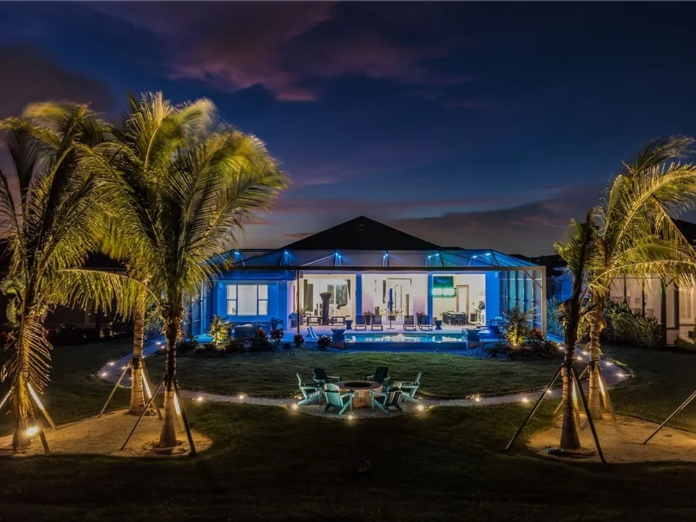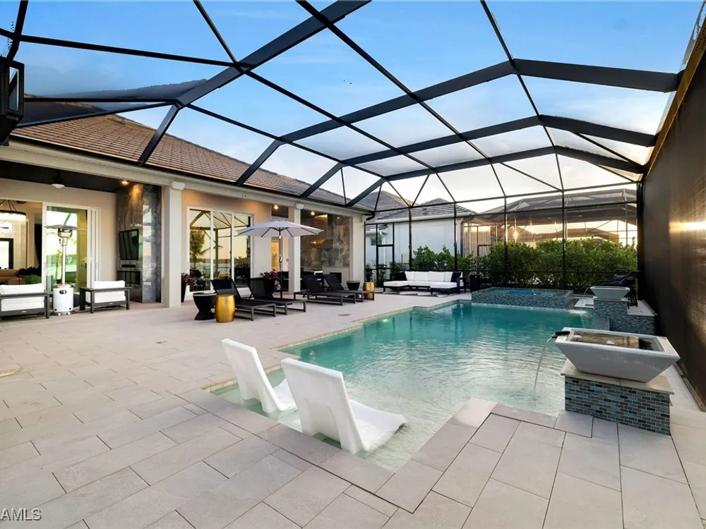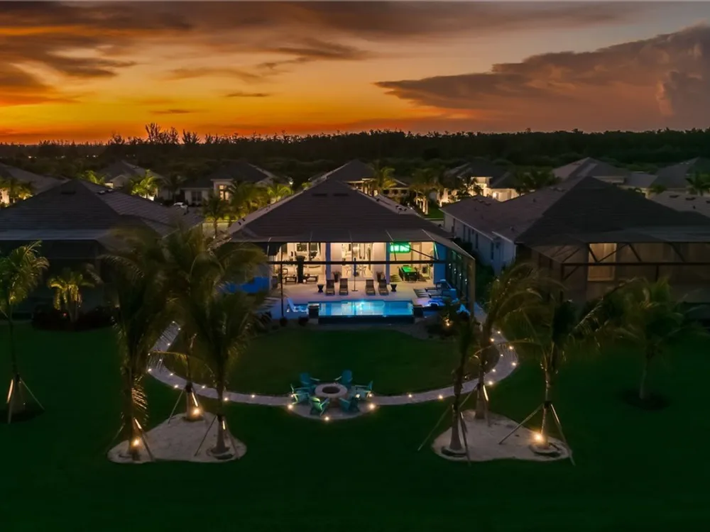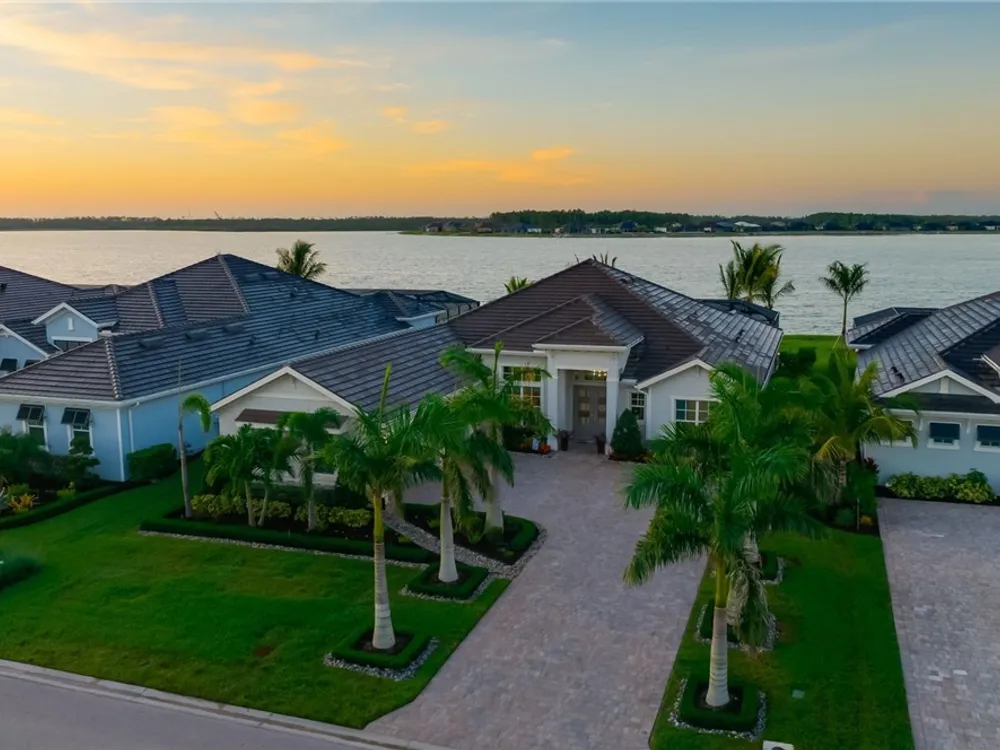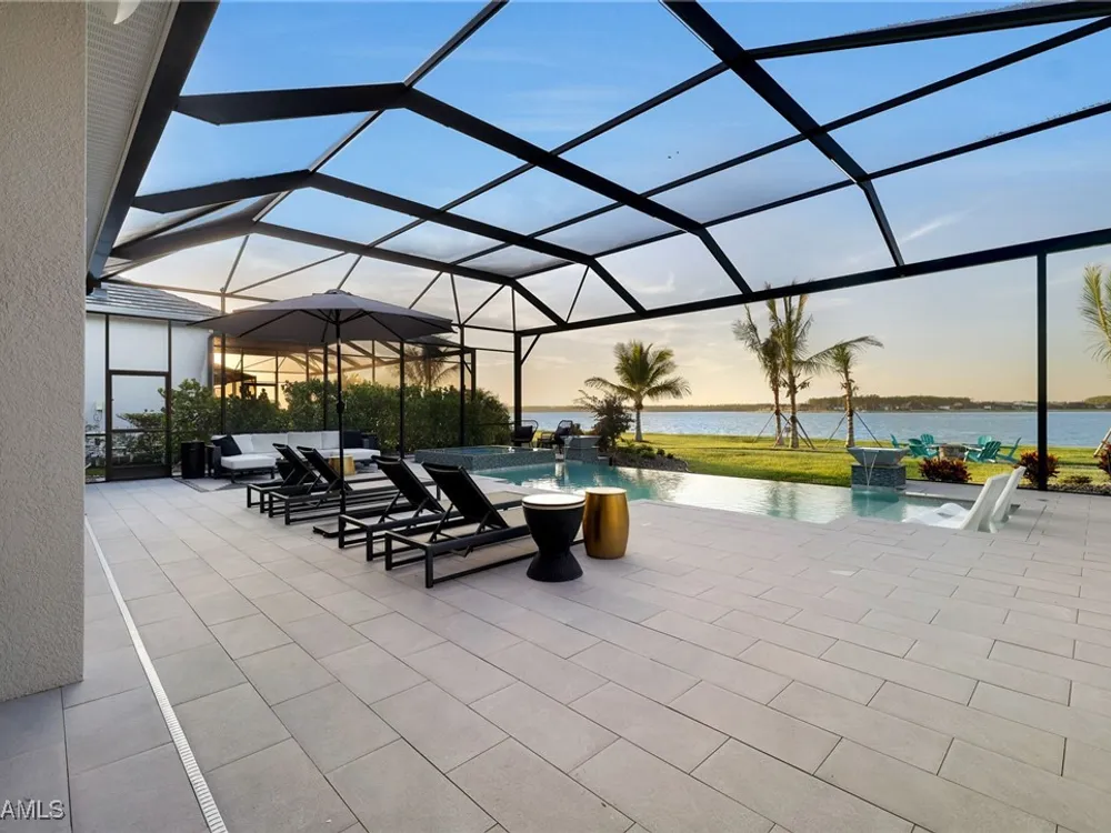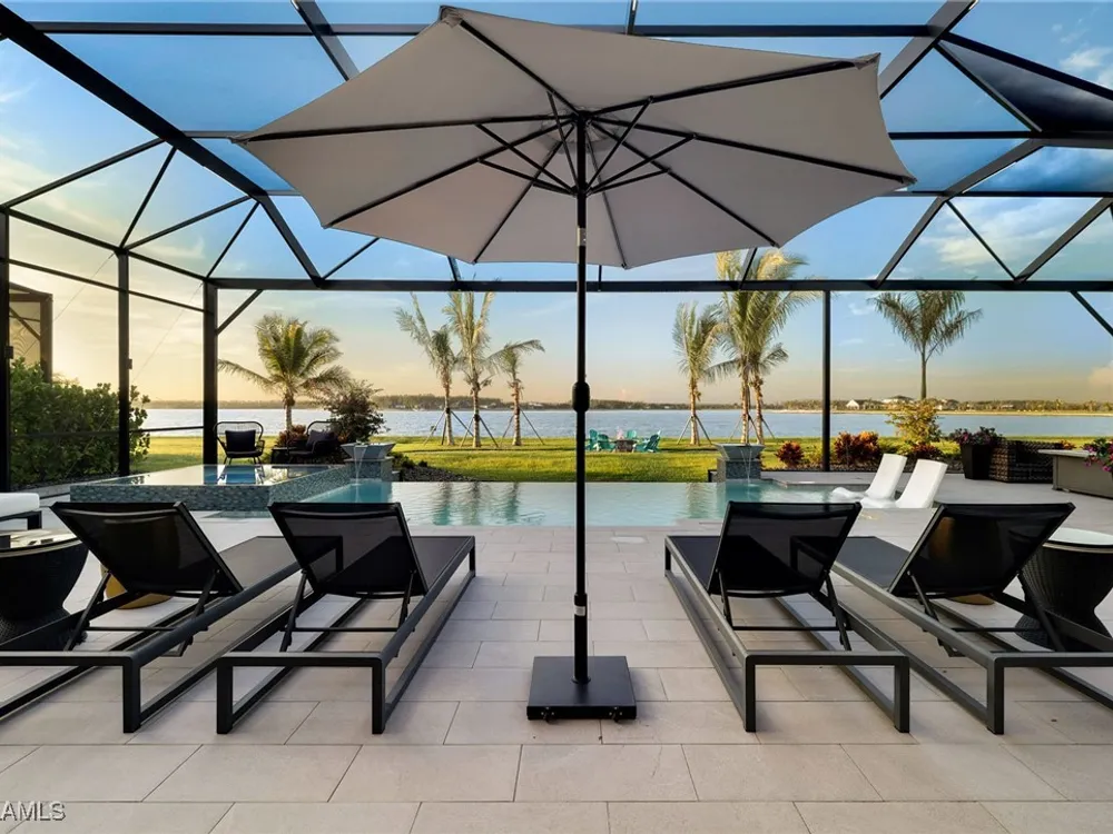 Welcome to 18917 WildBlue Blvd, the premier lakefront Estate Home in WildBlue. Constructed by the esteemed WCI Communities and offered fully furnished, this best-selling Baneberry floor plan features four bedrooms, three and a half bathrooms, and a wide-open concept layout spanning 3,178sqft under air. You will be welcomed to the property with king palms lining the driveway, accompanied by custom landscaping and magazine-worthy outdoor lighting. The grand double glass door entrance offers an open feel with direct views of the living area, pool, and lake. Tall windows and sliding glass doors line the interior, bathing your living space in natural light and offering seamless indoor/outdoor Florida living. Three guest bedrooms provide plenty of room for guests and an office, while the luxurious master retreat offers space, comfort, and privacy. Enjoy stunning views from your massive outdoor living area, including a covered lanai, outdoor kitchen, built-in entertainment center, custom wood ceiling, 60ft-wide porcelain tile pool deck, infinity-edge pool with waterfalls and a spillover spa, and a picture window screen cage. Step out your screen doors to find dual lighted paver walkways to a lakefront fire pit and seating area backdropped by coconut palms and southeastern views over the 435-acre recreational WildBlue Lake. Additional notable upgrades include impact windows and doors, built-in entertainment centers in the living room, master bedroom, and lanai, coffered ceilings, custom trim work, large porcelain plank tile floors throughout, a gourmet kitchen with shaker-style cabinetry and additional uppers, Calcatta Gold quartz countertops, built-in stainless steel appliances, a wine cooler, designer light fixtures and window treatments, an air conditioned three-car garage, and tons more. Walking distance away, WildBlue's amenity peninsula provides panoramic views of WildBlue Lake and features a resort-style pool, separate lap pool, sandy lakeside beach, fitness center with studios, locker rooms with saunas, spa, a full-service restaurant and bar, poolside bar and grill, tennis and pickleball courts, a pro shop, basketball, boat ramps to over 800 acres of freshwater lakes, boat slip rentals, kayak storage, and more. Schedule your private showing today to make this masterpiece your home!