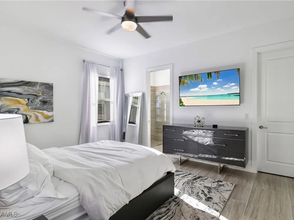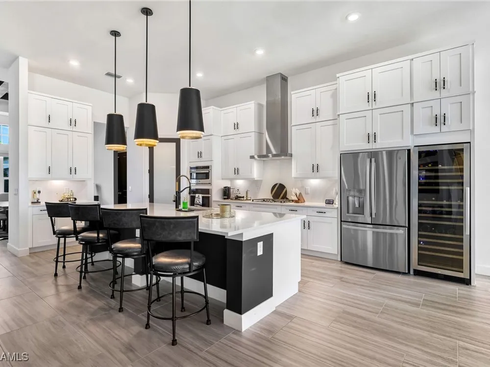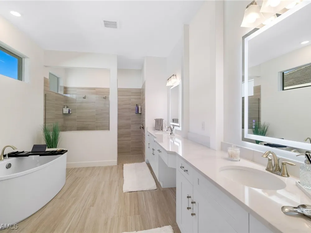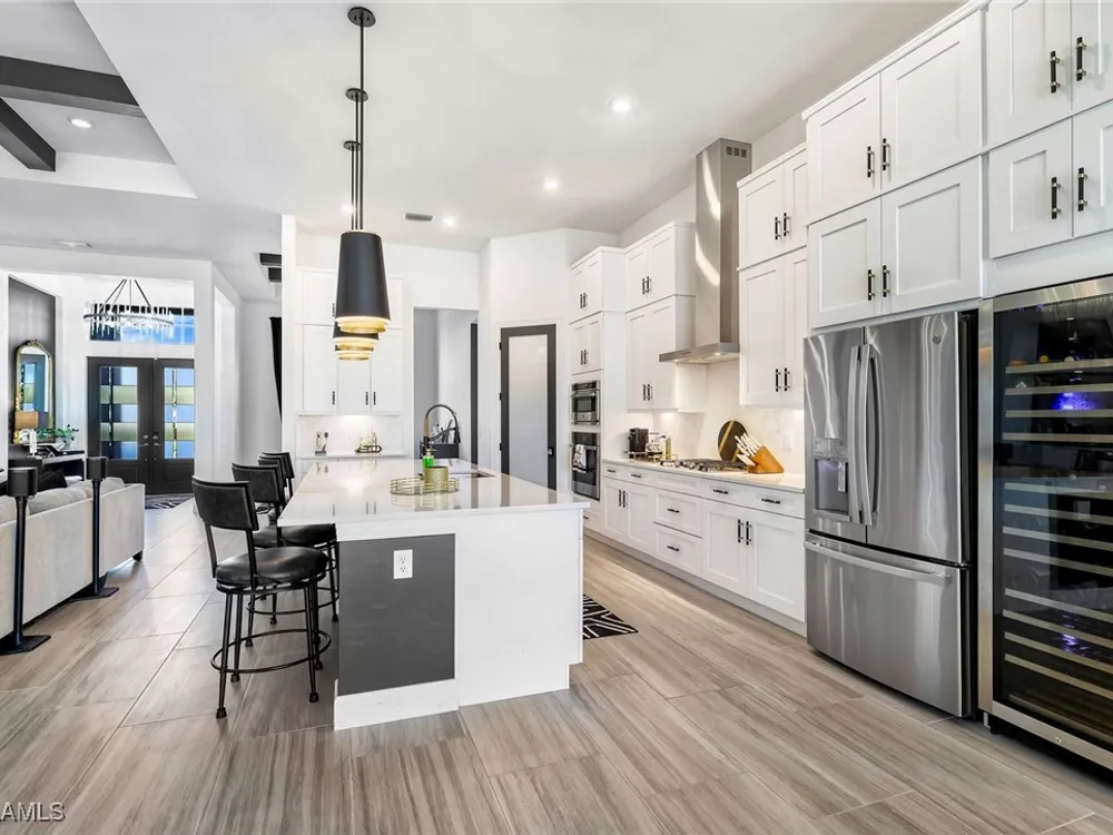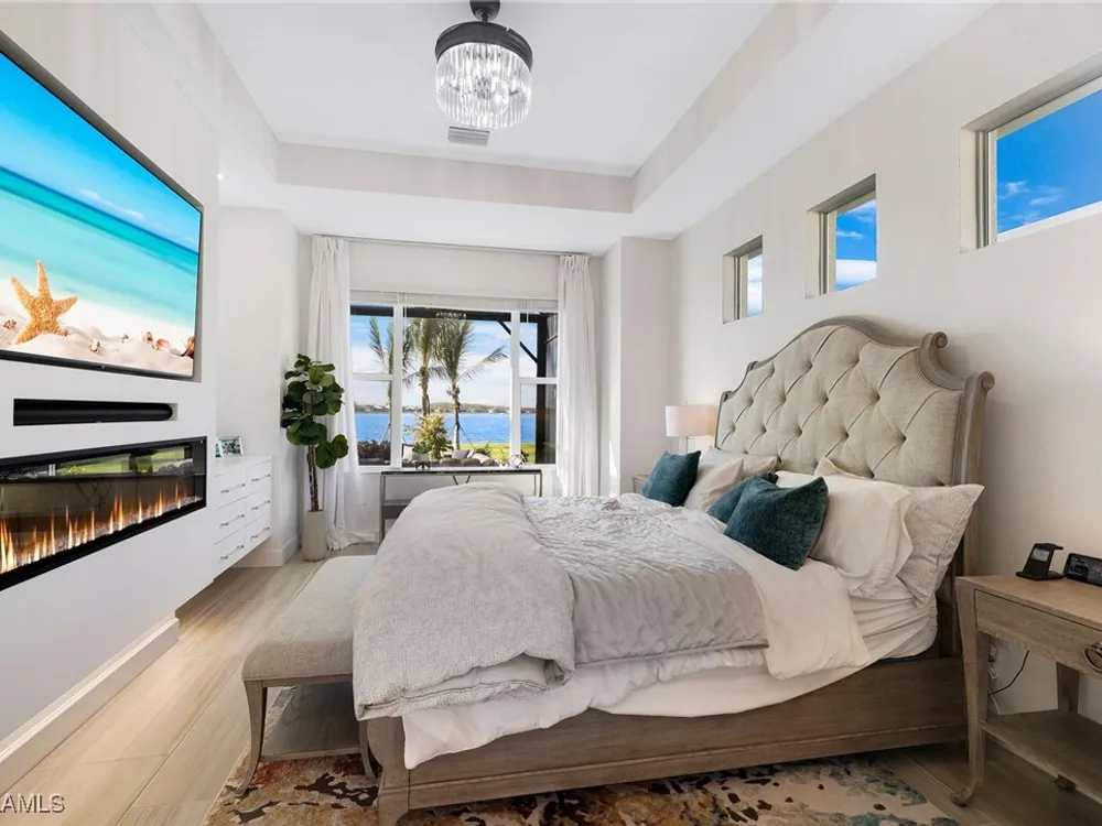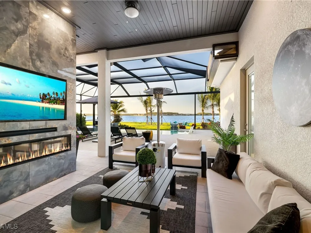 Welcome to 18917 WildBlue Blvd, the premier lakefront Estate Home in WildBlue. Constructed by the esteemed WCI Communities and offered fully furnished, this best-selling Baneberry floor plan features four bedrooms, three and a half bathrooms, and a wide-open concept layout spanning 3,178sqft under air. You will be welcomed to the property with king palms lining the driveway, accompanied by custom landscaping and magazine-worthy outdoor lighting. The grand double glass door entrance offers an open feel with direct views of the living area, pool, and lake. Tall windows and sliding glass doors line the interior, bathing your living space in natural light and offering seamless indoor/outdoor Florida living. Three guest bedrooms provide plenty of room for guests and an office, while the luxurious master retreat offers space, comfort, and privacy. Enjoy stunning views from your massive outdoor living area, including a covered lanai, outdoor kitchen, built-in entertainment center, custom wood ceiling, 60ft-wide porcelain tile pool deck, infinity-edge pool with waterfalls and a spillover spa, and a picture window screen cage. Step out your screen doors to find dual lighted paver walkways to a lakefront fire pit and seating area backdropped by coconut palms and southeastern views over the 435-acre recreational WildBlue Lake. Additional notable upgrades include impact windows and doors, built-in entertainment centers in the living room, master bedroom, and lanai, coffered ceilings, custom trim work, large porcelain plank tile floors throughout, a gourmet kitchen with shaker-style cabinetry and additional uppers, Calcatta Gold quartz countertops, built-in stainless steel appliances, a wine cooler, designer light fixtures and window treatments, an air conditioned three-car garage, and tons more. Walking distance away, WildBlue's amenity peninsula provides panoramic views of WildBlue Lake and features a resort-style pool, separate lap pool, sandy lakeside beach, fitness center with studios, locker rooms with saunas, spa, a full-service restaurant and bar, poolside bar and grill, tennis and pickleball courts, a pro shop, basketball, boat ramps to over 800 acres of freshwater lakes, boat slip rentals, kayak storage, and more. Schedule your private showing today to make this masterpiece your home!
