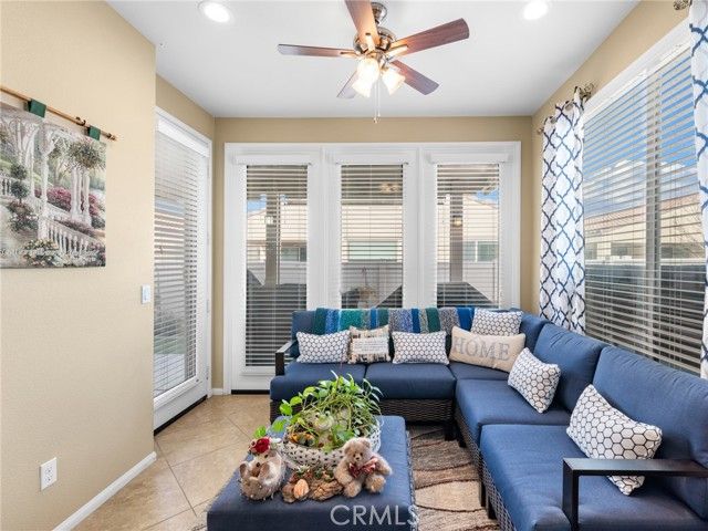 BEAUTIFULLY DESIGNED 3bd/2ba home nestled in the highly sought-after Sun City Del Webb 55+ Community! As you enter, you'll be greeted by expansive 10-FOOT CEILINGS that create an open, airy atmosphere and enhance the home's bright, inviting feel. The heart of the home is the stunning gourmet kitchen, featuring GRANITE COUNTERTOPS, KITCHENAID APPLIANCES, LARGE KITCHEN ISLAND, and thoughtful finishes - perfect for everyday living and entertaining. The spacious master suite offers newer carpet and the master bath has a large soaking tub, separate shower, dual sinks and large walk-in closet. Just off the main living area, a BEAUTIFUL SUNROOM with gorgeous windows - A serene place, a cozy reading nook, or space for sipping coffee as the sunlight streams in through the windows. The laundry room is both practical and spacious, offering a built-in sink, additional cabinetry, and storage for linens and towels. Delightful FRONT COURTYARD invites you to sit and enjoy the sunshine and visit with friends and neighbors. The COVERED BACK PATIO offers comfort for day or night, lounging area, space for grill or outdoor kitchen setup. Living here in Del Webb offers so many resort-style amenities, sparkling pools, fully equipped fitness center, tennis and pickleball courts and many social activities and clubs! You're not just buying a home - you're stepping into a wonderful lifestyle.