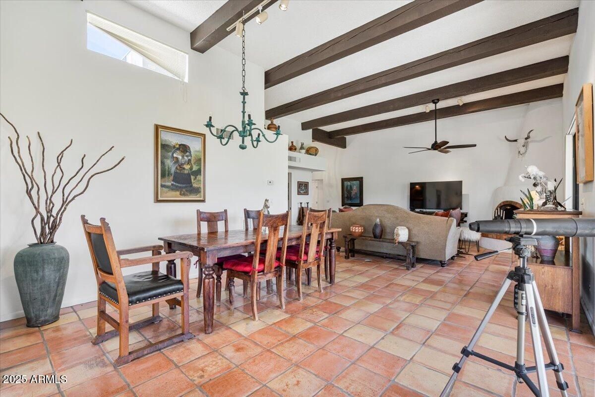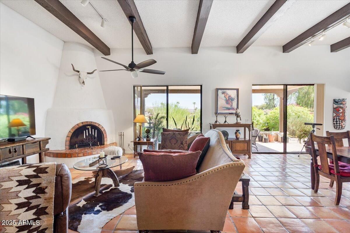 Lowest priced golf course lot home in the Award winning Rio Verde Country Club! Nestled in the beauty of the desert and just minutes from Scottsdale, Rio Verde 55+ Country Club (under 55 exceptions available) offers an inviting community where every day it feels like an escape. This premium one level golf course home sits on a huge private cul-de-sac pie-shaped lot overlooking the second green on the White Wing course and has both 4 peaks mountain range and golf course views spanning 180 degrees. Inside this 3-bedroom (one is designed currently as an office with double doors) and 2 full bathrooms you will find soaring 12-foot ceilings with rich wood beams in the great room, scenic views from every window and Saltillo tile giving the right amount of Southwest flare. Updates include new plank flooring in all bedrooms/office. Inviting kitchen that makes meal prep a delight with updated stainless-steel appliances and an induction stove. New modern light and bath fixtures, ceiling fans and window screens. A touch of character with a few stained-glass windows thoughtfully placed throughout the home. Home is solid block construction with fresh paint interior and exterior and the roof has been recoated/sealed in 2024. For covered parking you have a 2 ½ car garage yielding plenty of storage room. The backyard has a wraparound patio for entertaining guests with views in every direction complimented with a bounty of lush landscaping including mature citrus trees, privacy shrubs/plants all situated on a 17,700+ sf golf course lot. Ownership in Rio Verde means enjoying time with family and friends, surrounded by mountain vistas, open spaces, and golf course views. The community offers a blend of privacy, serenity, and access to top-tier amenities while enjoying the peace of the desert. The Rio Verde country club, with its two 18-hole golf courses, fine dining and community amenities, will cure any boredom. Book a tour today and view this beautiful property and experience what this home and community has to offer. Brian Ramsey / Designated Broker/Agent with Equity Star Realty.