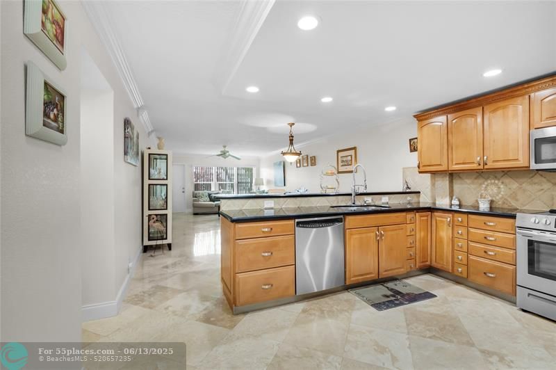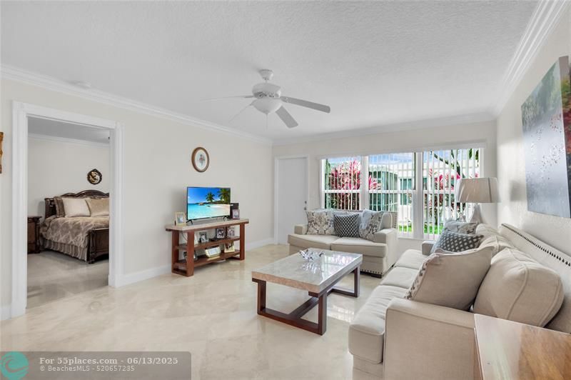 Stunning, fully renovated 2/2 villa in a premier 55+ community! Open kitchen boasts stainless steel appliances, and the entire home is finished with luxurious marble and porcelain floors. Hurricane-ready with all impact windows and doors. Enjoy resort-style amenities including a clubhouse, pool, spa, fitness center, tennis & pickleball. Perfect blend of comfort, style, and active living! Town Villas association requires 20% Down payment. Able to lease after 2 years. Pet Friendly! Laundry room in unit!
