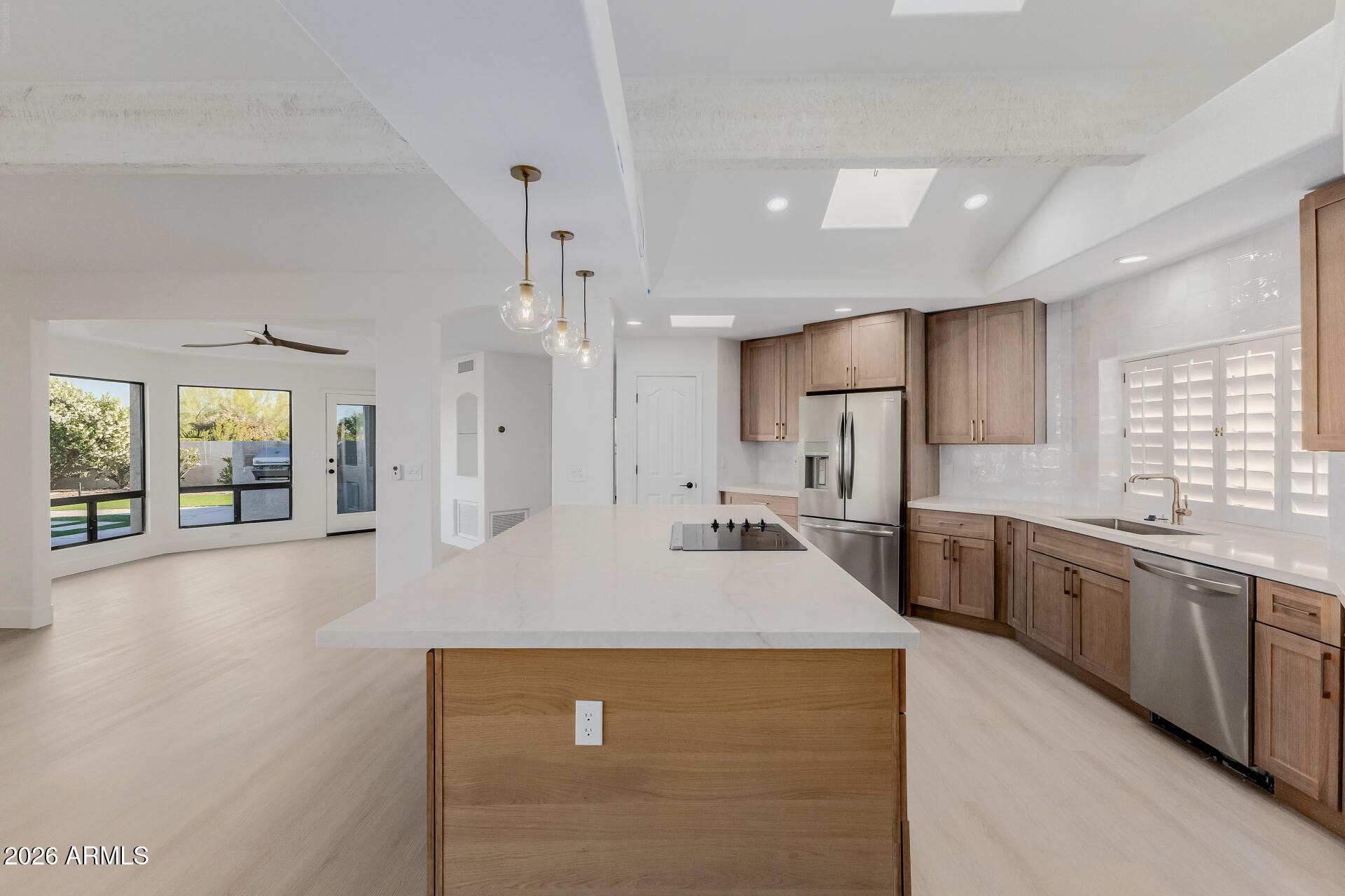 - Water Softener Owned, Refrigerator, Built-in Microwave, Dishwasher, Disposal, Electric Cooktop, Water Purifier