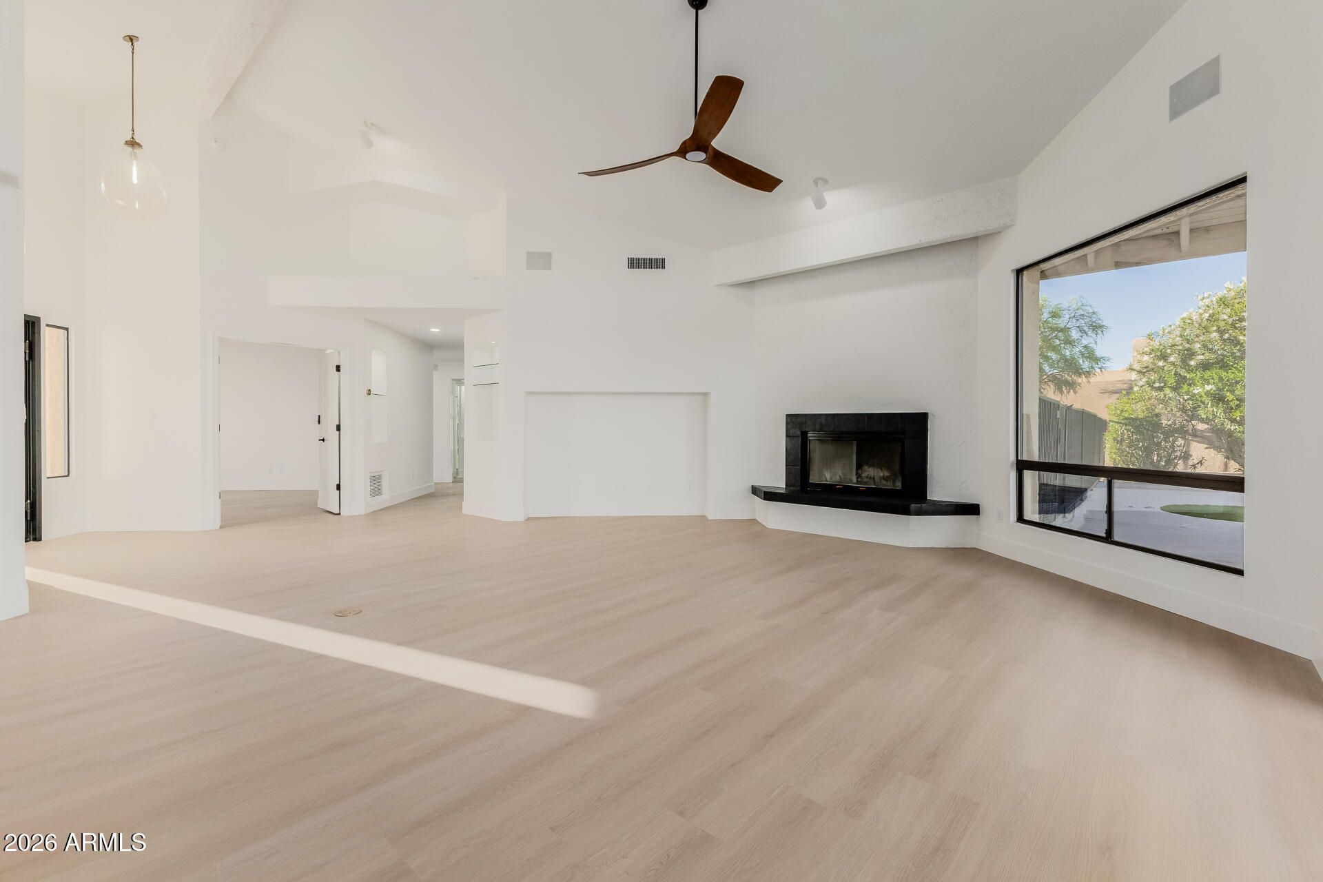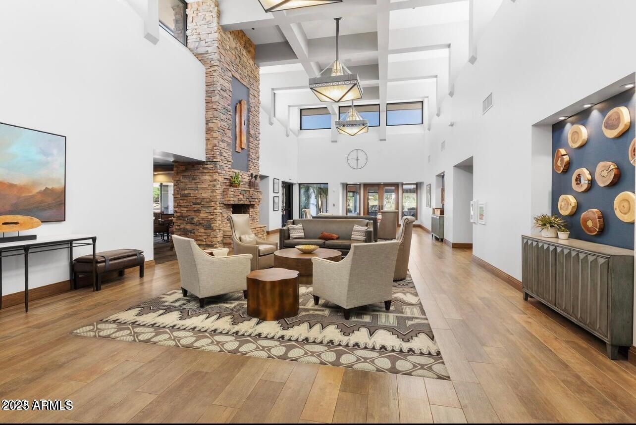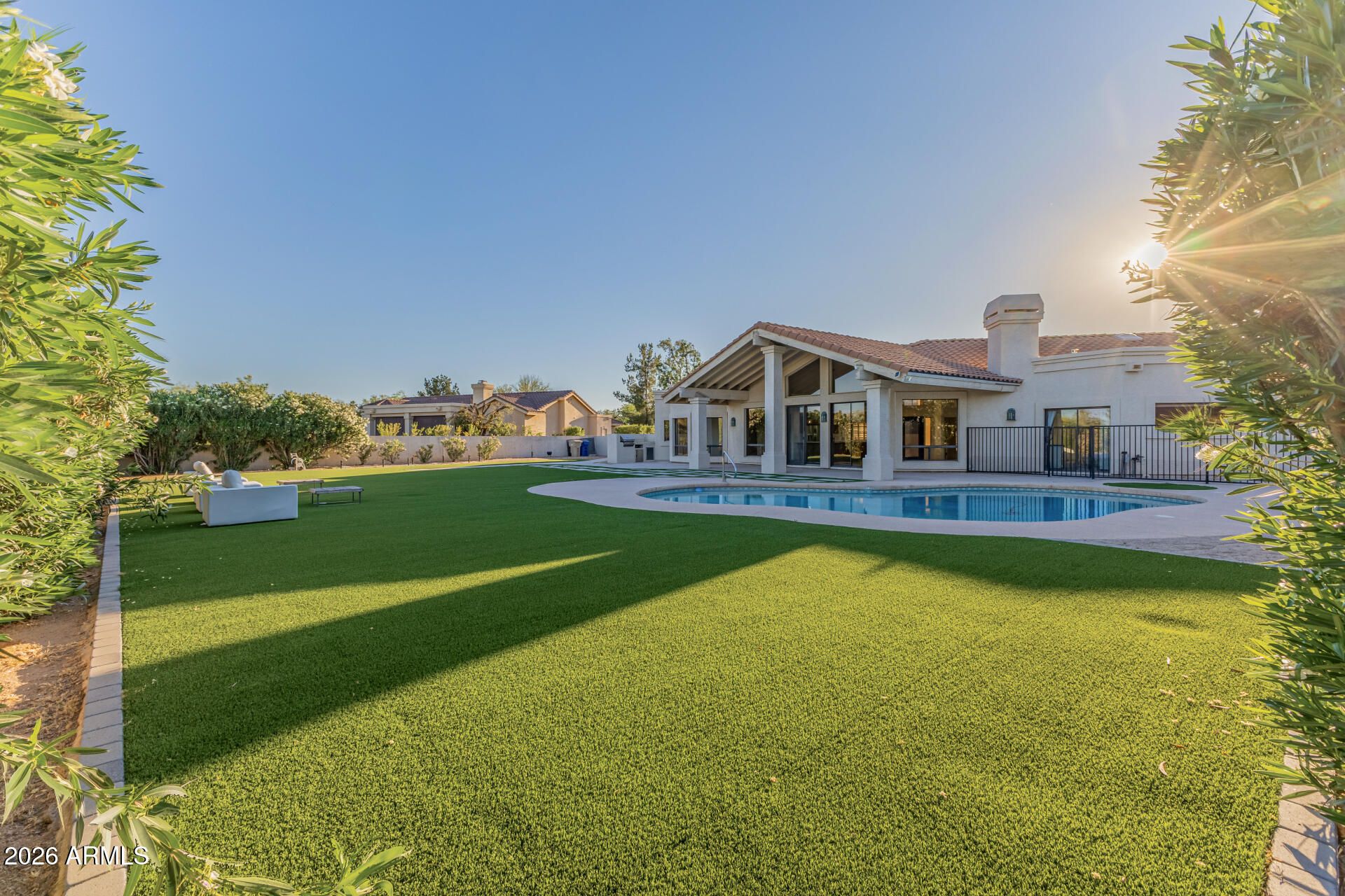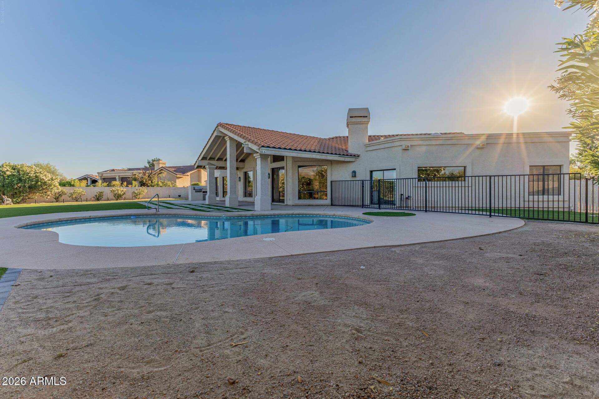 Beautifully updated home in desirable Rio Verde Golf Community! This stunning property on an expansive, privately fenced lot features resort-style living with a saltwater pool, pet-friendly turf, travertine pavers, and spacious covered patio. A gated front courtyard with turf leads to a bright, open-concept interior showcasing vaulted ceilings, wood beam accents, and panoramic backyard and mountain views. Recently enhanced with a full interior remodel, the home now features brand-new wood-look flooring throughout, all-new interior paint, and beautifully upgraded kitchen and baths with solid white oak cabinetry, sleek quartz countertops, and a stainless steel appliance package. Offering 4 spacious bedrooms, 2.5 baths, and a versatile split floor plan, perfect for visitors. Additional highli highlights include a 2.5-car garage, modern finishes, and impressive indoor-outdoor flow. A true gem offering comfort, style, and privacy in a peaceful golf course setting.