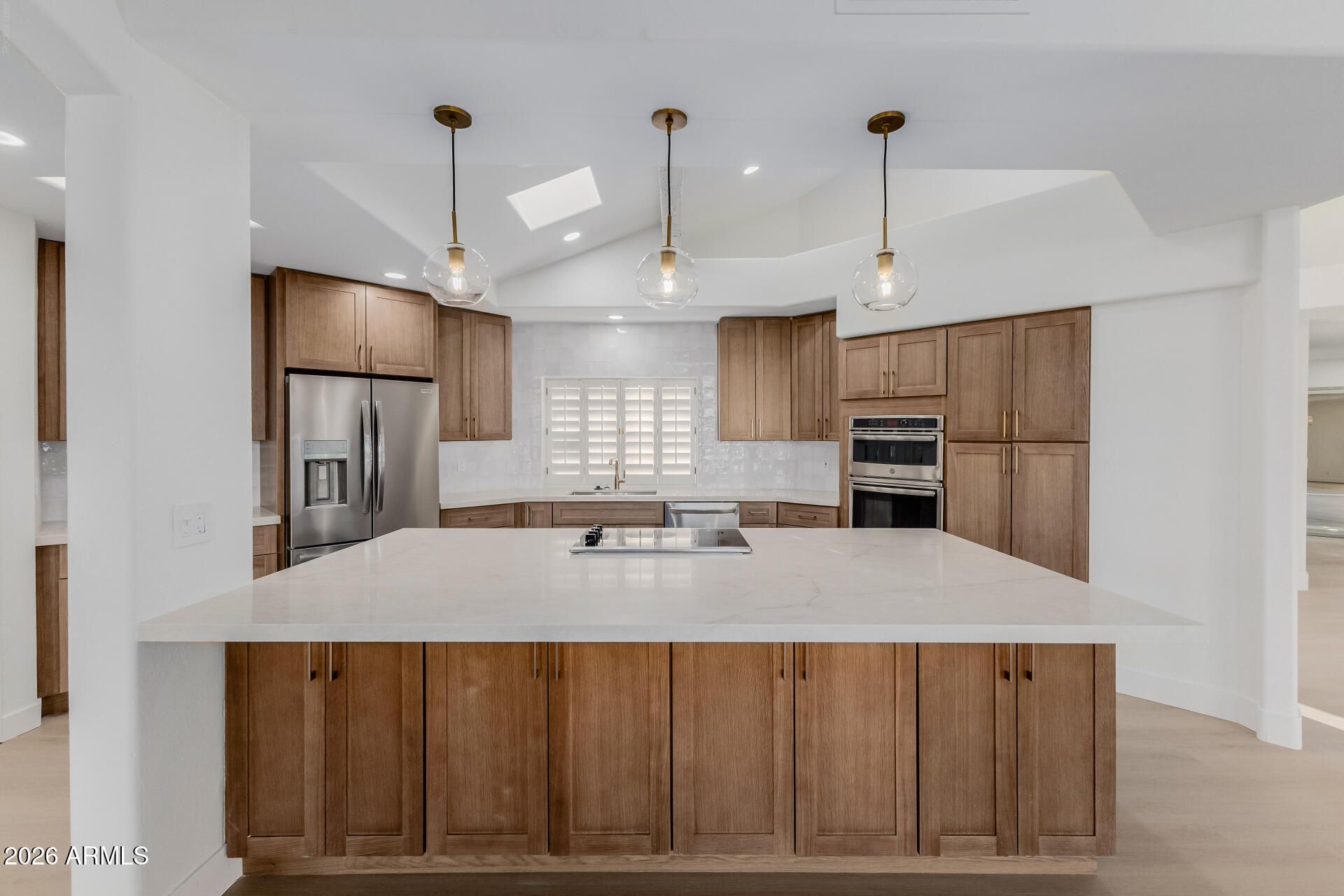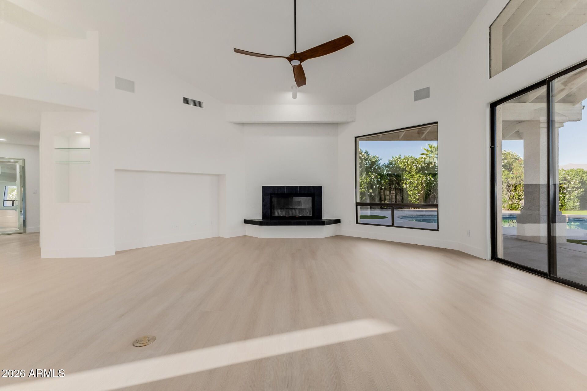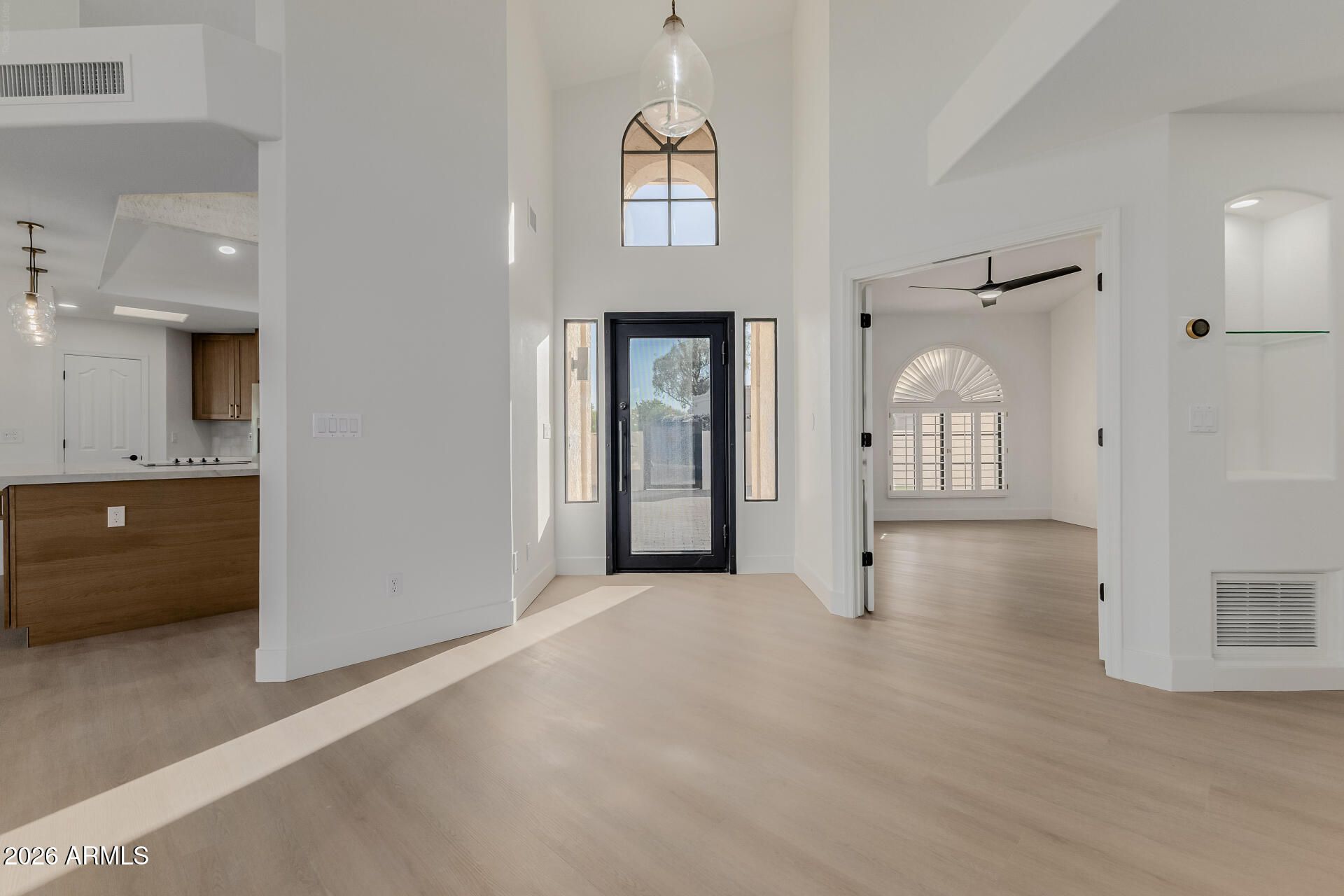 Beautifully updated home in desirable Rio Verde Golf Community! This stunning property on an expansive, privately fenced lot features resort-style living with a saltwater pool, pet-friendly turf, travertine pavers, and spacious covered patio. A gated front courtyard with turf leads to a bright, open-concept interior showcasing vaulted ceilings, wood beam accents, and panoramic backyard and mountain views. Recently enhanced with a full interior remodel, the home now features brand-new wood-look flooring throughout, all-new interior paint, and beautifully upgraded kitchen and baths with solid white oak cabinetry, sleek quartz countertops, and a stainless steel appliance package. Offering 4 spacious bedrooms, 2.5 baths, and a versatile split floor plan, perfect for visitors. Additional highli highlights include a 2.5-car garage, modern finishes, and impressive indoor-outdoor flow. A true gem offering comfort, style, and privacy in a peaceful golf course setting.