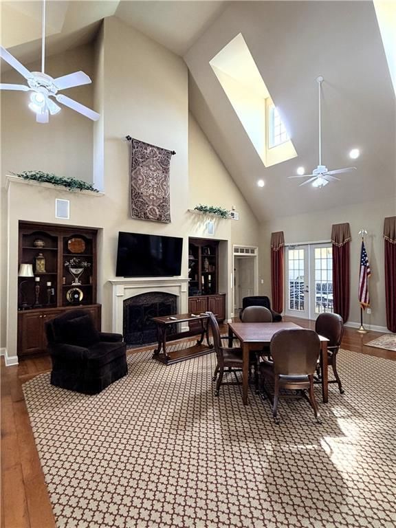- Bookcases, Double Vanity, Entrance Foyer, Two Story Foyer, Recessed Lighting, Tray Ceiling(s), Vaulted Ceiling(s), Walk-In Closet(s), Skylights, Window Treatments, Attic, Sunroom