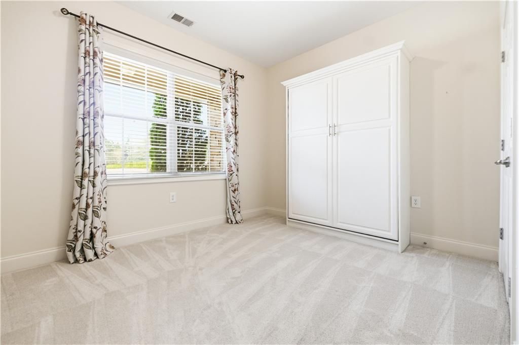Welcome to The Orchards of Brannon Oak Farm, a stunning active adult, 55+ community with exceptional amenities. This 3 bedroom, 3 bathroom, 2,324 sq ft townhouse offers a thoughtfully designed floor plan with vaulted ceilings, skylights, and abundant natural light. The open-concept living space features a welcoming living room with fireplace and built-in bookshelf, seamlessly flowing into a dedicated dining area. The kitchen completes the open living space with a large island, stone countertops, wood cabinetry, and a breakfast table area. The master suite on the main level includes a bedroom with tray ceiling, walk-in closet, and a spacious bathroom with soaking tub, dual vanities and separate shower. The main floor also includes a versatile guest bedroom equipped with a Murphy bed, a full guest bathroom, and a well-appointed laundry room with built-in cabinetry and a sink. Enjoy year-round relaxation in the bright sunroom or the charming covered front porch. Upstairs, a spacious loft provides flexible living space ideal for a home office, media room, or additional living room area, along with a private bedroom, walk-in closet, and large full bathroom. Both HVAC units were replaced in August 2024, providing added efficiency and peace of mind. Residents enjoy a spacious clubhouse with a fitness center, grand room with fireplace, catering kitchen, card and game rooms, and a library. Outdoor features include a pool, covered veranda, grilling area, fire pit, event lawn, and a scenic pond. Enjoy a busy and vibrant social calendar with organized activities like brunches, yoga, card games, and more. The location can’t be beat, just minutes from 400, Halcyon and The Collection!