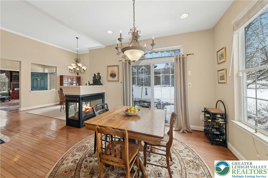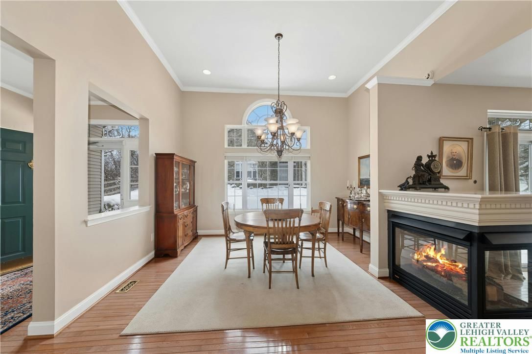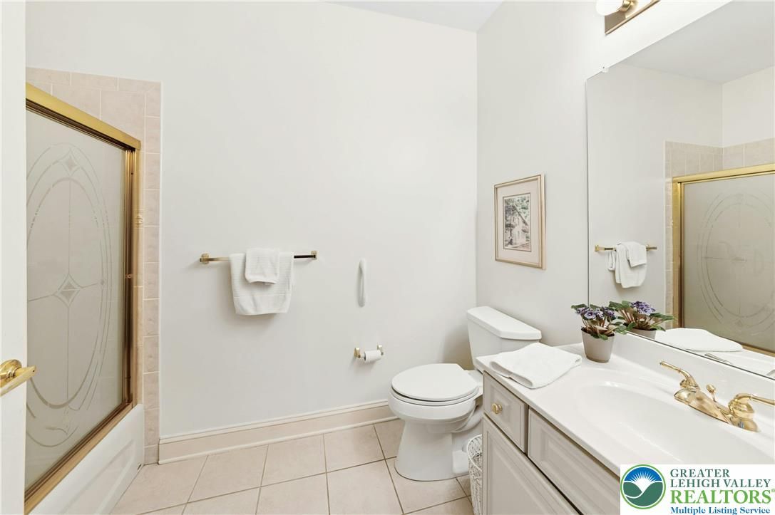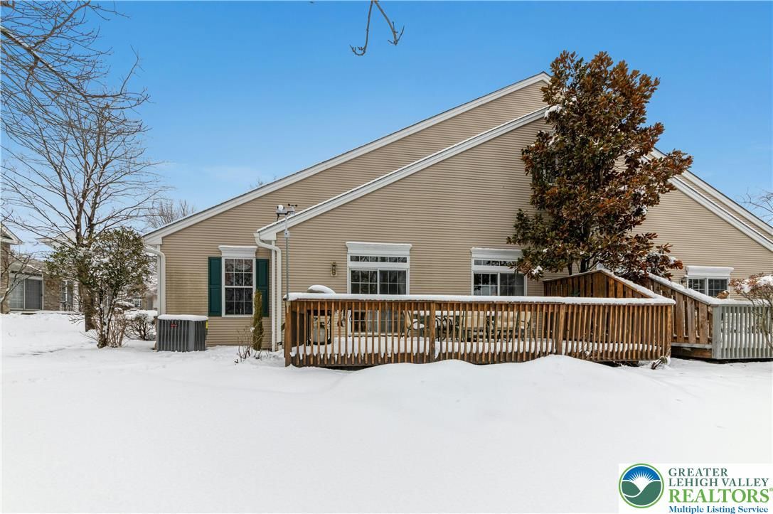 South facing and bathed in natural light, this Fern model at Four Seasons at Saucon Valley offers an outstanding opportunity to downsize in style with one story living in an active 55+ neighborhood. This well-maintained home offers beautiful views and a quiet corner location. The open floor plan features hardwood floors, crown moldings, and sun-filled rooms. Spacious living and multiple dining areas are complemented by 12’ ceilings and a three-sided gas fireplace. A gleaming open kitchen offers space to socialize with guests and the convenience of dual ovens, a large pantry, and island with decorative venetian plaster. Two walk-in closets, dual vanities, and deck access are found in the main level owner’s suite. A second airy bedroom is on this floor, along with flexible office/bedroom space. Bonus space in the upstairs loft with vaulted ceiling. The finished lower level with a gas fireplace boasts a family room and wet bar for entertaining, as well as craft room, half bath, guest room, and lots of storage. A private deck located on a ridge of trees offers opportunities for morning coffee with the sounds of nature as background. Exterior home and grounds maintenance are a thing of the past, allowing for enjoyment of the community pool, walking paths, tennis courts, and clubhouse. A two-car garage and public water and sewer are noteworthy amenities. This central location is close to stores, restaurants, golf, commuter routes, and hospitals. Listing agent is related to seller.