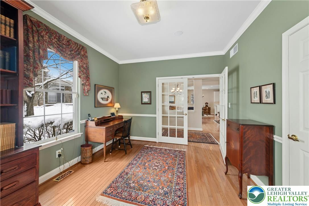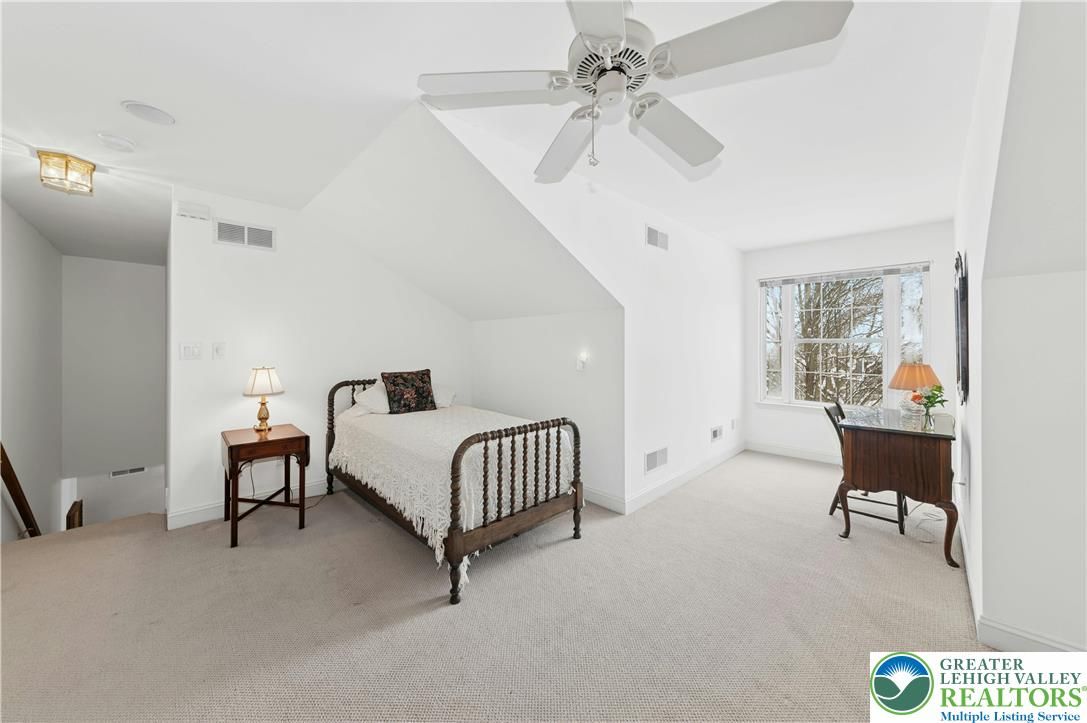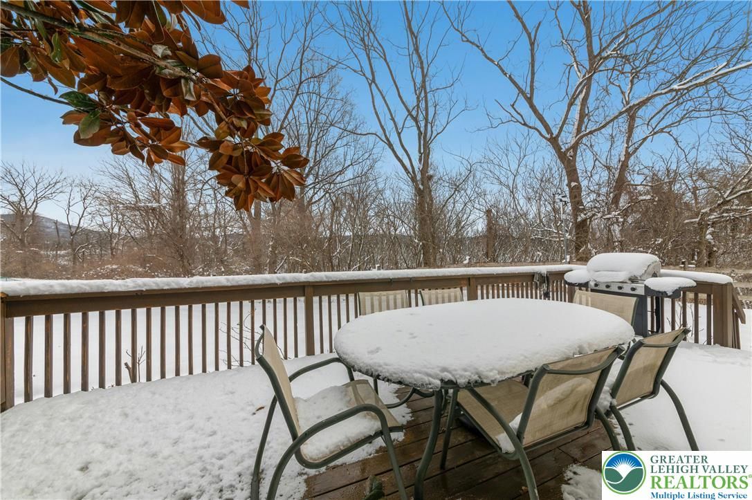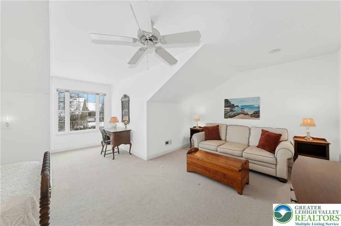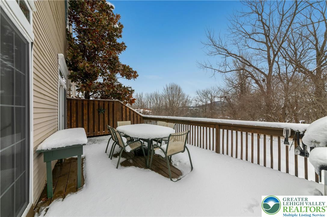South facing and bathed in natural light, this Fern model at Four Seasons at Saucon Valley offers an outstanding opportunity to downsize in style with one story living in an active 55+ neighborhood. This well-maintained home offers beautiful views and a quiet corner location. The open floor plan features hardwood floors, crown moldings, and sun-filled rooms. Spacious living and multiple dining areas are complemented by 12’ ceilings and a three-sided gas fireplace. A gleaming open kitchen offers space to socialize with guests and the convenience of dual ovens, a large pantry, and island with decorative venetian plaster. Two walk-in closets, dual vanities, and deck access are found in the main level owner’s suite. A second airy bedroom is on this floor, along with flexible office/bedroom space. Bonus space in the upstairs loft with vaulted ceiling. The finished lower level with a gas fireplace boasts a family room and wet bar for entertaining, as well as craft room, half bath, guest room, and lots of storage. A private deck located on a ridge of trees offers opportunities for morning coffee with the sounds of nature as background. Exterior home and grounds maintenance are a thing of the past, allowing for enjoyment of the community pool, walking paths, tennis courts, and clubhouse. A two-car garage and public water and sewer are noteworthy amenities. This central location is close to stores, restaurants, golf, commuter routes, and hospitals. Listing agent is related to seller.