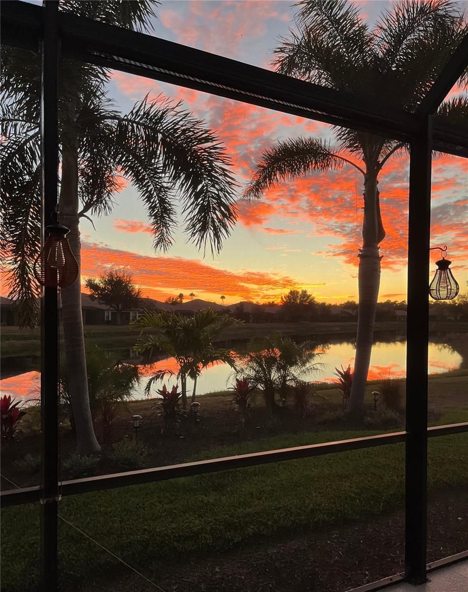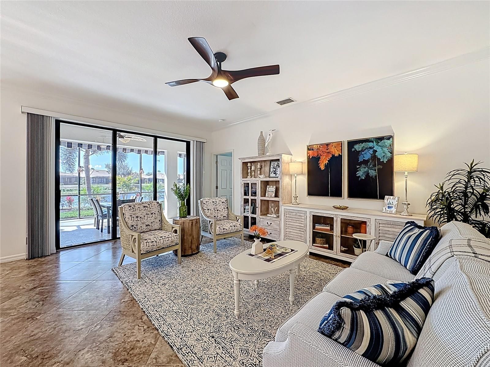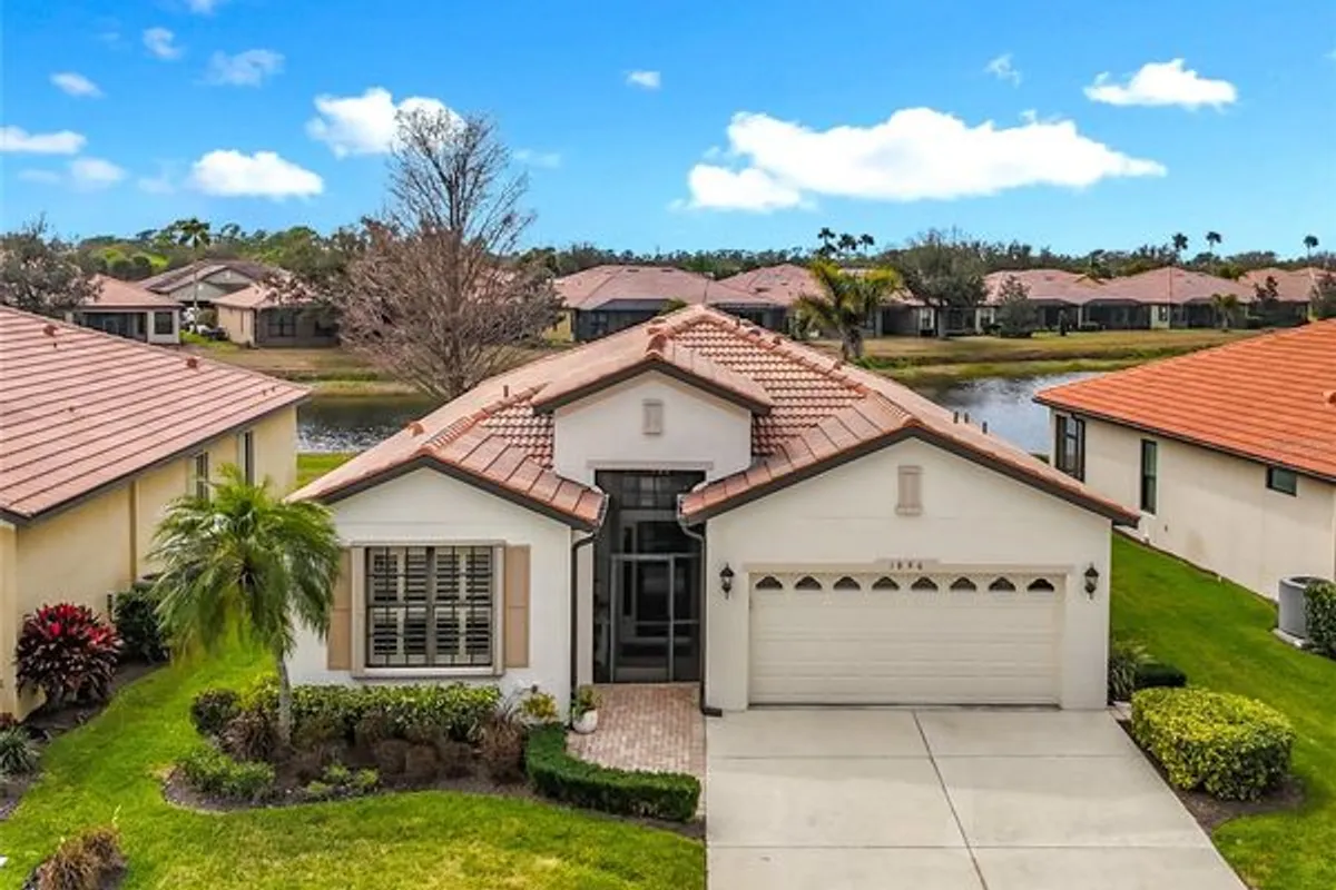 POND VIEWS IN PARADISE! Welcome to the premier gated, 55+ lifestyle community of Venetian Falls in picturesque Venice, FL where refined design and tranquil waterfront living converge. This impeccably renovated single-family home offers 3 bedrooms, 2 full baths, a 2-car garage, and 2,069 square feet of refined living space, all perfectly positioned to capture breathtaking LONG WATER VIEWS and unforgettable sunsets. A screened front entry with heavy-duty storm door sets a welcoming tone, inviting natural light into the home while maintaining comfort and peace of mind. Inside, the highly coveted Milan floorplan unfolds with two expansive and flexible living areas, thoughtfully designed for entertaining or relaxed everyday living. CROWN MOLDING, volume ceilings, and abundant light create an airy, upscale ambiance throughout the main living spaces. At the heart of the home, the designer kitchen has been masterfully remodeled to reflect both beauty and function. CAMBRIA QUARTZ COUNTERTOPS, a SHIPLAP-WRAPPED CENTER ISLAND, light and bright cabinetry, tile backsplash, upgraded appliance package with drop-in range, and a generous walk-in pantry combine to create a culinary space that is as stylish as it is practical. Custom shiplap detailing continues into the sunlit breakfast nook, where BAY WINDOWS frame serene water views. High-end DESIGNER LIGHT FIXTURES and PLANTATION SHUTTERS throughout further elevate the home’s timeless elegance and represent a significant investment in quality. The formal dining room exudes character with custom built-in shelving and an electric FIREPLACE INSERT, offering a refined setting for intimate gatherings. The luxurious primary suite serves as a private sanctuary, complete with a tray ceiling, newer carpeting, dual closets including a spacious walk-in, and direct access to the lanai through sliding glass doors. The REMODELED PRIMARY BATHROOM is beautifully appointed with a shiplap accent wall, upgraded double vanity with quartz counters, dual framed mirrors and a large walk-in shower, creating a spa-inspired retreat. Designed with privacy in mind, the split-bedroom layout ensures comfort for guests. Bedroom 3 features a built in MURPHY BED AND CLOSET, allowing effortless transformation into a den or home office. Outdoor living is nothing short of exceptional. The EXTENDED SCREENED LANAI offers sweeping pond views and seamless indoor-outdoor flow through three sets of sliding glass doors. DUAL RETRACTABLE AWNINGS provide shade and comfort, while custom landscaping beyond the lanai enhances the lush Florida setting. With coveted Southwest rear exposure, the home delivers spectacular sunsets each evening - an ever-changing masterpiece over the water. Additional highlights include FULL HURRICANE SHUTTERS, tile roof, 'Flood Zone X' designation for added peace of mind, overhead garage storage, and a well-appointed laundry room with added cabinetry and a utility sink for convenience and functionality. Residents of Venetian Falls enjoy a resort-style experience with a HEATED POOL, resistance pool, spa, state-of-the-art fitness center, bocce ball courts, putting green, card room, and a full-time activities director curating a vibrant social calendar - all complemented by reasonable HOA fees and no CDD fee! Ideally situated just minutes from Wellen Park and Venice Island, you are moments from pristine Gulf beaches, fine dining, boutique shopping, and cultural attractions. This is elevated Florida living at its finest!