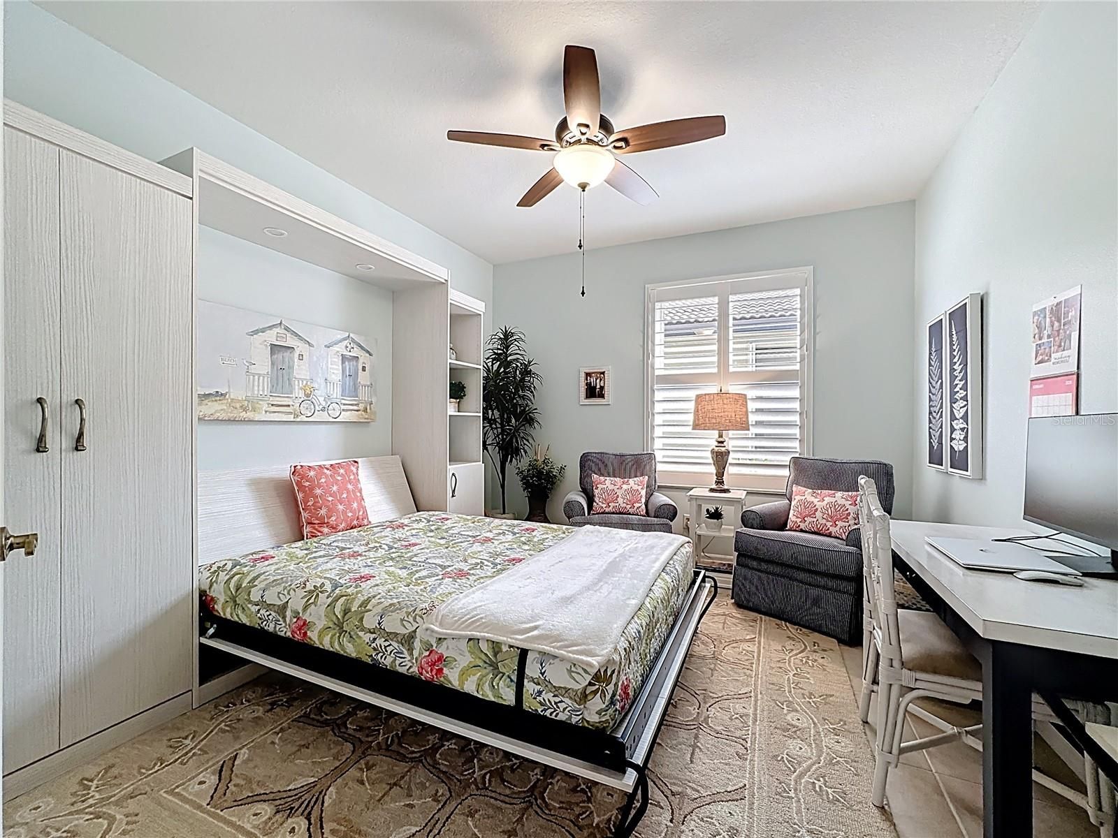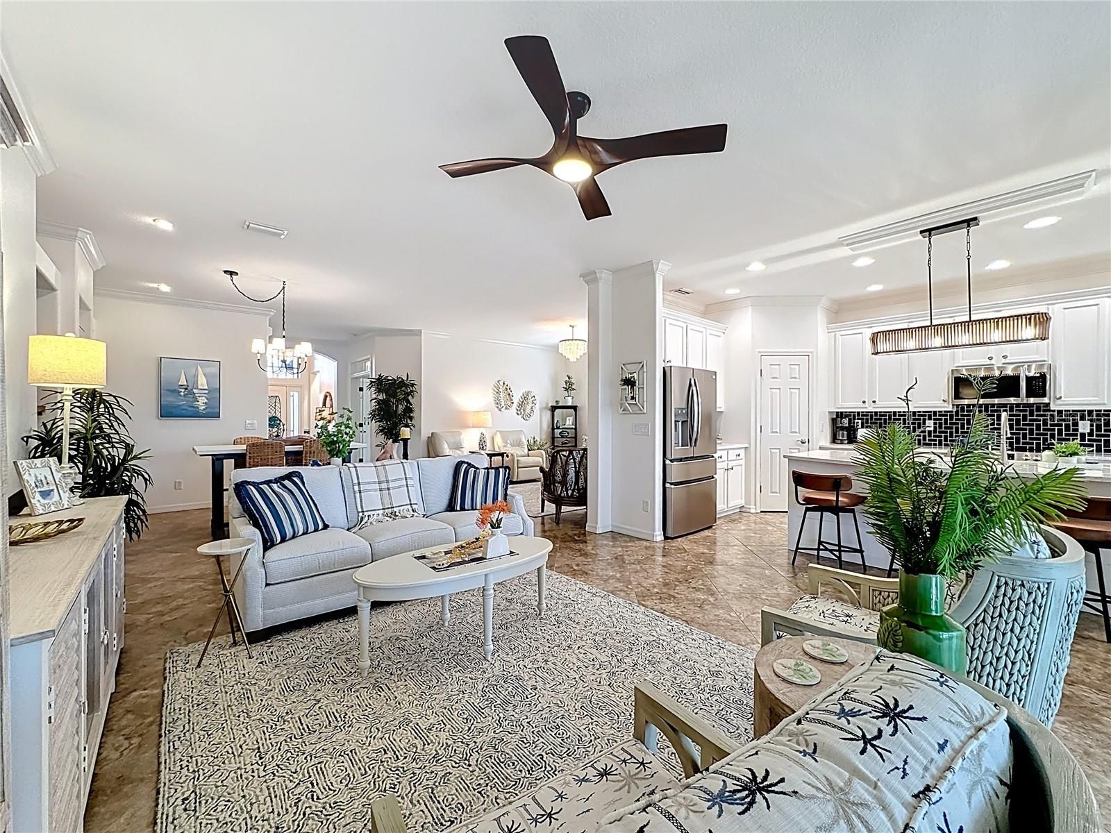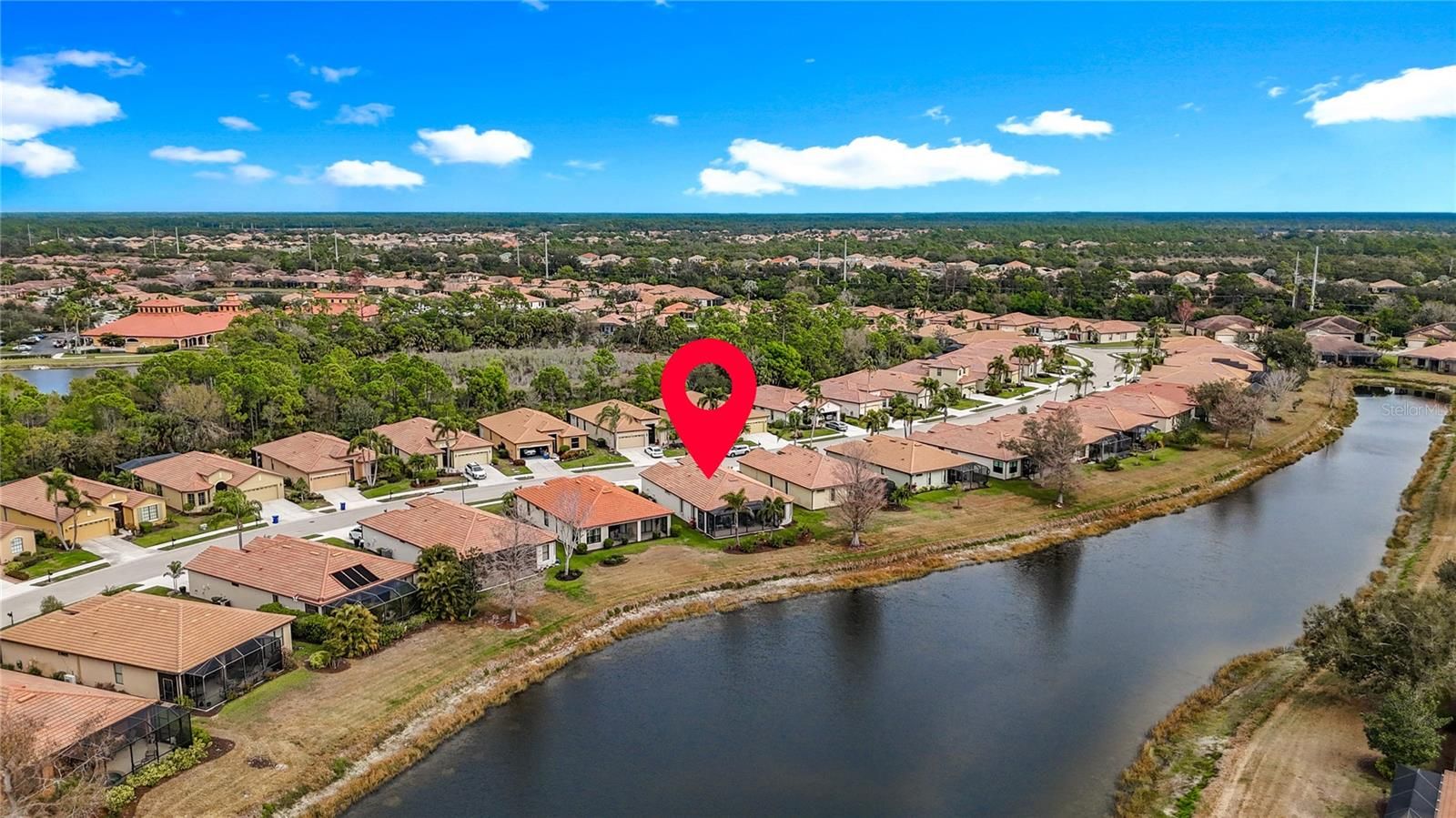 POND VIEWS IN PARADISE! Welcome to the premier gated, 55+ lifestyle community of Venetian Falls in picturesque Venice, FL where refined design and tranquil waterfront living converge. This impeccably renovated single-family home offers 3 bedrooms, 2 full baths, a 2-car garage, and 2,069 square feet of refined living space, all perfectly positioned to capture breathtaking LONG WATER VIEWS and unforgettable sunsets. A screened front entry with heavy-duty storm door sets a welcoming tone, inviting natural light into the home while maintaining comfort and peace of mind. Inside, the highly coveted Milan floorplan unfolds with two expansive and flexible living areas, thoughtfully designed for entertaining or relaxed everyday living. CROWN MOLDING, volume ceilings, and abundant light create an airy, upscale ambiance throughout the main living spaces. At the heart of the home, the designer kitchen has been masterfully remodeled to reflect both beauty and function. CAMBRIA QUARTZ COUNTERTOPS, a SHIPLAP-WRAPPED CENTER ISLAND, light and bright cabinetry, tile backsplash, upgraded appliance package with drop-in range, and a generous walk-in pantry combine to create a culinary space that is as stylish as it is practical. Custom shiplap detailing continues into the sunlit breakfast nook, where BAY WINDOWS frame serene water views. High-end DESIGNER LIGHT FIXTURES and PLANTATION SHUTTERS throughout further elevate the home’s timeless elegance and represent a significant investment in quality. The formal dining room exudes character with custom built-in shelving and an electric FIREPLACE INSERT, offering a refined setting for intimate gatherings. The luxurious primary suite serves as a private sanctuary, complete with a tray ceiling, newer carpeting, dual closets including a spacious walk-in, and direct access to the lanai through sliding glass doors. The REMODELED PRIMARY BATHROOM is beautifully appointed with a shiplap accent wall, upgraded double vanity with quartz counters, dual framed mirrors and a large walk-in shower, creating a spa-inspired retreat. Designed with privacy in mind, the split-bedroom layout ensures comfort for guests. Bedroom 3 features a built in MURPHY BED AND CLOSET, allowing effortless transformation into a den or home office. Outdoor living is nothing short of exceptional. The EXTENDED SCREENED LANAI offers sweeping pond views and seamless indoor-outdoor flow through three sets of sliding glass doors. DUAL RETRACTABLE AWNINGS provide shade and comfort, while custom landscaping beyond the lanai enhances the lush Florida setting. With coveted Southwest rear exposure, the home delivers spectacular sunsets each evening - an ever-changing masterpiece over the water. Additional highlights include FULL HURRICANE SHUTTERS, tile roof, 'Flood Zone X' designation for added peace of mind, overhead garage storage, and a well-appointed laundry room with added cabinetry and a utility sink for convenience and functionality. Residents of Venetian Falls enjoy a resort-style experience with a HEATED POOL, resistance pool, spa, state-of-the-art fitness center, bocce ball courts, putting green, card room, and a full-time activities director curating a vibrant social calendar - all complemented by reasonable HOA fees and no CDD fee! Ideally situated just minutes from Wellen Park and Venice Island, you are moments from pristine Gulf beaches, fine dining, boutique shopping, and cultural attractions. This is elevated Florida living at its finest!