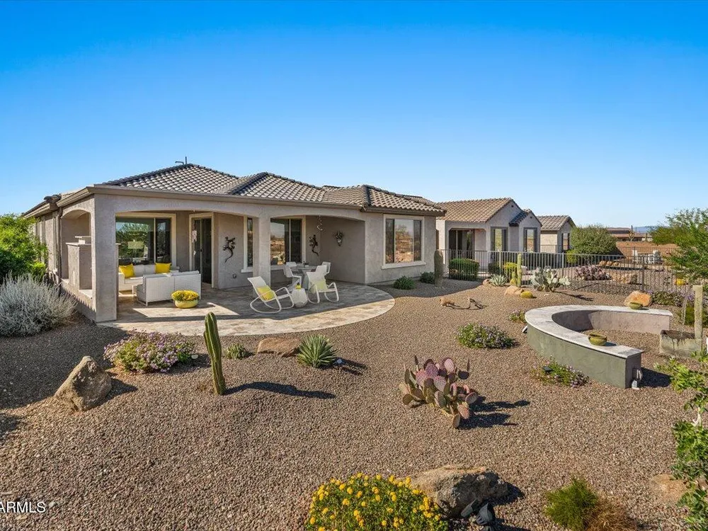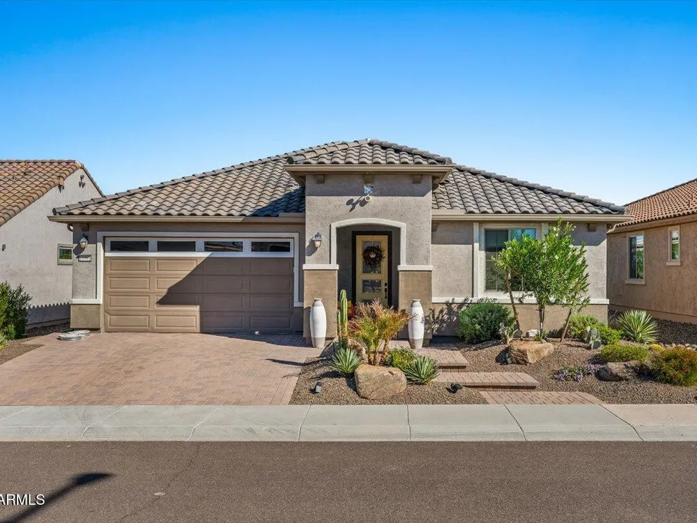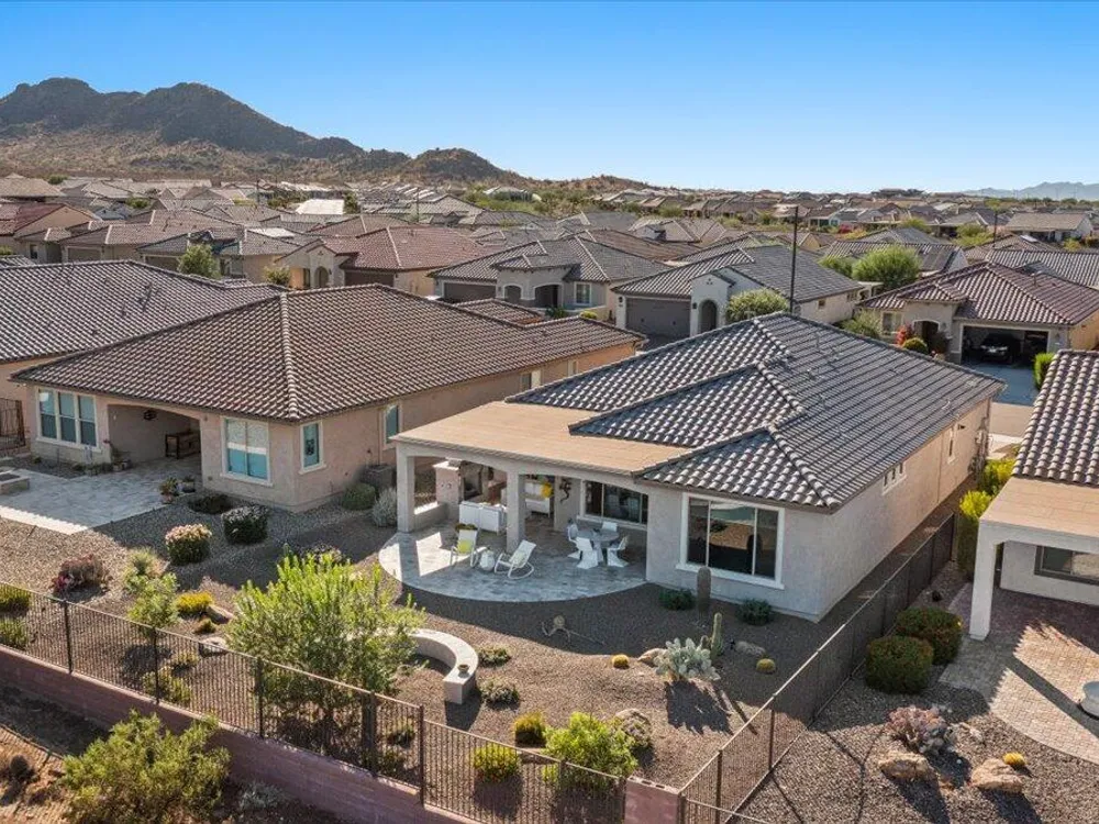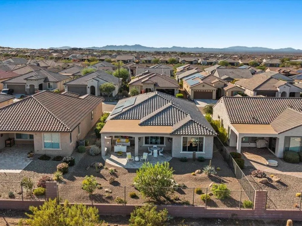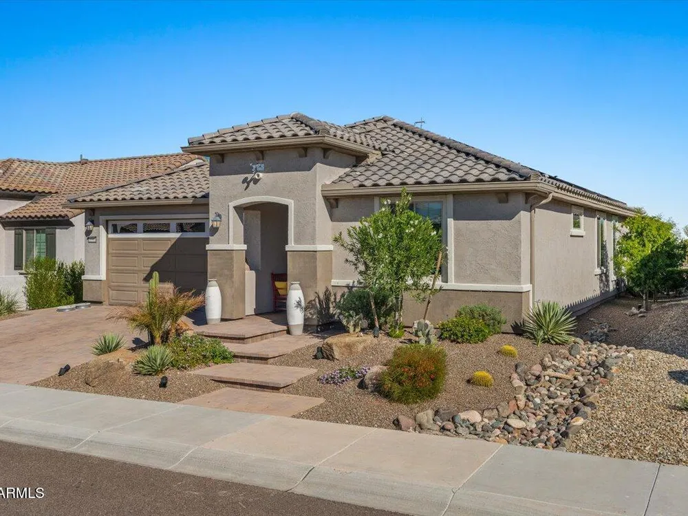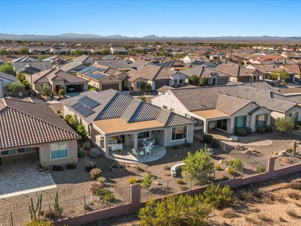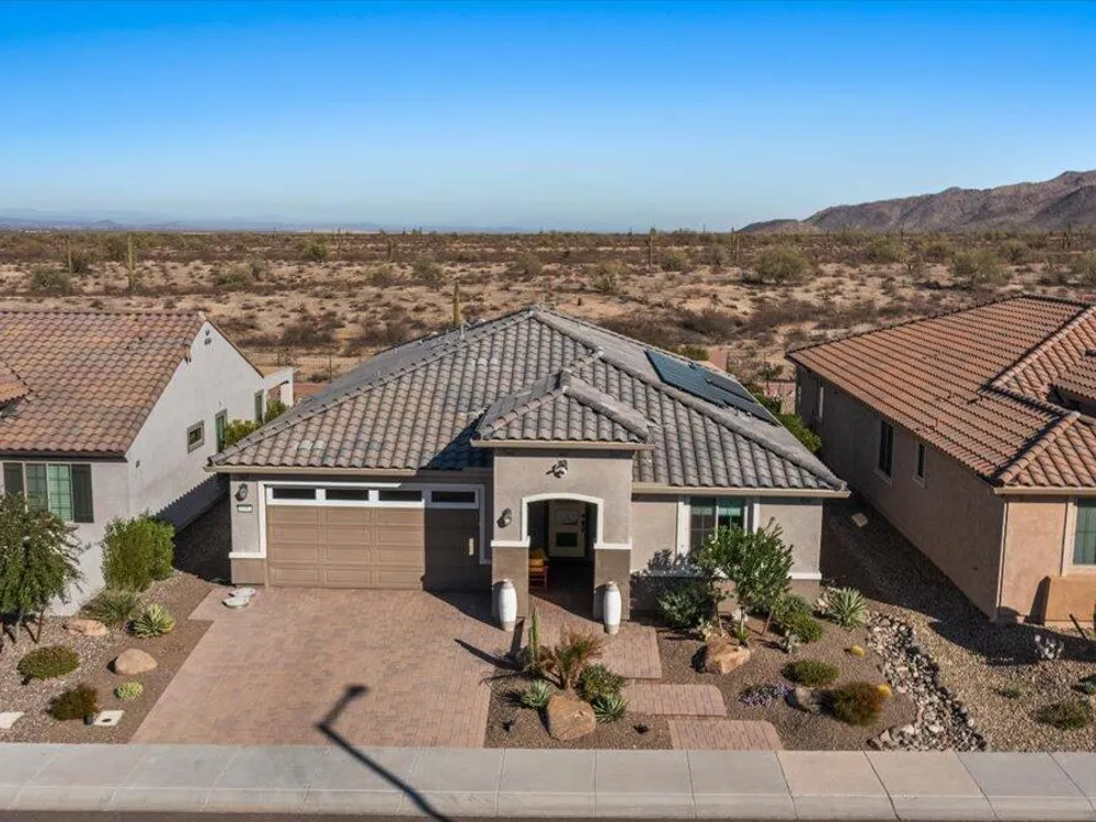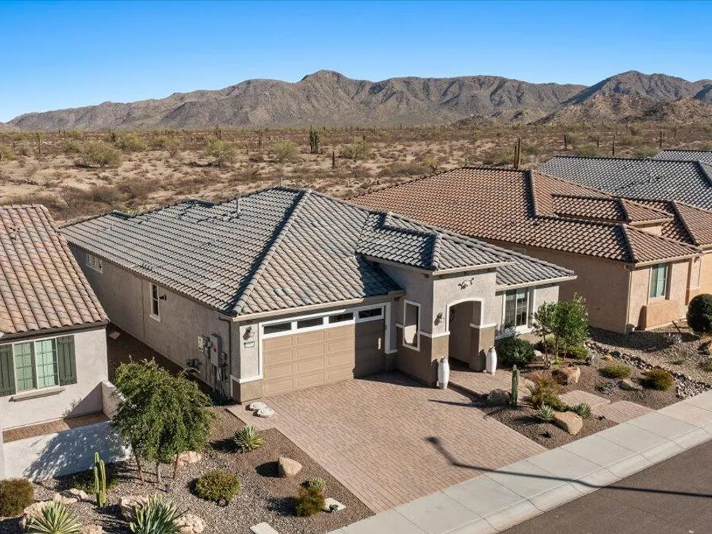If you've been considering a 55+ active adult community in Arizona, and Sun City Festival is on your list for all it's fantastic amenities, then you will want to see this gorgeous and upgraded 3 bed 2 bath home that has some of the best views in the community as it backs to the White Mountains preserve looking east. Stylish and modern upgrades to the large chef's kitchen, flooring, and much more make this is a home that is truly turn-key. Whether as a second home or your year-round residence, this home has the style and finishes you deserve. Also, the leased solar helps lower your electric bills substantially. Imagine yourself sitting on the patio and taking in the beautiful open land and mountain views backed by that gorgeous Arizona sky. Your new home awaits!