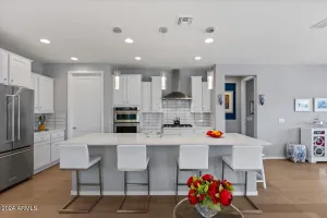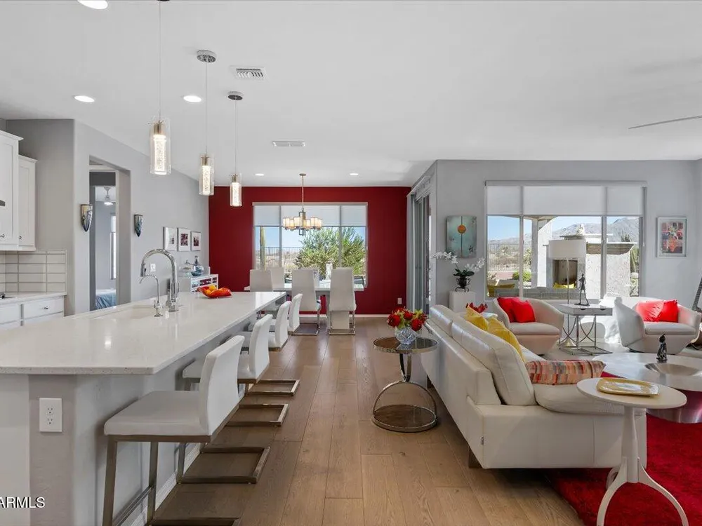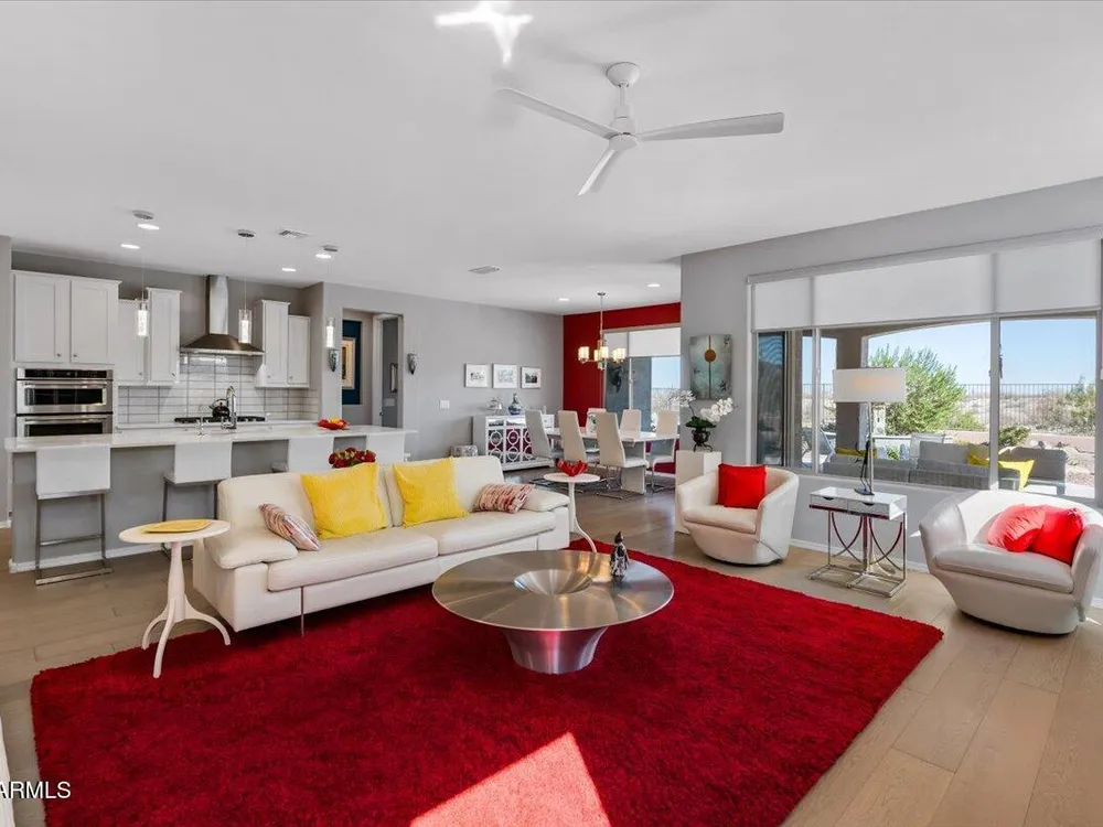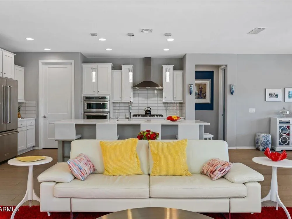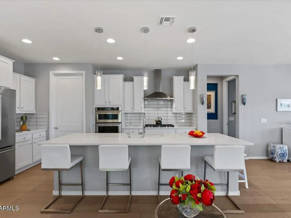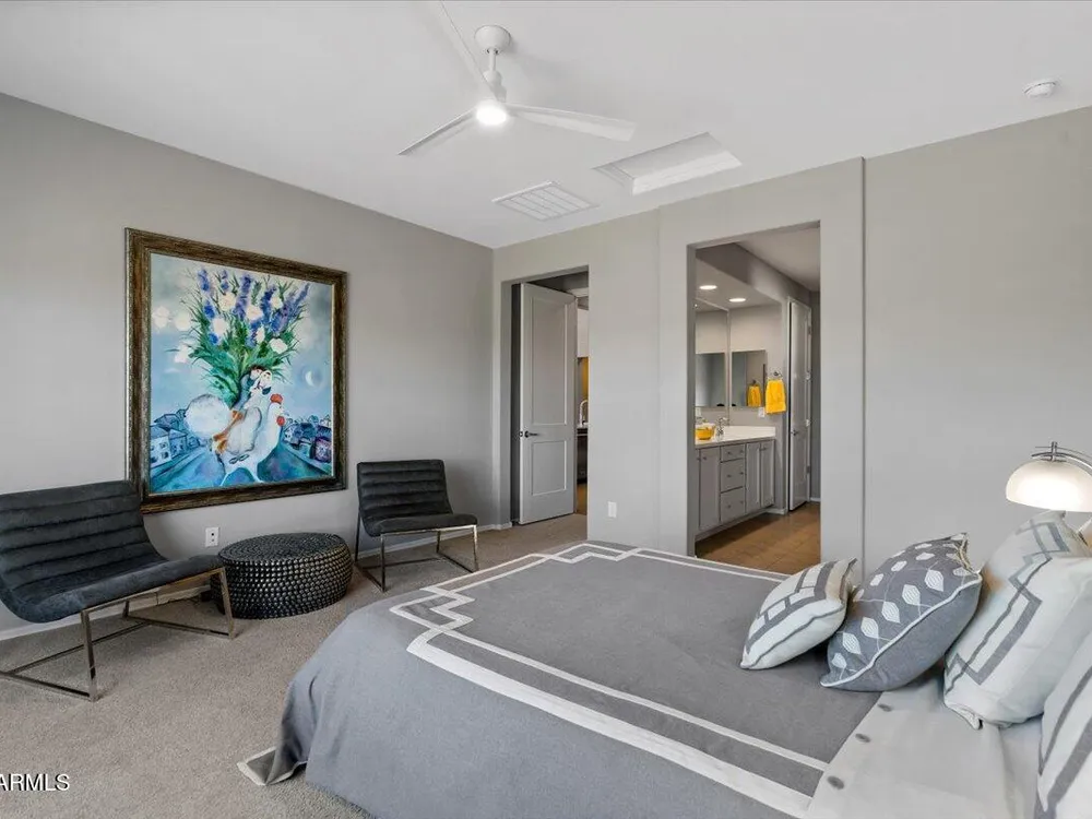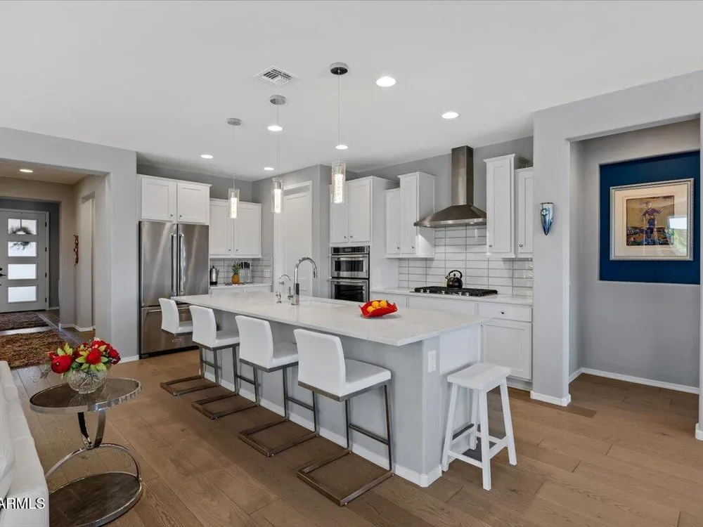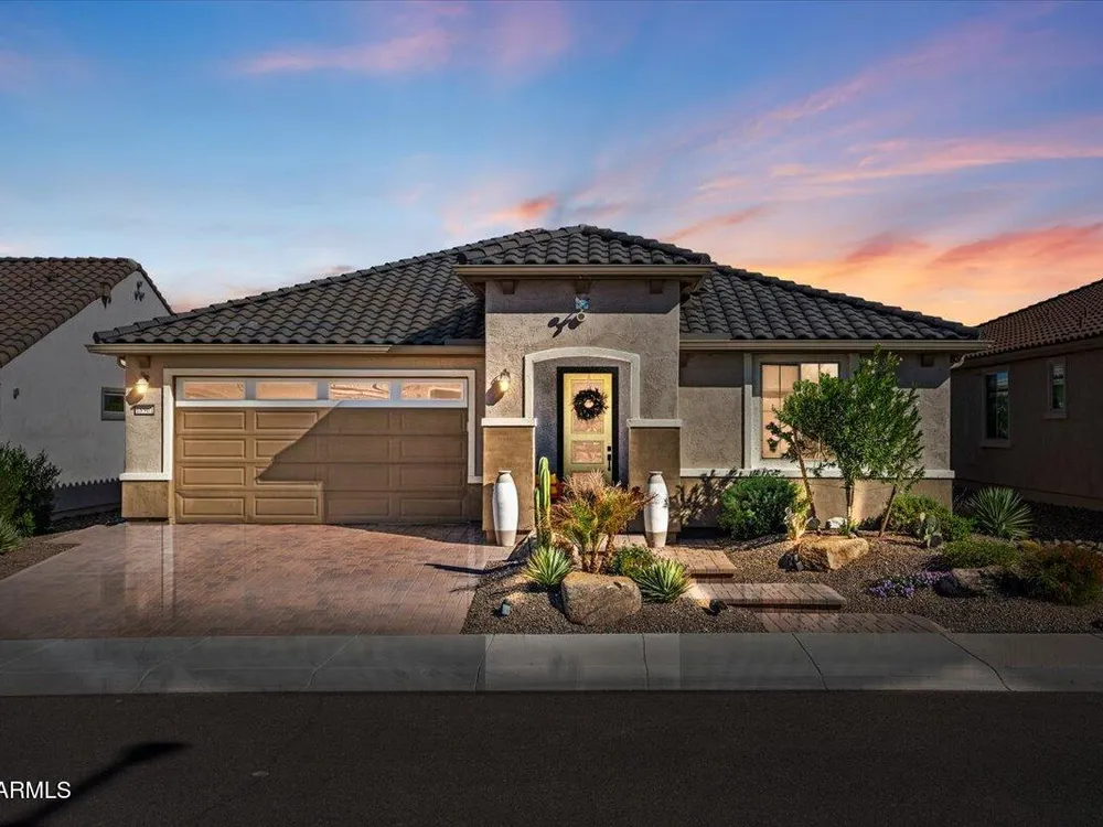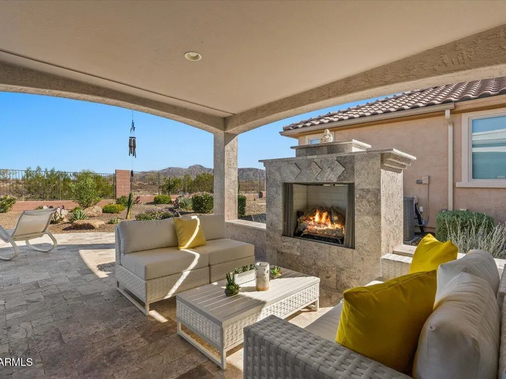 If you've been considering a 55+ active adult community in Arizona, and Sun City Festival is on your list for all it's fantastic amenities, then you will want to see this gorgeous and upgraded 3 bed 2 bath home that has some of the best views in the community as it backs to the White Mountains preserve looking east. Stylish and modern upgrades to the large chef's kitchen, flooring, and much more make this is a home that is truly turn-key. Whether as a second home or your year-round residence, this home has the style and finishes you deserve. Also, the leased solar helps lower your electric bills substantially. Imagine yourself sitting on the patio and taking in the beautiful open land and mountain views backed by that gorgeous Arizona sky. Your new home awaits!
