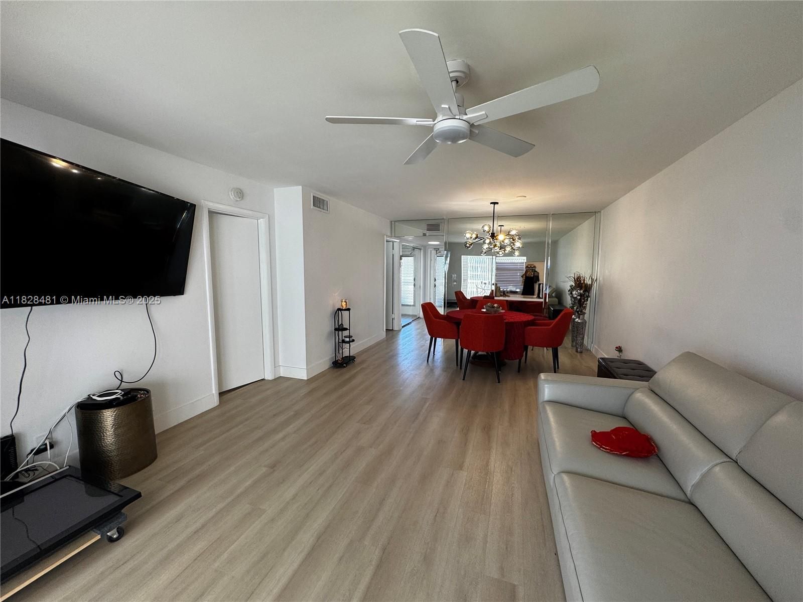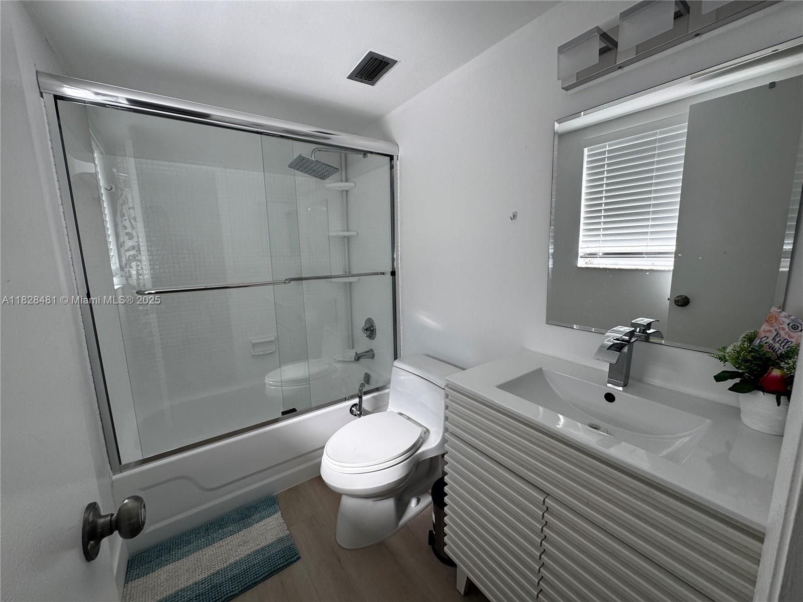 Step into this beautifully updated ground-floor 1-bedroom unit with direct garden access—perfect for enjoying the peaceful green garden views just outside your door. The interior features elegant, wide-plank NEW vinyl floors throughout and completely remodeled bathrooms with a walk-in rainfall shower and sleek modern tile. The bedroom offers dual closets, mirrored sliders, and ample natural light through large windows. Enjoy central A/C, Laundry Room, spacious living area, and a dedicated dining space adjacent to a bright, efficient kitchen. Unit also comes with a separate storage room. Located in a secure 55+ community with a low HOA, onsite amenities, and unbeatable convenience near shopping, dining, and major highways. Easy to show and ready to move in!