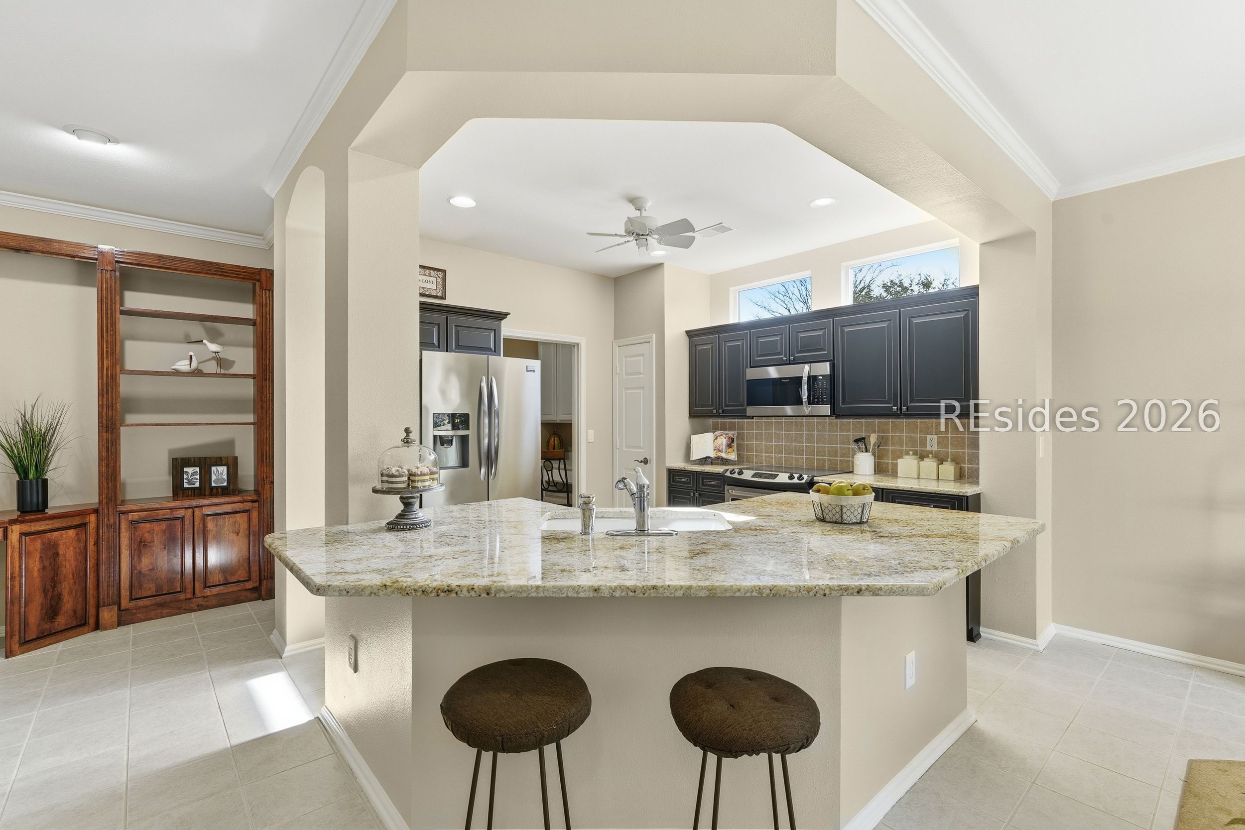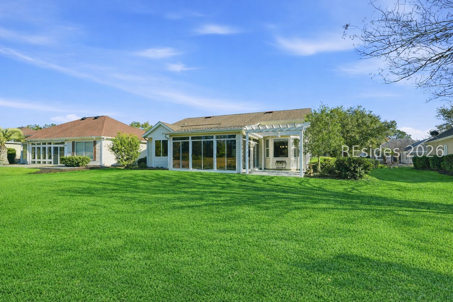 Experience the best of Lowcountry living in this beautifully maintained Camden/Shenandoah overlooking a tranquil lagoon-to-wooded view in the vibrant community of Sun City Hilton Head. The open kitchen layout is ideal for entertaining, featuring stainless appliances and granite countertops that exude both practicality and style. The built-in cabinetry creates storage and a functional workspace acting as a home office. The true showstopper is the glass-enclosed Carolina room; an all-season retreat that seamlessly extends the living area and frames the serene natural setting beyond. Enjoy your morning coffee as the sun rises over the lagoon, or unwind after a day of golf, pickleball, or social gatherings. This is where resort-style living and peaceful relaxation come together effortlessly.