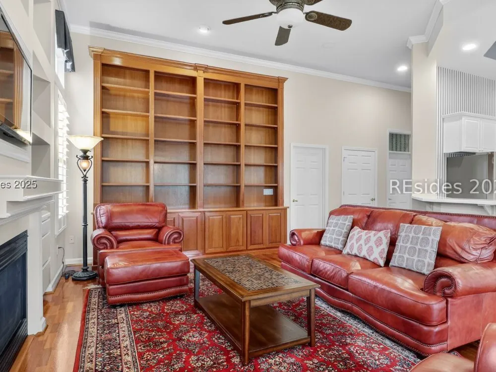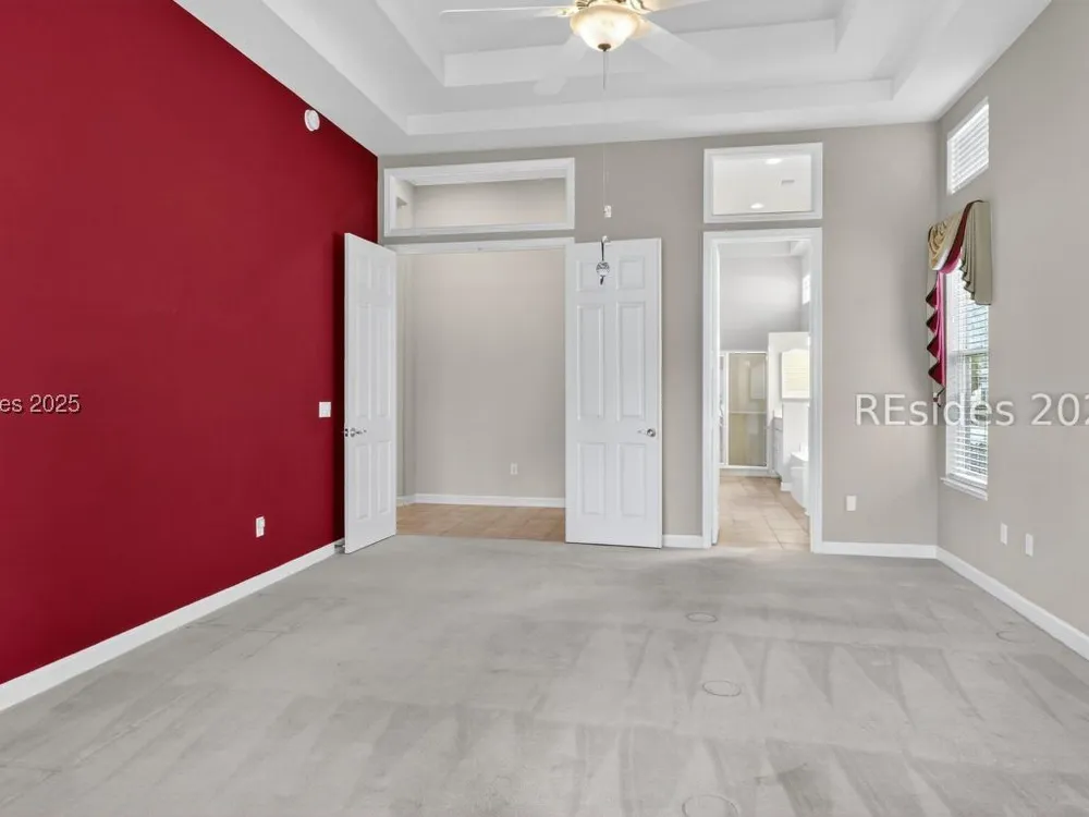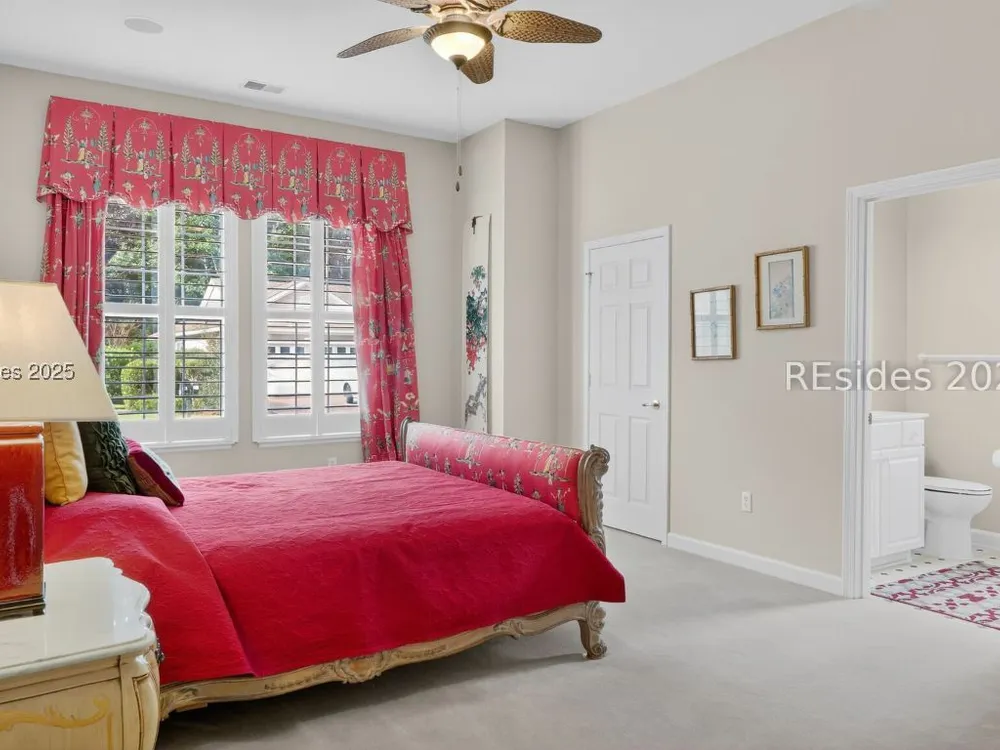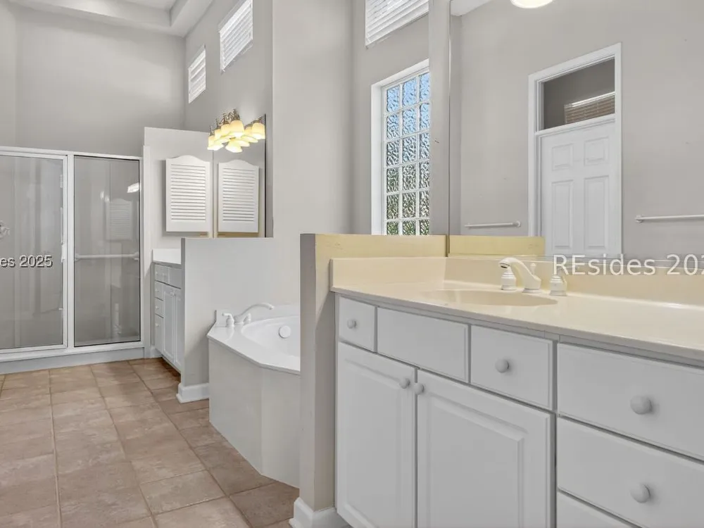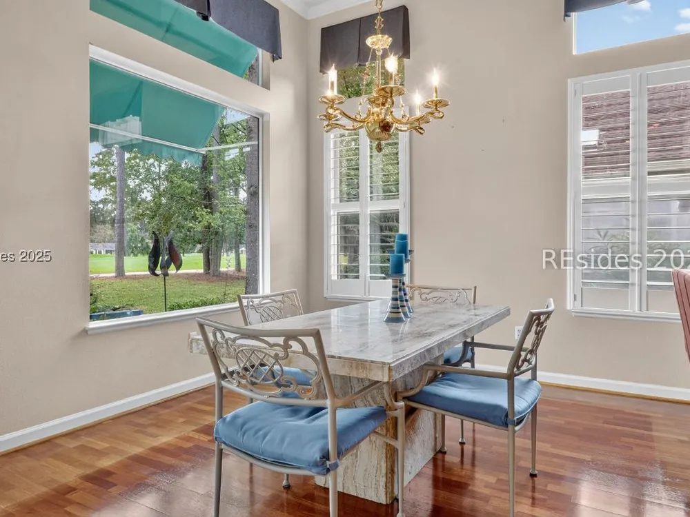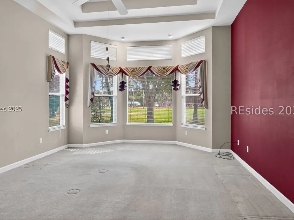 Fall in love with this coveted, Del Webb Marian Webster Estate model featuring 10 and 12 ceilings located on the Okatie Creek Golf Course. Welcome home to your Lowcountry retreat in the premier 55+ community of Sun City Hilton Head. Enjoy magnificent golf course views from your backyard in this elegantly appointed residence. The open and airy layout features a large gracious foyer, private office, half bath for guests, crown molding, plantation shutters, bay windows, tray ceilings, massive laundry room with an abundance of cabinets and counter space. There is a huge primary bedroom and bathroom with a custom closet. There is also a guest bedroom with an ensuite and walk-in closet. Entertain guests in the formal living and dining areas or relax by the gas fireplace in the inviting family room with gleaming wood floors. The spacious kitchen is a chef's delight with stainless-steel appliances. A two-car garage provides ample parking, with an attached golf cart garage! In addition, there is a large Carolina room that leads out to the patio overlooking the golf course. This home has two bedrooms, two and a half baths and is 3113 square feet. You will love entertaining your friends and family in this beautiful home.