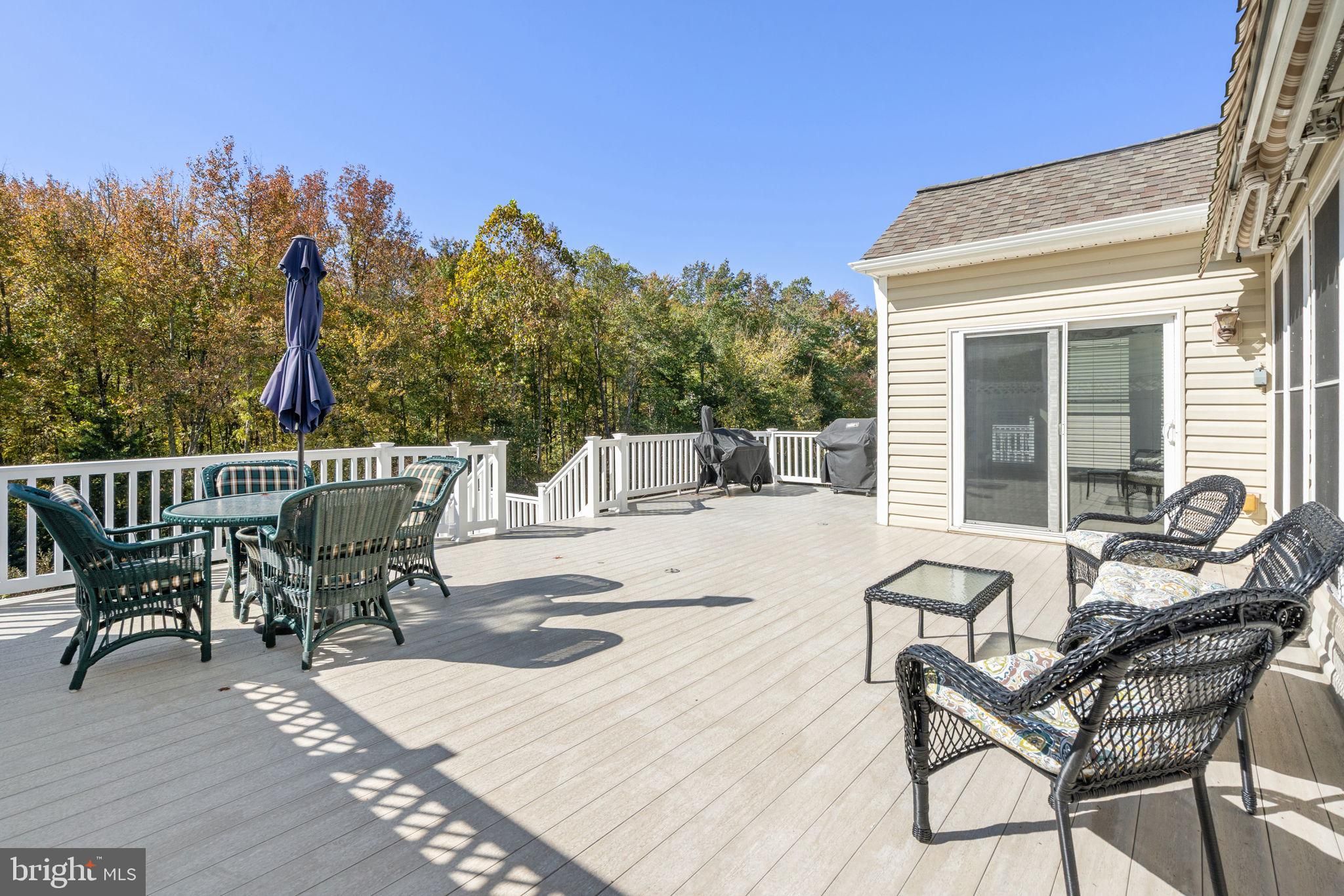 Beautifully maintained home in the sought-after Falls Run active adult community! This spacious 3-bedroom, 3-bath home features hardwood floors, a cozy gas fireplace, and a covered front porch—perfect for relaxing mornings. The large composite deck with motorized awning and hot tub on the private paver patio offer year-round outdoor enjoyment. Backing to trees for added privacy and serenity. Finished lower level provides extra living space with a bedroom, full bath, and recreation area. Enjoy resort-style amenities including outdoor pool, fitness center, tennis, bocce, and a full calendar of activities. Convenient to I-95, shopping, dining, and historic Fredericksburg. Comfort, space, and community—schedule your showing today!