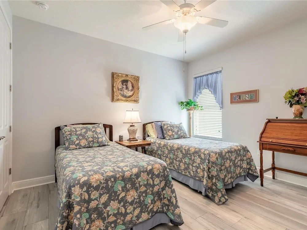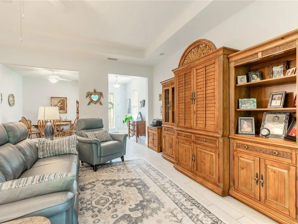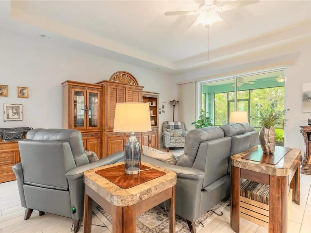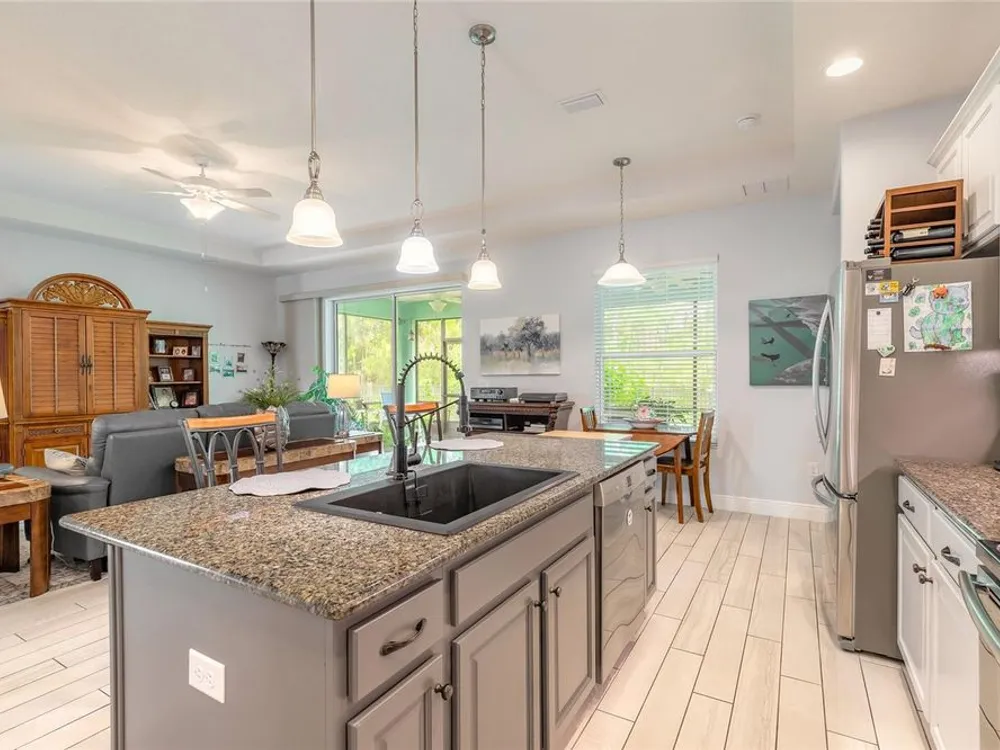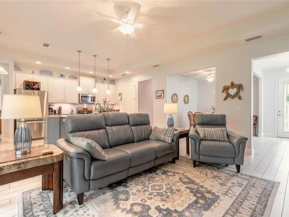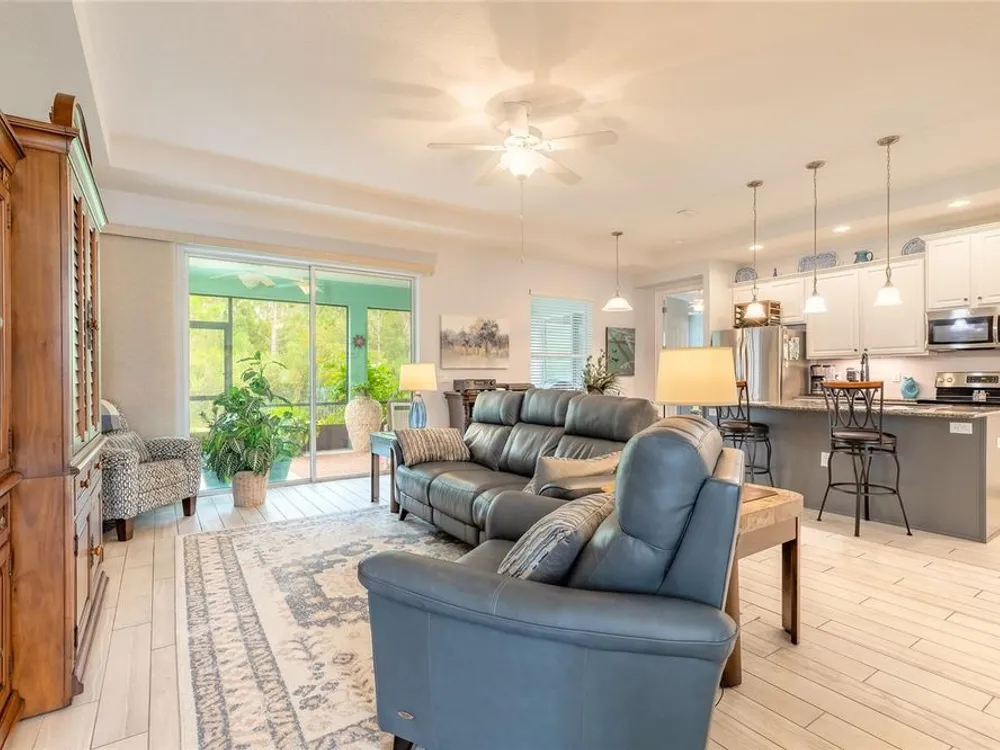 Welcome to your dream home in Huntington Village, 55+ living at its finest! Located in the highly desirable Huntington Village with Hunters Ridge, this beautifully, updated 3 bedroom, 2 bathroom home offers low maintenance Florida living with style and comfort. Step inside to an open floor plan filled with natural light, perfect for both entertaining and everyday living. The kitchen boasts granite countertops, 42 inch cabinets, stainless steel appliances and a brand new black composite farm sink with a stylish new faucet. Plus, the dishwasher is just one year old! You'll love the elegant wood-look tile in the mains areas and the luxury vinyl flooring in all the bedrooms- no carpet in sight! The fresh exterior and interior paint gives the home a crisp, clean feel! Relax knowing your home is protected with a security system and ring doorbell. Enjoy a deluxe laundry room, updated bathrooms, and a spacious primary suite with dual vanities and a walk in closet. Ceiling fans throughout the home keep things cool and breezy! Out back, unwind on your private porch with a peaceful preserve view or let your pets roam in the fenced backyard. Even the garage is carpeted to help keep your home extra clean! Outside of this immaculate home, enjoy easy maintenance! HOA covers basic cable, high speed internet, lawn care, shrub pruning, yearly mulch and fertilization, exterior house painting, pressure washing and more! Stop worrying about exterior upkeep and spend your time enjoying life and the incredible amenities instead. Amenities include an adult only pool, 2 community pools, a clubhouse, walking trails, park, fitness center, pickleball courts, tennis courts, scenic walking trails and fishing ponds! This is an ideal location with easy access to I-95, shopping, dining, medical facilities and more! Don't miss this opportunity to live in one of the most vibrant 55+ communities in the area! All information deemed accurate.