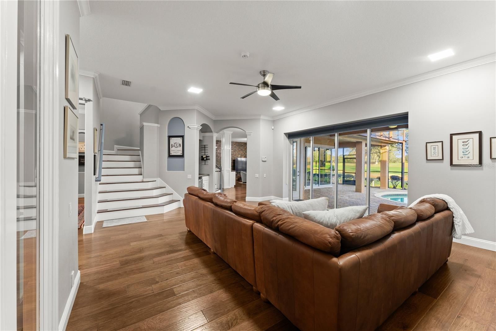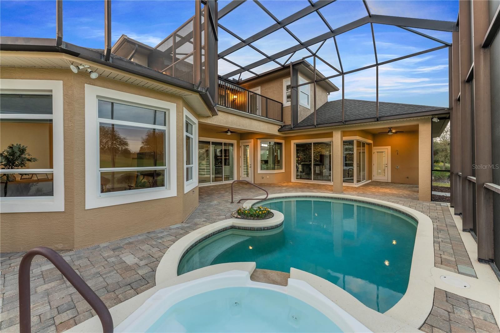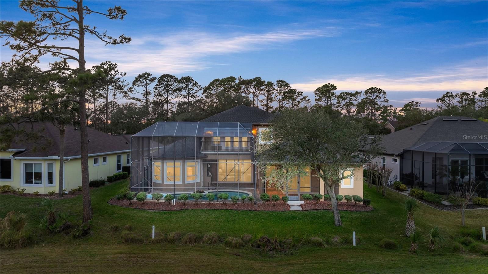 Perfectly Priced to Sell!! Elegant Golf Course Home Nestled within Grand Haven, one of Palm Coast’s most sought-after communities along the Intracoastal Waterway, this stunning pool home seamlessly blends elegance, comfort, and spacious living. Situated on a quiet cul-de-sac with a serene conservation area across the street, this 4-bedroom, 3-full bathrooms, 2-half bathroom, 3-car garage residence offers breathtaking panoramic views of the Grand Haven golf course and picturesque sunrises from both levels of outdoor living space. Designed and built by Arthur Rutenberg Homes, this residence welcomes you with an inviting, open layout. Pocket sliding glass doors in both first-floor living areas create a seamless indoor-outdoor flow, perfect for entertaining. The thoughtfully updated interior boasts luxurious finishes, including a chef’s kitchen featuring a built-in refrigerator/freezer and a 48” Jen Air gas cooktop/oven, with sleek poured concrete countertops is a must see, all open to a striking stone-accented family room—a perfect blend of style and functionality. The main level boasts a serene owner's retreat with private pool access and expansive picture windows framing breathtaking views. The spa-like owner's bath creates a true sanctuary for relaxation. A dedicated office with built-in shelving and storage offers an ideal workspace. Upstairs, a central flex space connects to the rear balcony with french doors, where panoramic golf course views unfold. One of the three secondary bedrooms includes a private en suite and direct french door balcony access, while the other two share a beautifully renovated bathroom—one of which features a charming Juliet balcony perfect for enjoying sunset views. Meticulously maintained and thoughtfully updated, this home includes premium upgrades such as 3M film on all windows and doors for hurricane protection, a new roof installed in 2021, a Generac whole-home generator added in 2020, a tankless water heater from 2019, a recently replaced central vacuum system in 2025, and new HVAC systems installed in 2020 and 2022. This exceptional home is a must-see to fully appreciate its beauty, craftsmanship, and prime location.