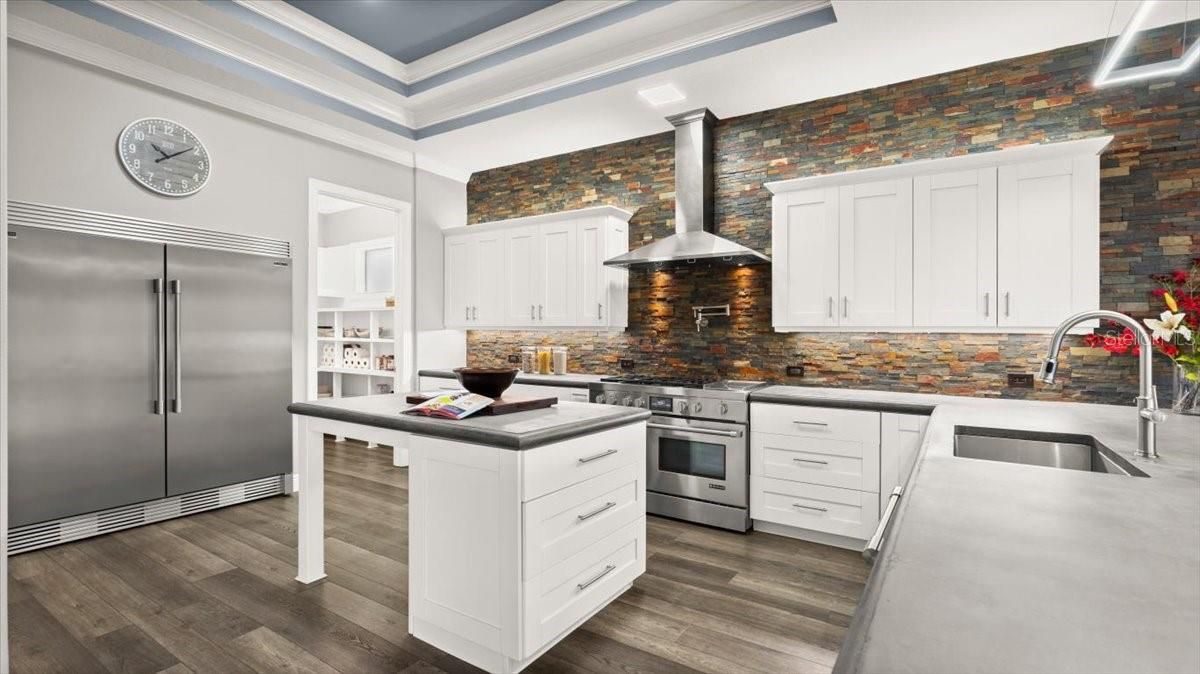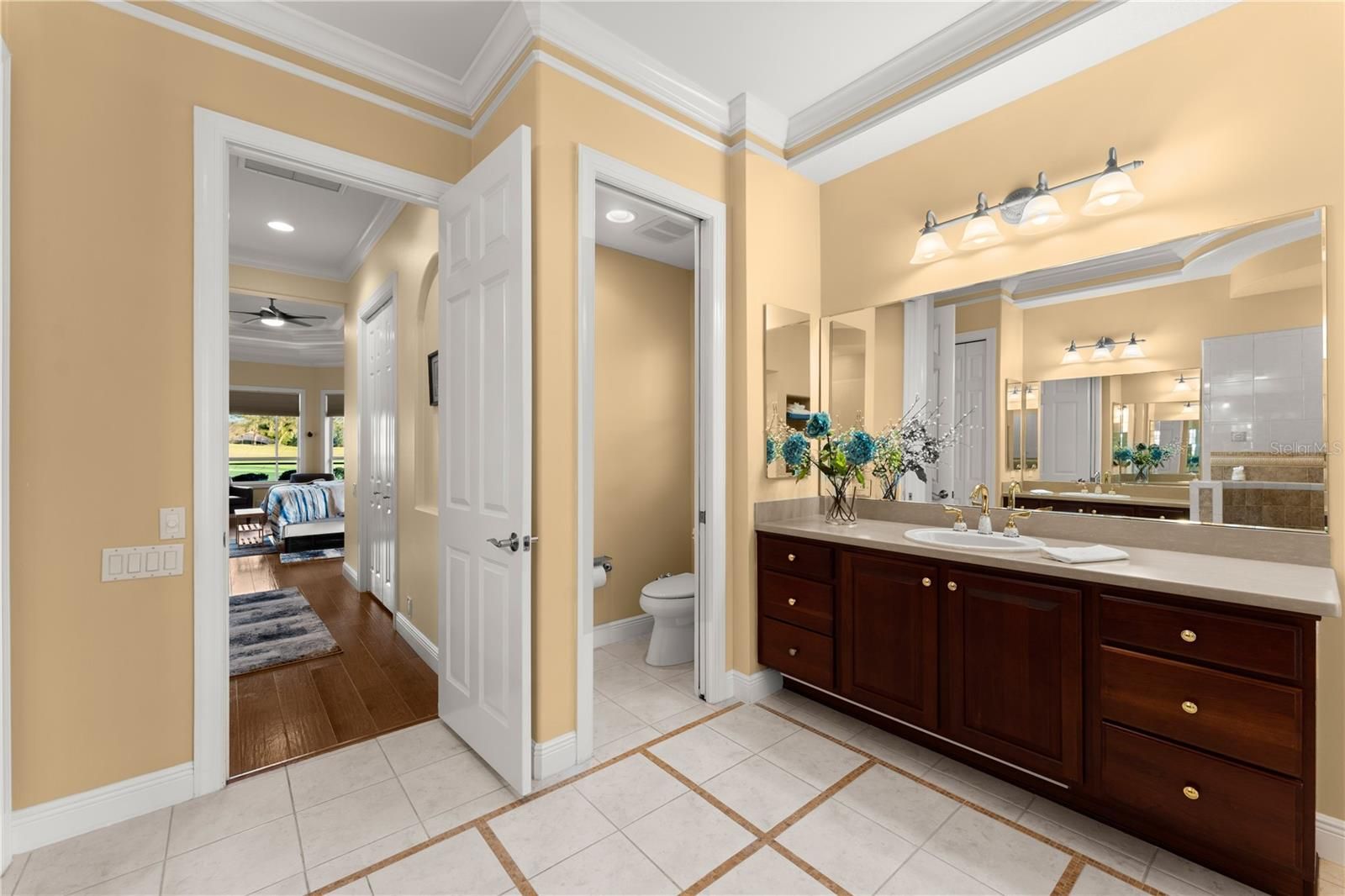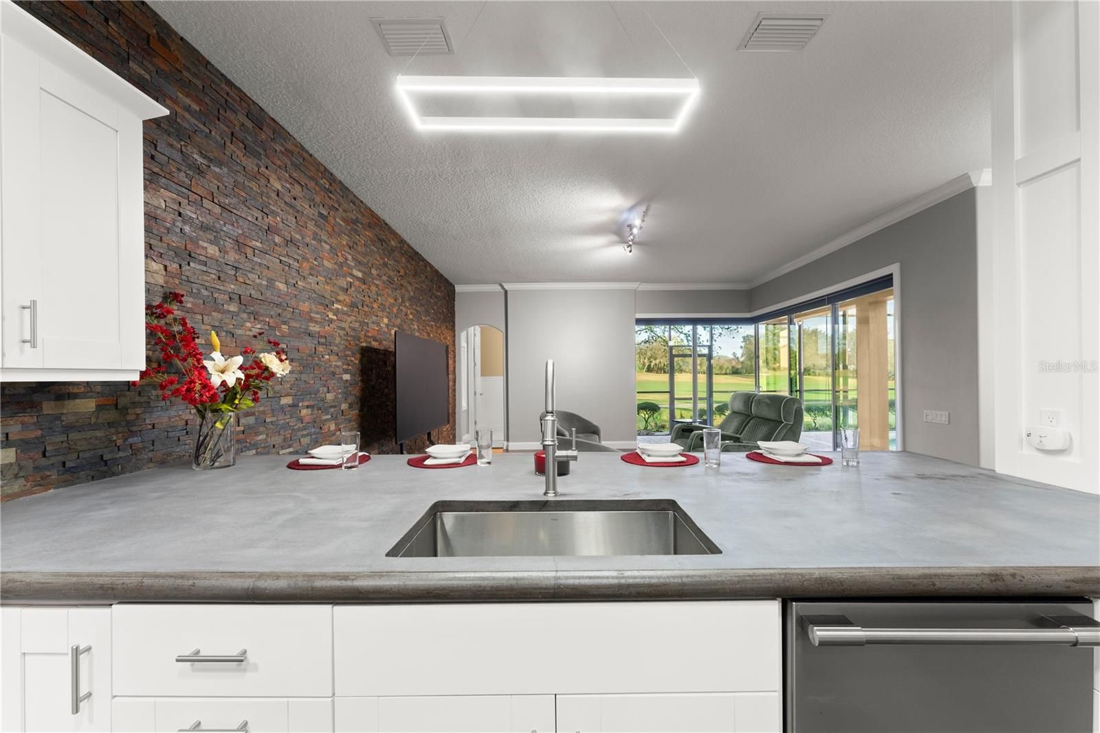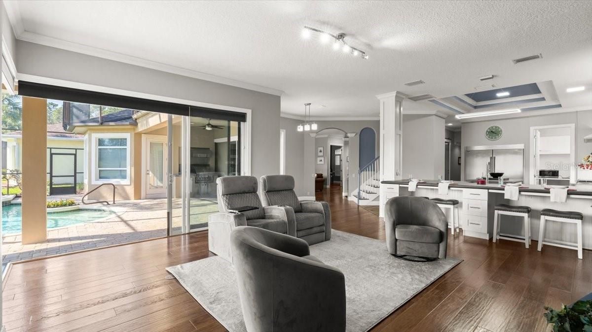 - Ceiling Fan(s), Crown Molding, High Ceilings, Kitchen/Family Room Combo, Open Floorplan, Main Level Primary, Solid Surface Counters, Tray Ceiling(s), Walk-In Closet(s), Wet Bar