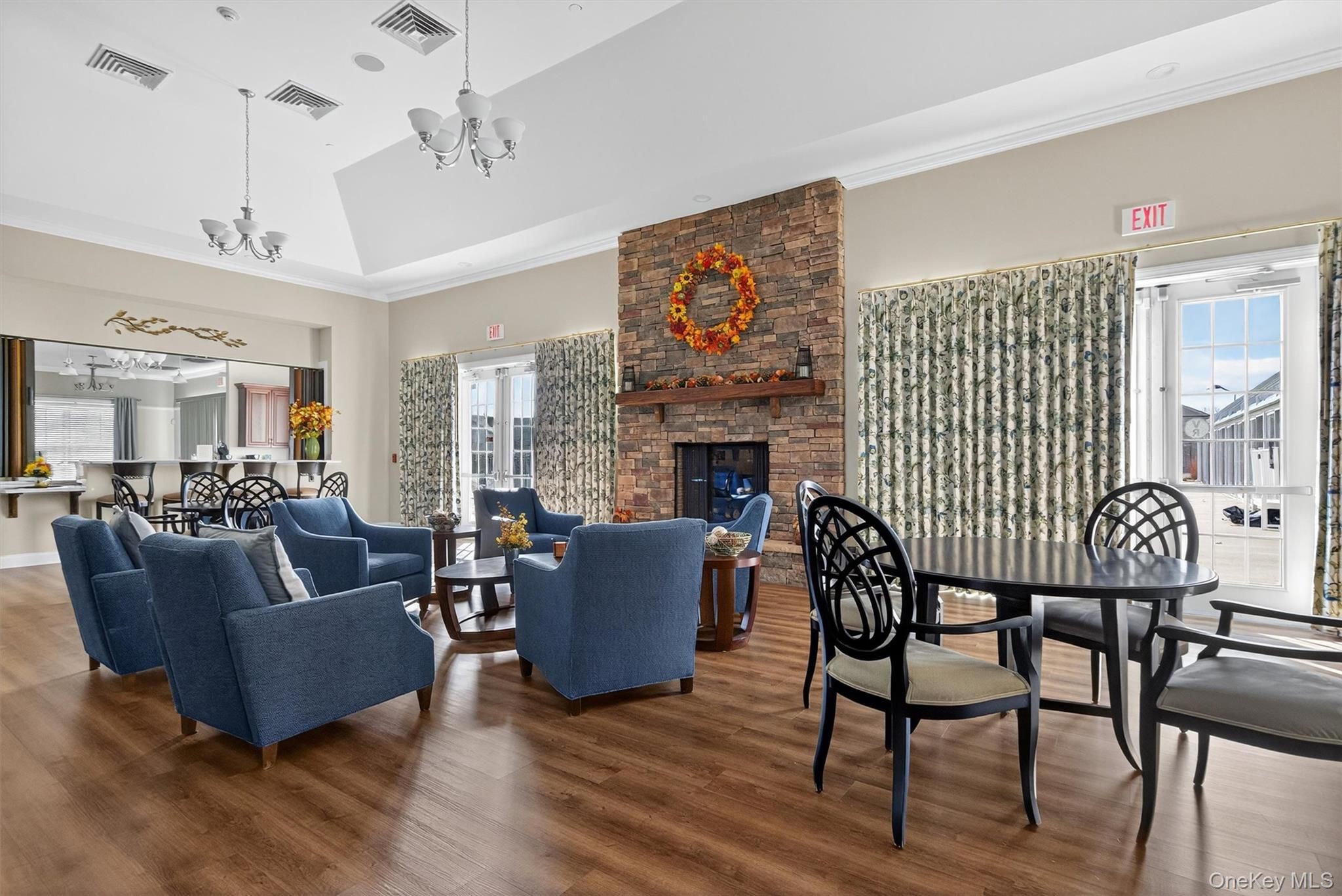Welcome to easy, carefree living in the highly sought-after 55+ community of Wildflower at Wallkill. This beautifully maintained two-bedroom ranch offers the perfect blend of comfort, style, and convenience, all set within a vibrant, amenity-rich neighborhood. This home has been meticulously cared for, including fresh paint and new carpeting, ensuring a move-in-ready experience. Step inside to discover a thoughtfully designed open floor plan featuring a spacious living and dining area. The home is filled with upgrades, including hardwood flooring throughout, recessed lighting, custom molding, cathedral ceiling, and gas fireplace that creates a warm and inviting atmosphere. The kitchen is both functional and impressive, offering a generous nine-foot center island, ample cabinetry, and a pantry for additional storage—ideal for everyday living or entertaining guests. Step outside to a private rear patio, perfectly sized for a grill and outdoor seating—just enough space to enjoy quiet mornings or relaxed evenings. Additional thoughtful features such as extra windows and an irrigation system enhance both the interior comfort and exterior ease of maintenance. Residents of Wildflower at Wallkill enjoy an exceptional lifestyle with access to a clubhouse, fitness center, library, and both indoor and outdoor pools—offering year-round opportunities for recreation and connection. This is more than a home—it’s a lifestyle designed for comfort, convenience, and community.